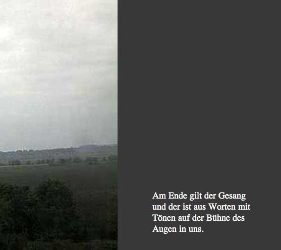 Erst wenn die neue Form in der heutigen Technik mit der möglichen Aufnahme heutiger Menschen zusammenkommt in dem Thema der Zeit des Jahrhundert, in der Form, die daraus entsteht in Bildern, Tönen und Räumen - wird das Buch wieder zur Partitur als Gesetz nach dem wir urteilen und beurteilt werden. Den Raum, das Gehäuse, den Platz zu finden wird sein Ziel sein. Im Menschen, der das darstellt.