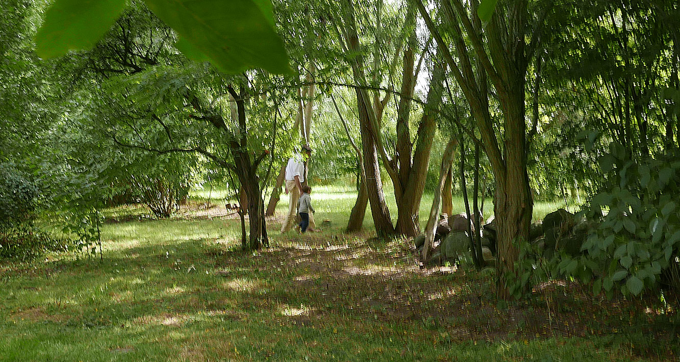 leichten Fusses an der Hand des Vaters wieder durch den Hain jetzt wieder