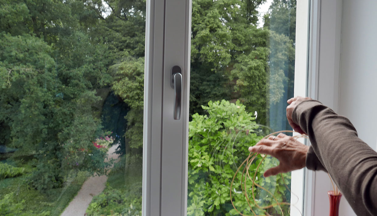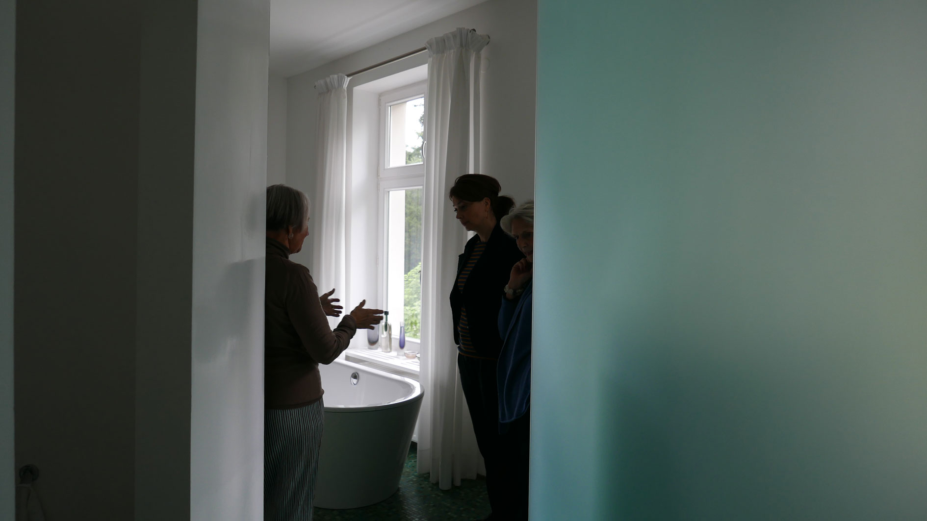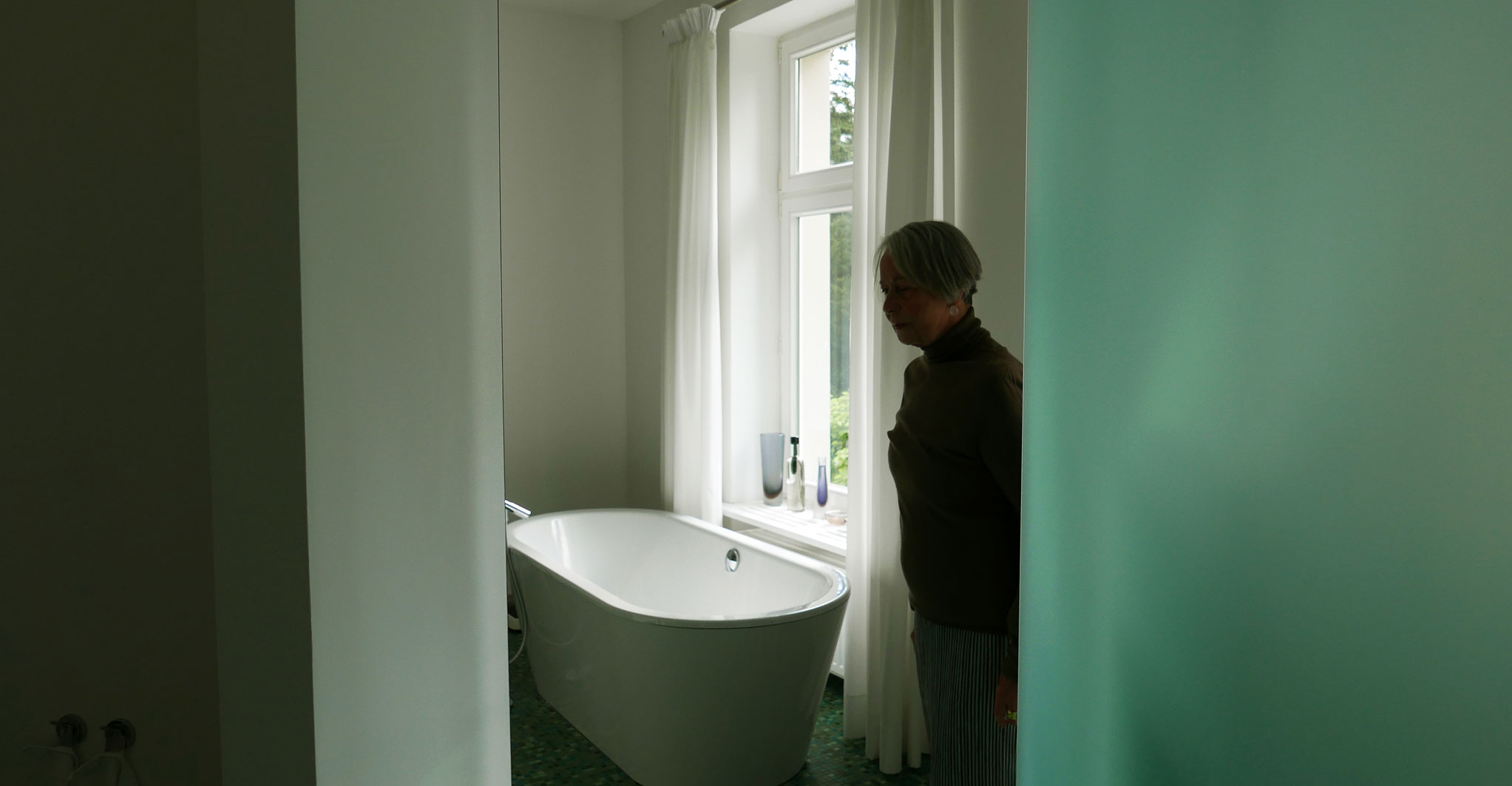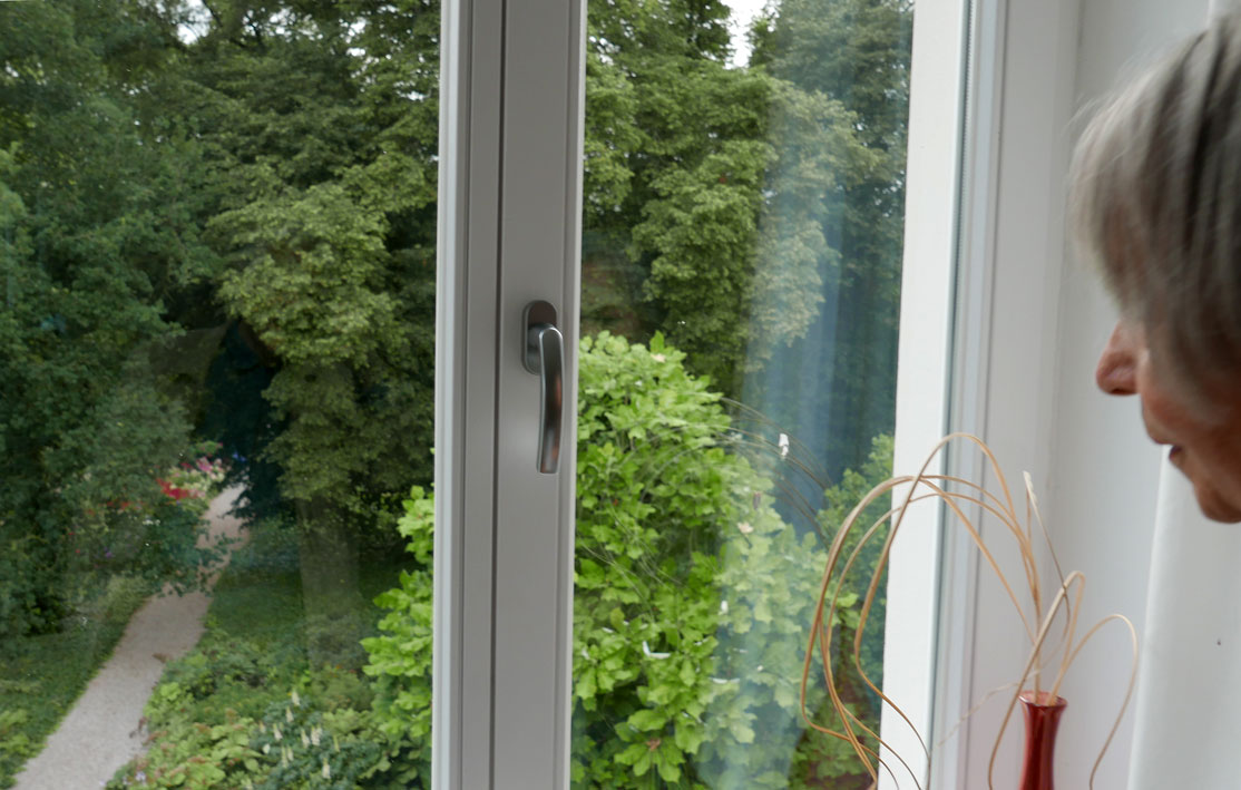 der Blick aus dem Bad ist der Park und sein Weg