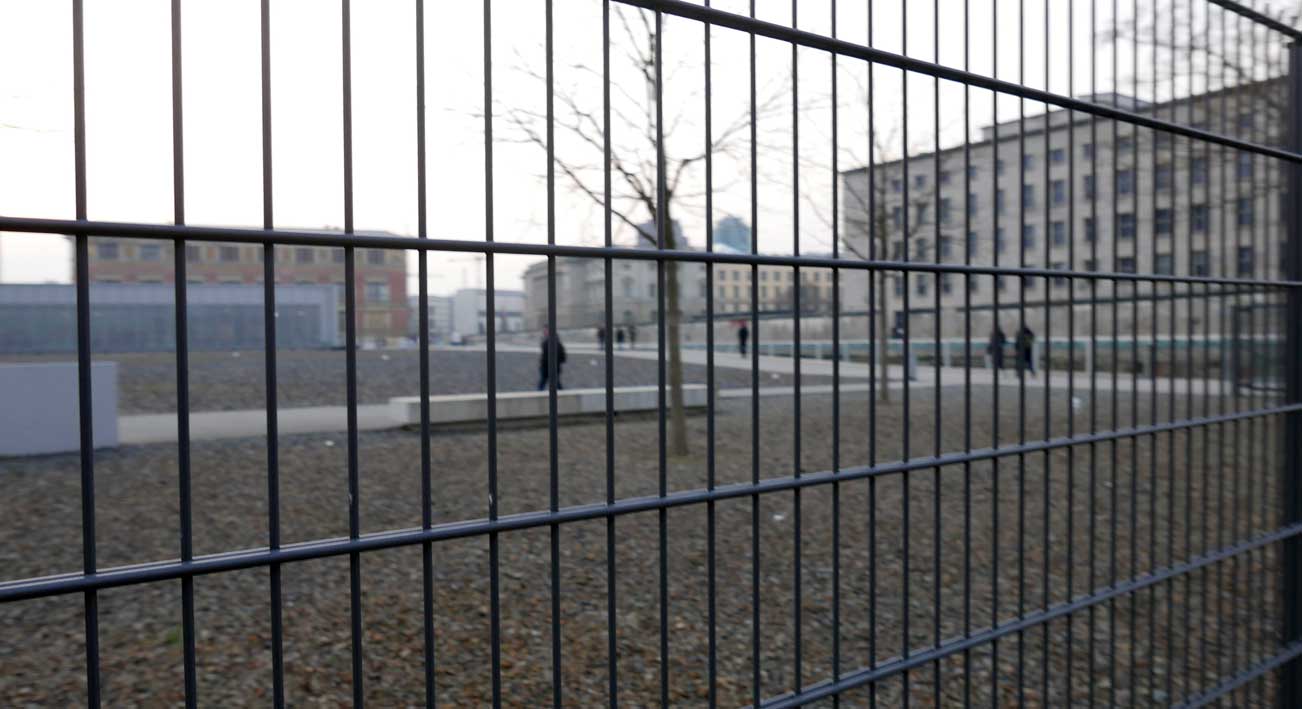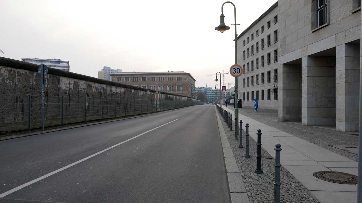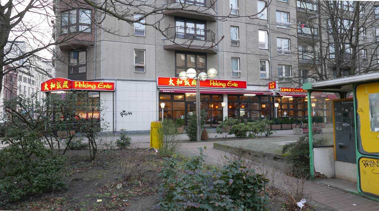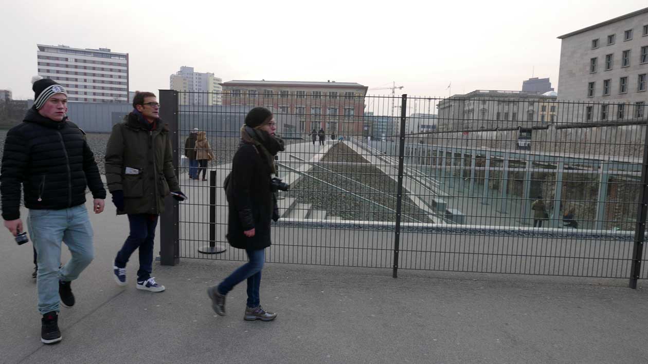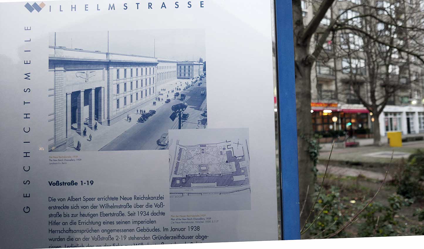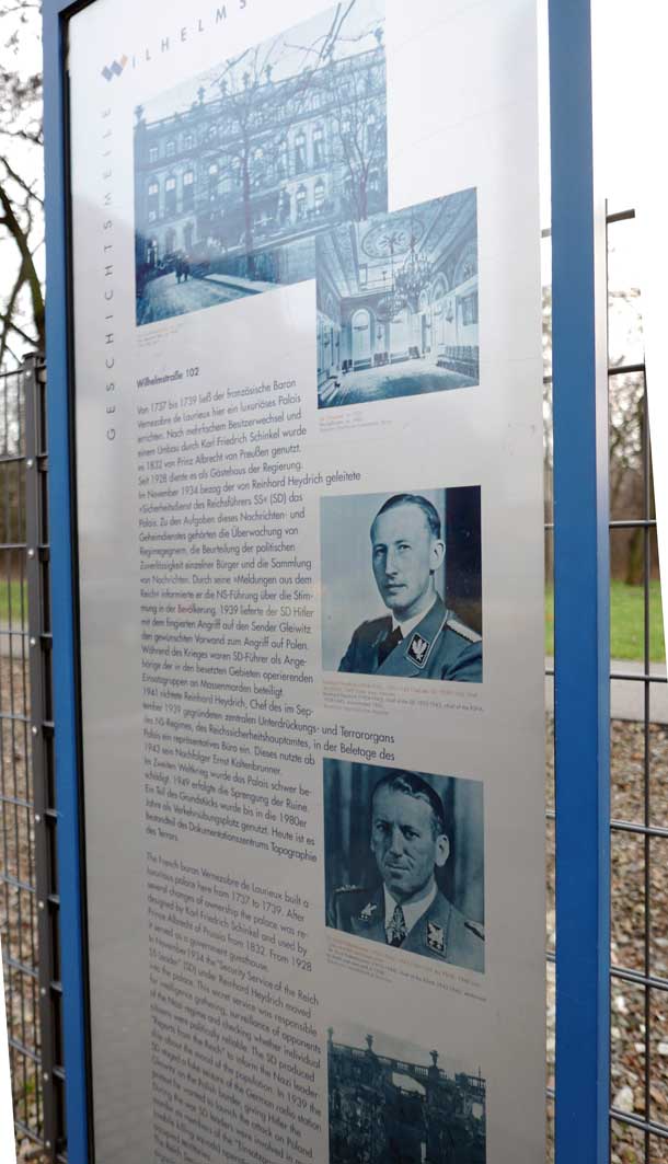 Betonierte Laufpisten und Zäune anstelle des ehem. Parks>>>>. Im Radio ein Bericht >>> zur Vorstellung des Humboldtforums im Berliner Schloss mit Foto- und Filmverbot ohne Ton-aufnahmen.