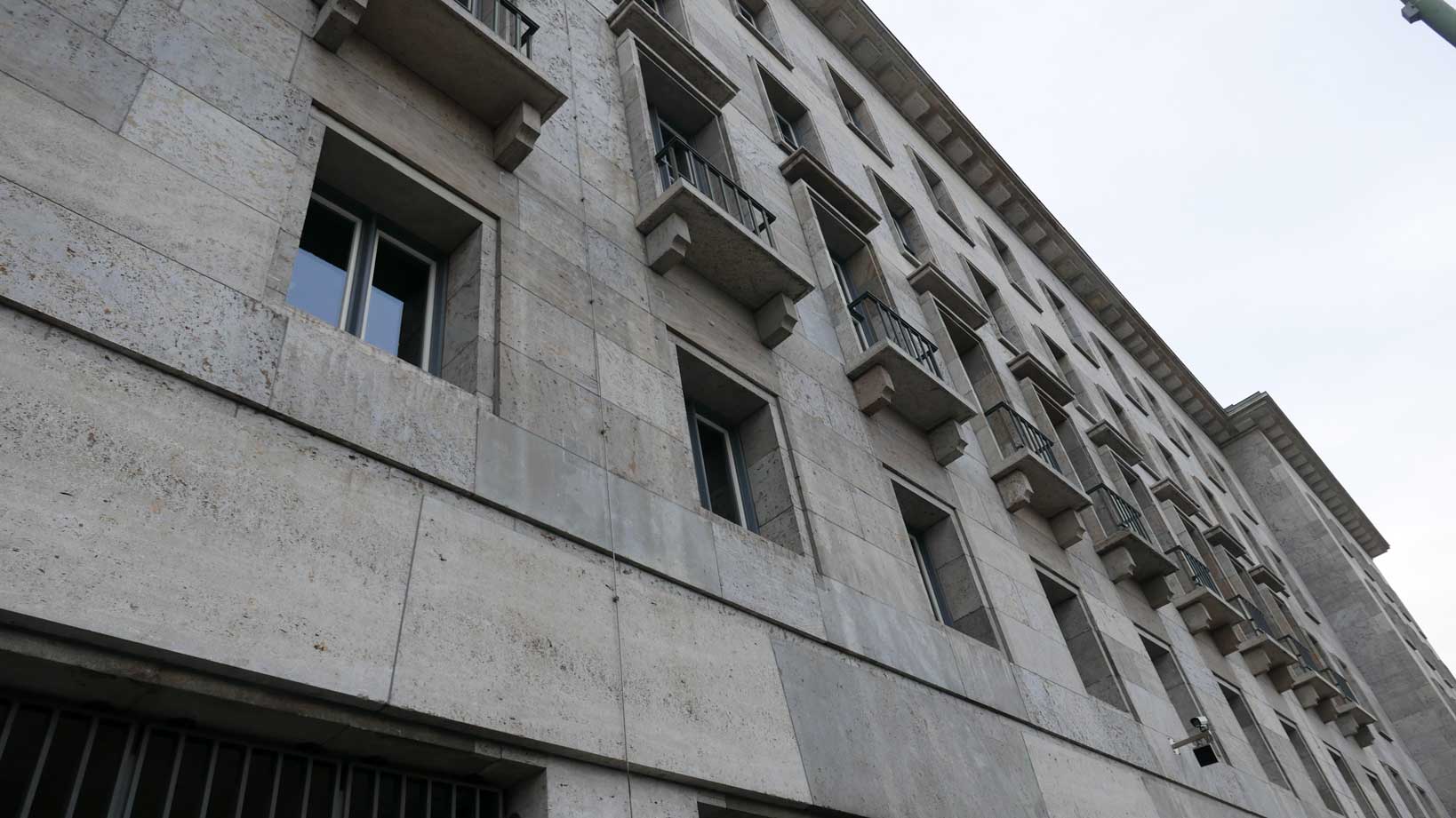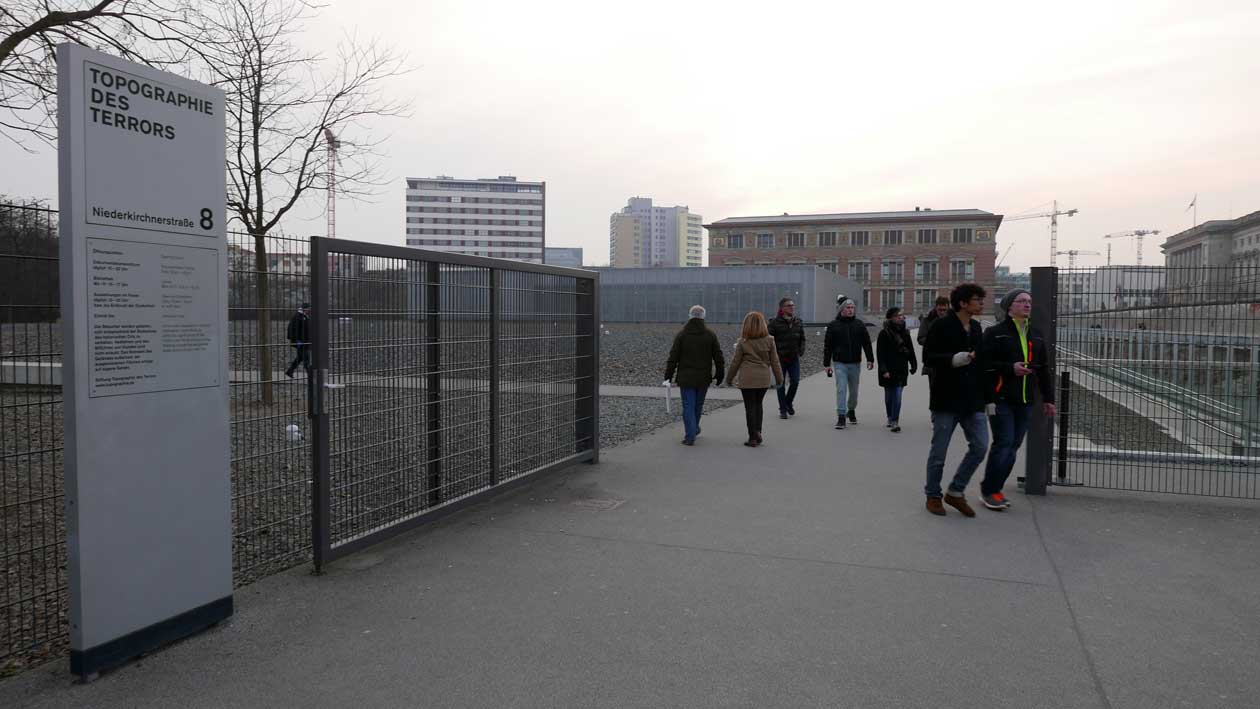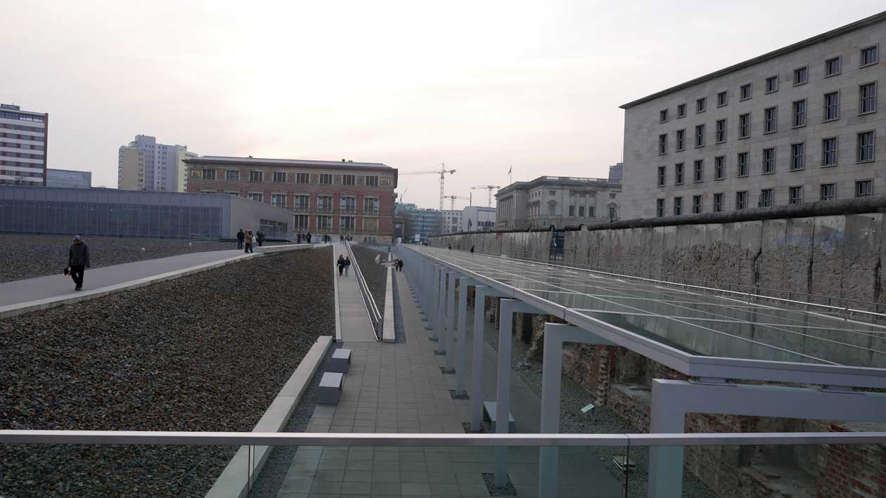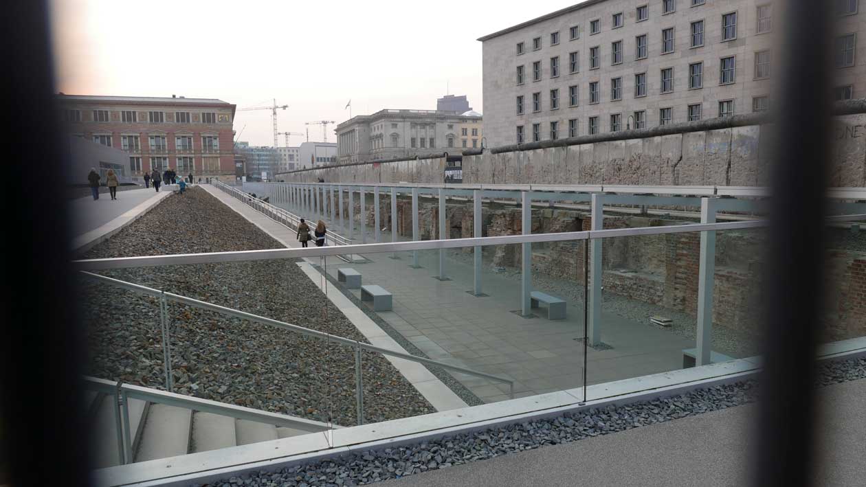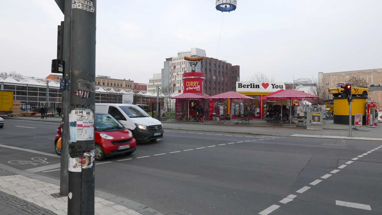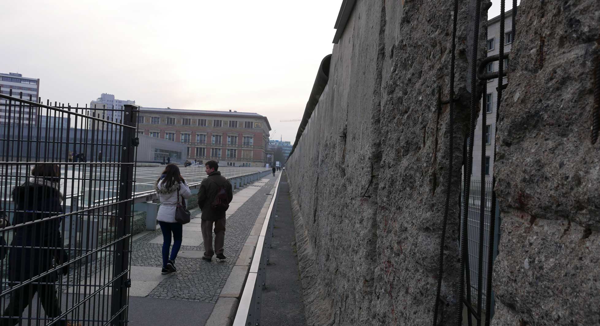 Betonierte Laufpisten und Zäune anstelle des ehem. Parks>>>>. Im Radio ein Bericht >>> zur Vorstellung des Humboldtforums im Berliner Schloss mit Foto- und Filmverbot ohne Ton-aufnahmen.