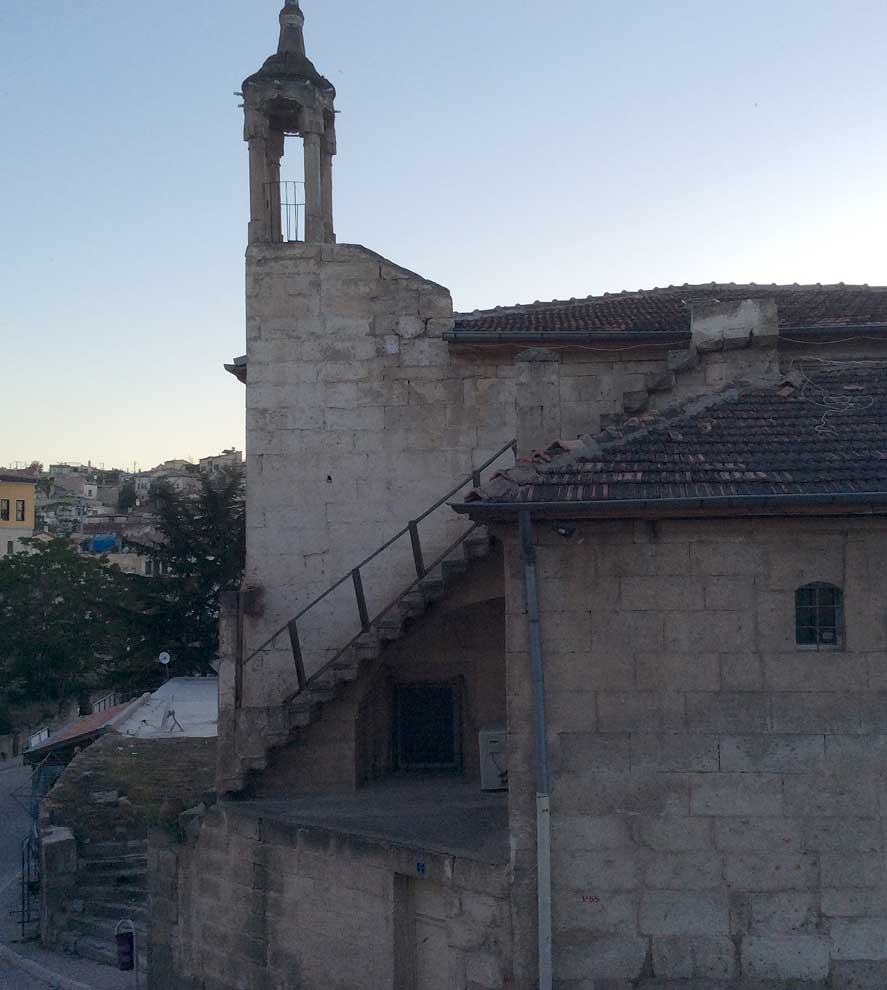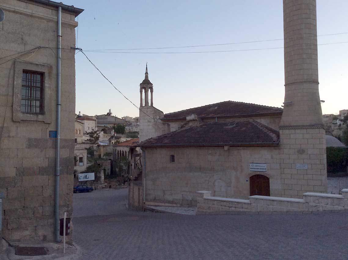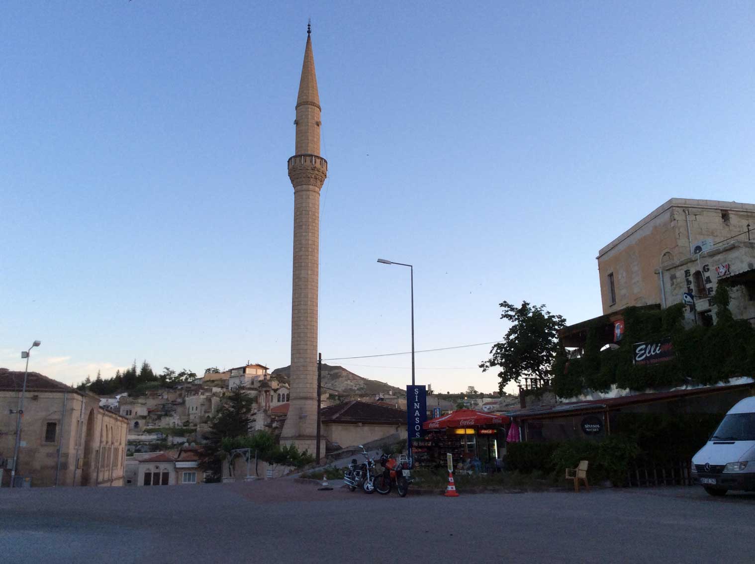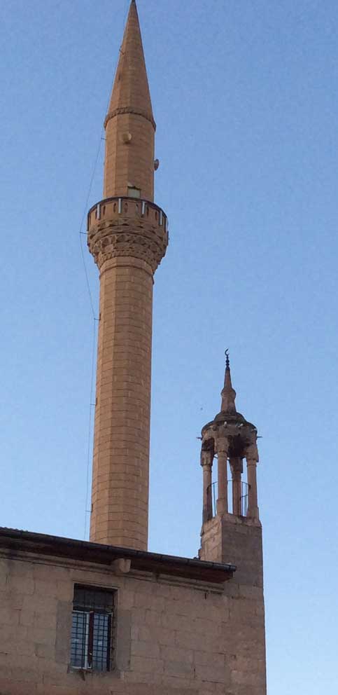 Das alte und das neue Minarett mit Lautsprechern dahinter von 1979