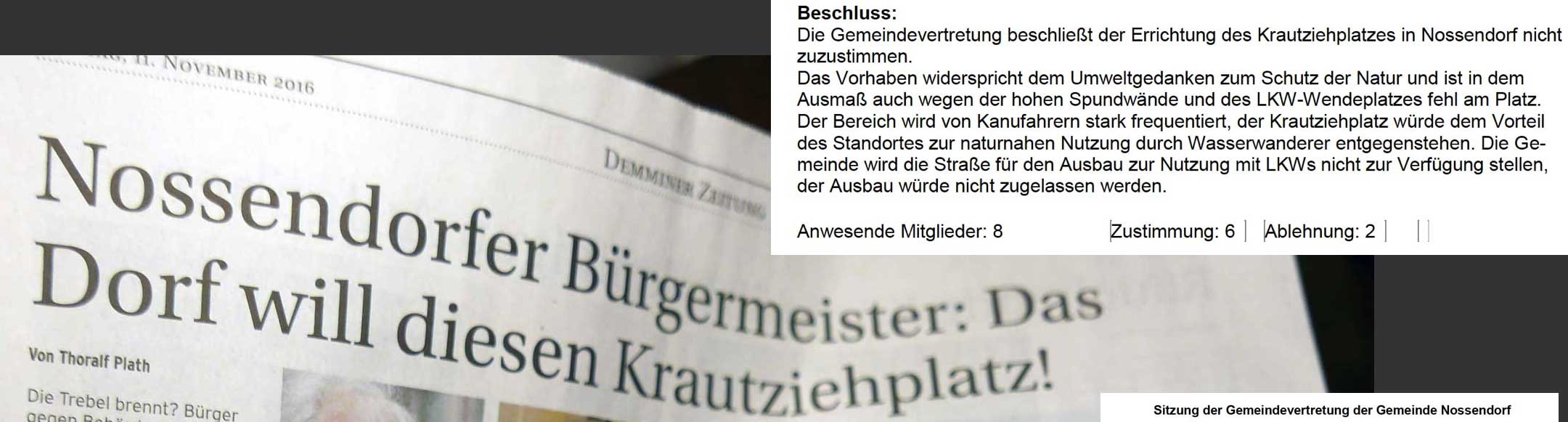 gestern trafen sich im Park von Medrow der derzeitige Bürgermeister von Nossendorf mit Gemeindevertretern zu einem Ortstermin, um das Fällen von hochrangigen Bäumen zu rechtfertigen.