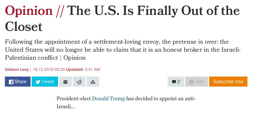 Nun ist ist es Offen: die USA kann nicht länger behaupten ein anständiger Vermittler zwischen Israel und Plästina zu sein....