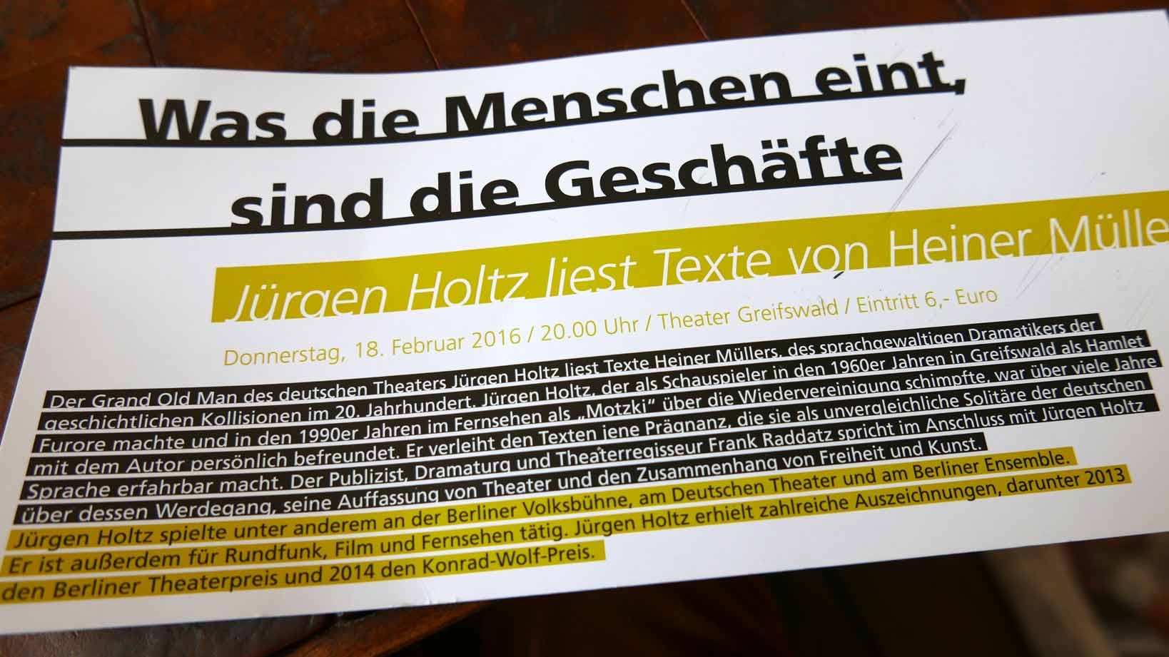 Ankündigung Landes-Theater Greifswald