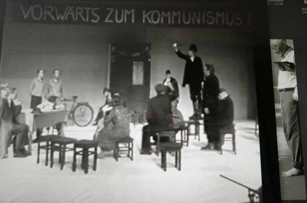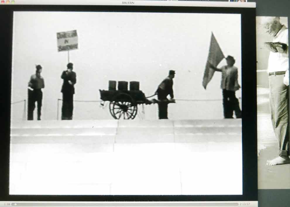 mit einer Platte zur Aufführung des Stücks Die Bauern von Heiner Müller, umgeschrieben aus der verbotenen "Umsiedlerin" (1961)und aufgeführt 1976 in der Volksbühne Berlin Ost dann doch(Regie F. Marquart)