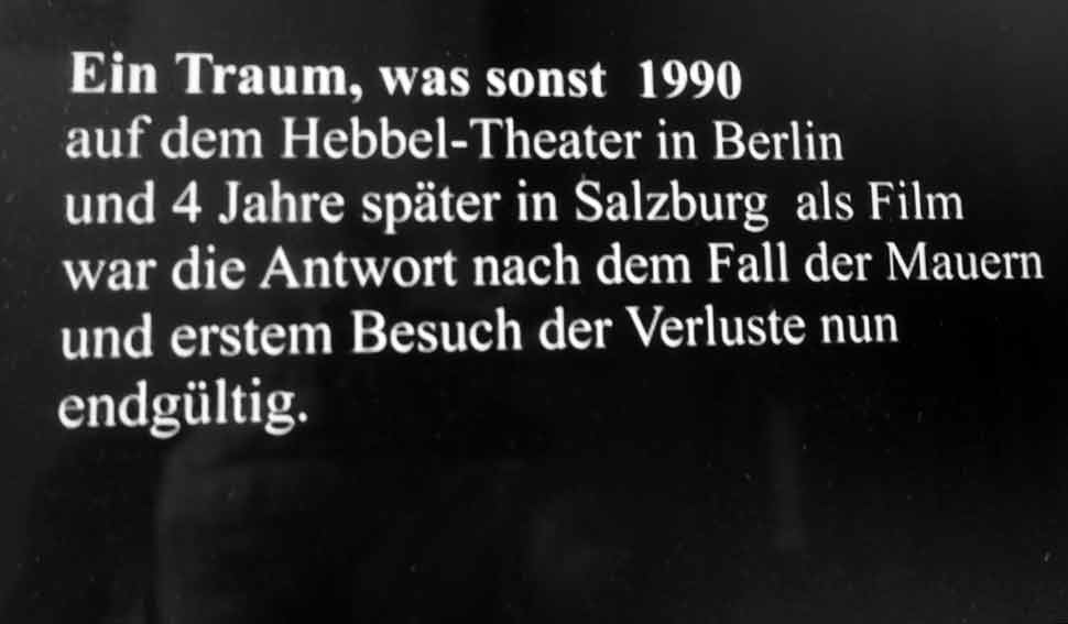 Dazwischen liegen parallel zu Heiner Müllers Theaterstück Syberbergs Monologe mit Edith Clever "Die Nacht" (1984 aus Paris, ohne Theater in Deutschland) und "Ein Traum, was sonst"(1990 im Hebbel-Theater vor leerem Haus).