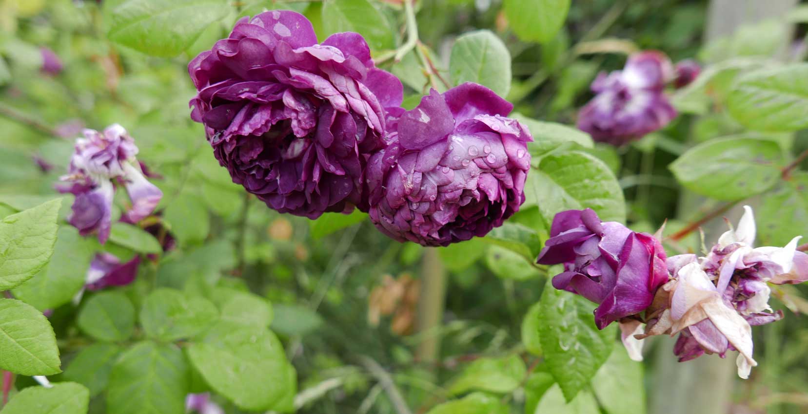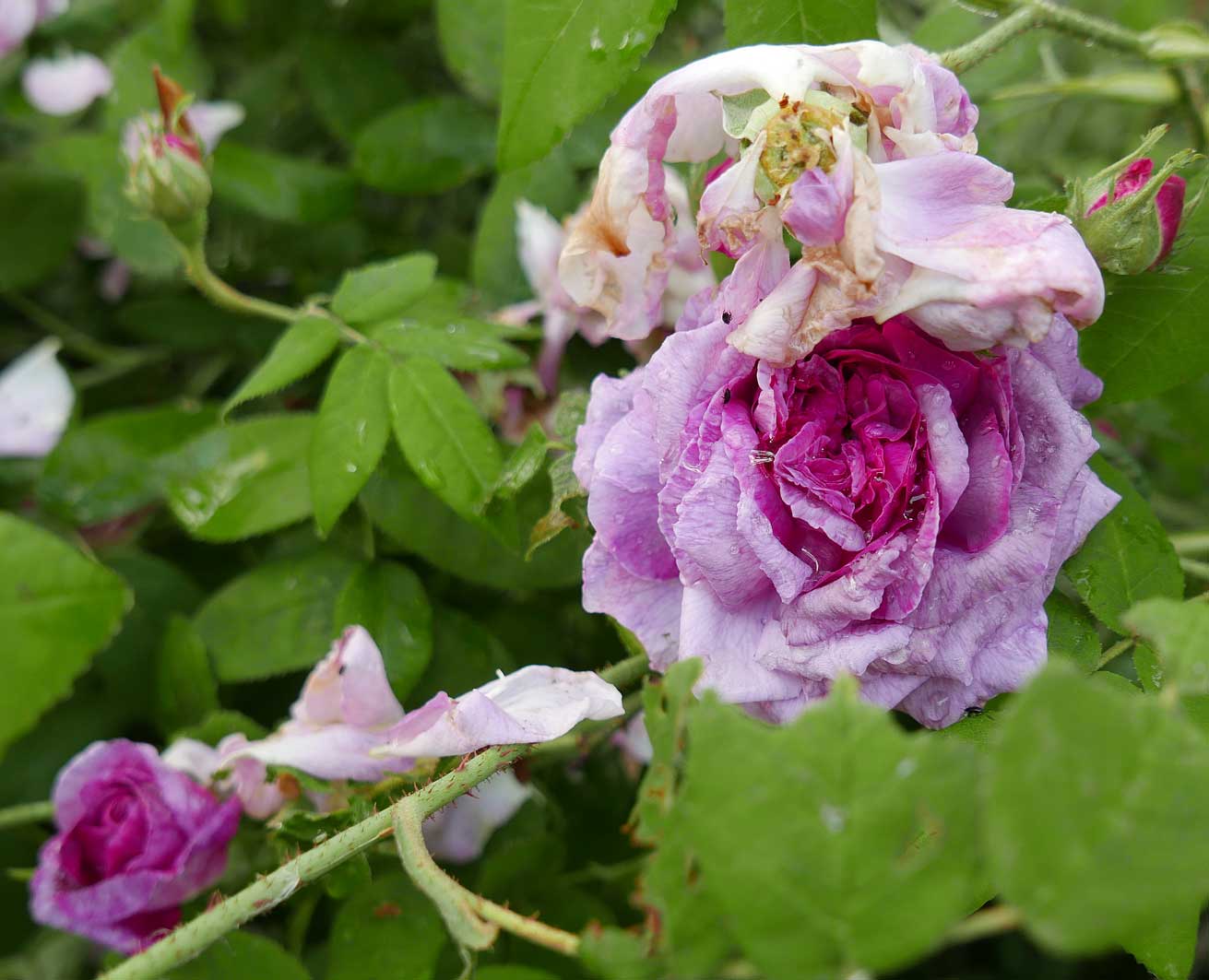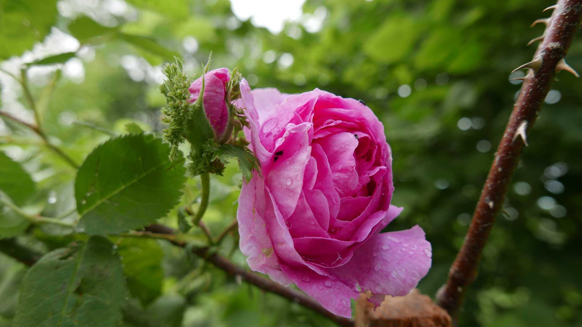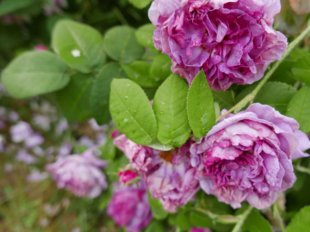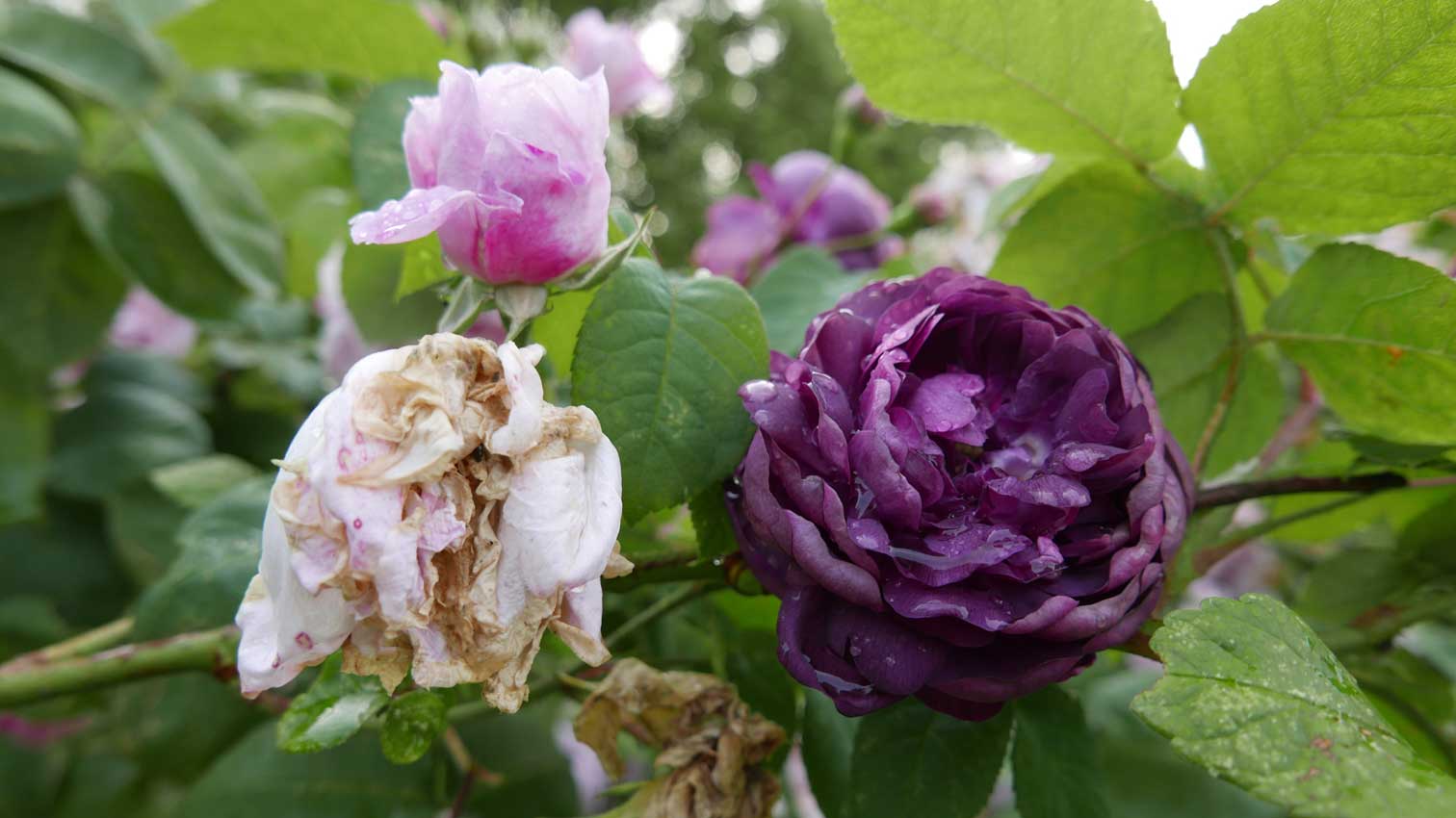 durch Rosen nach dem Regen und zwischen tief hängenden Zweige noch und wieder