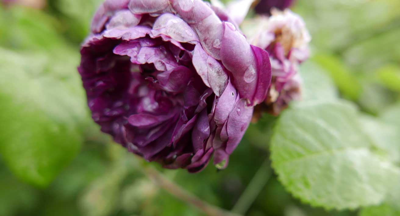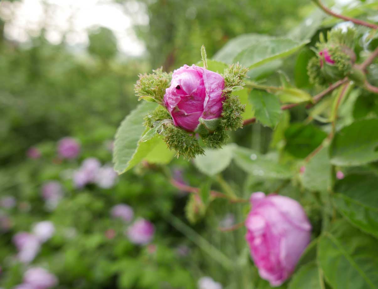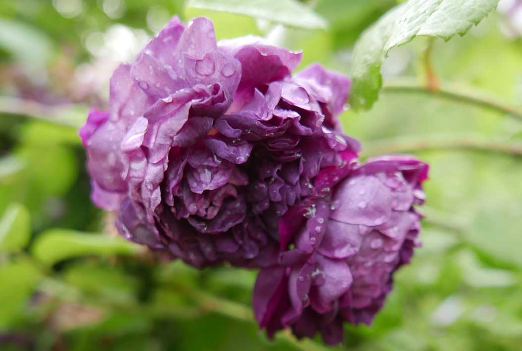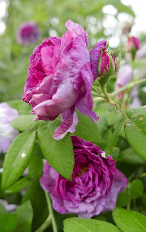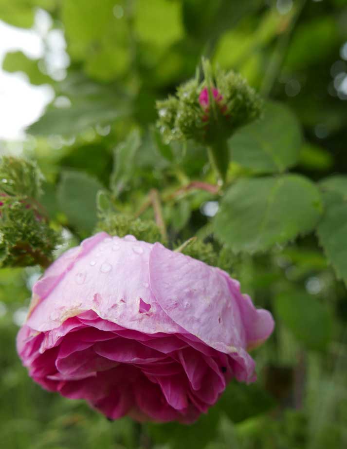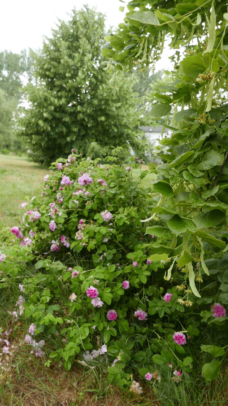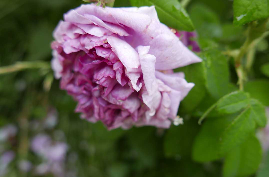 durch Rosen nach dem Regen und zwischen tief hängenden Zweige noch und wieder