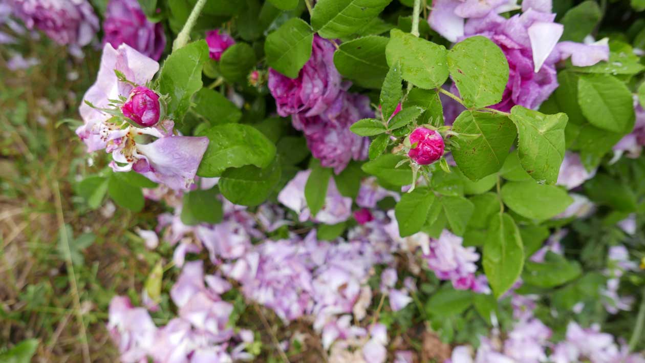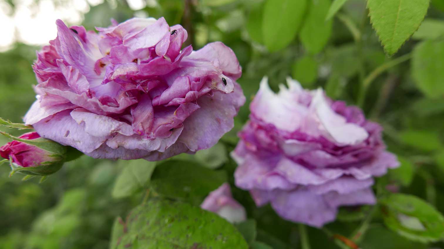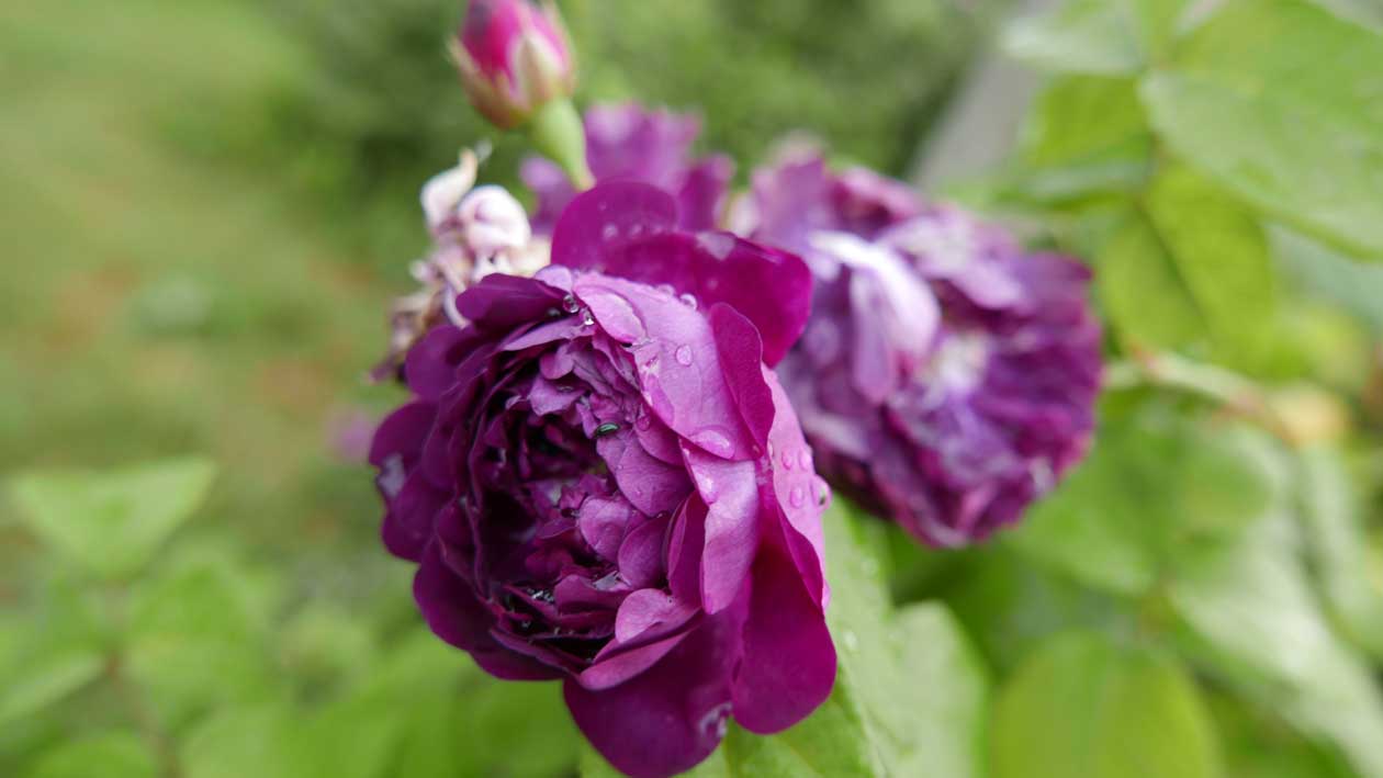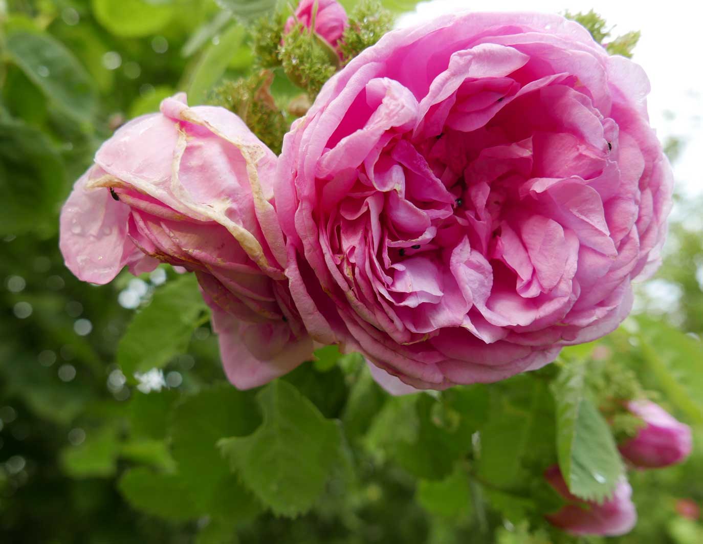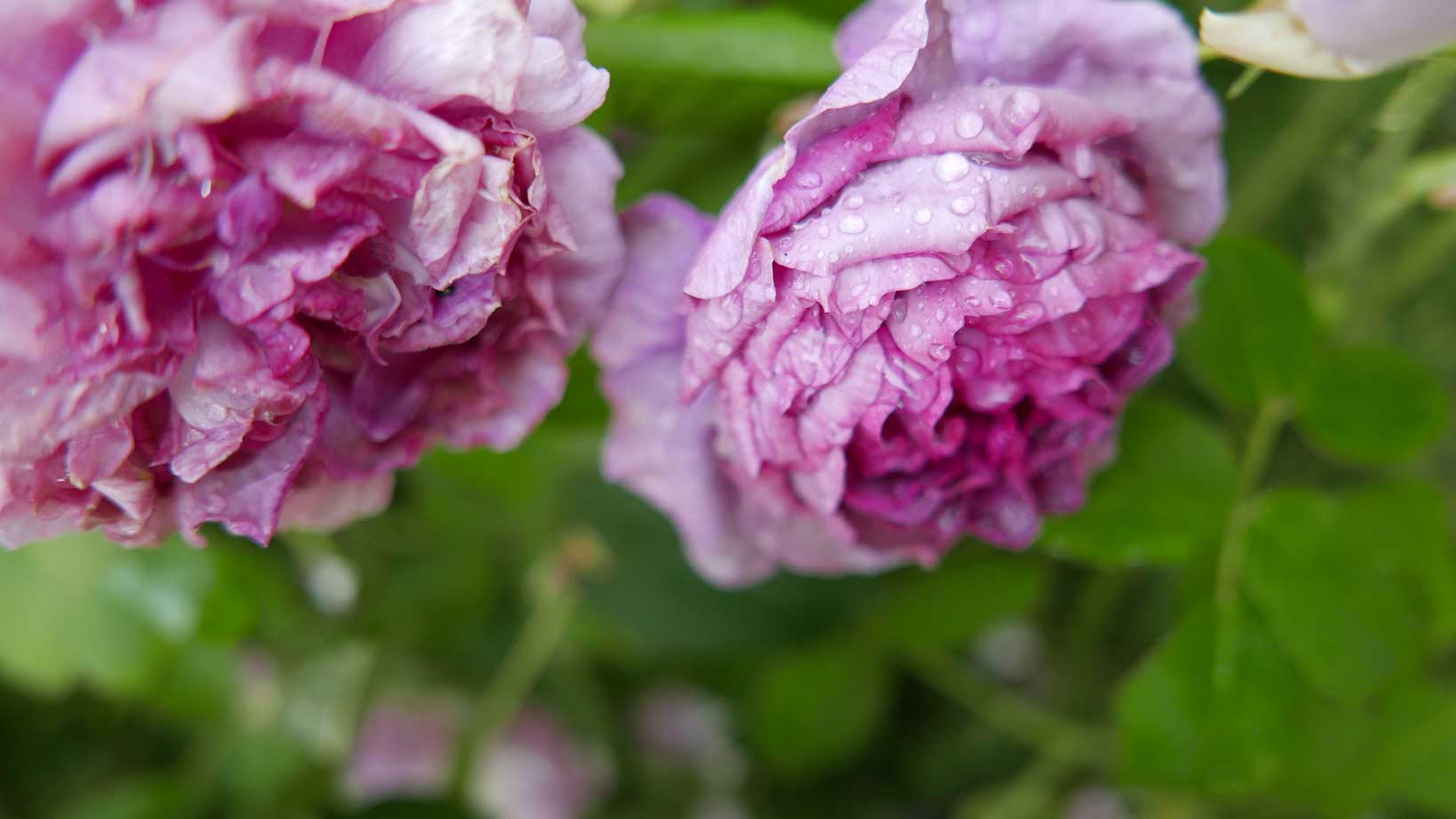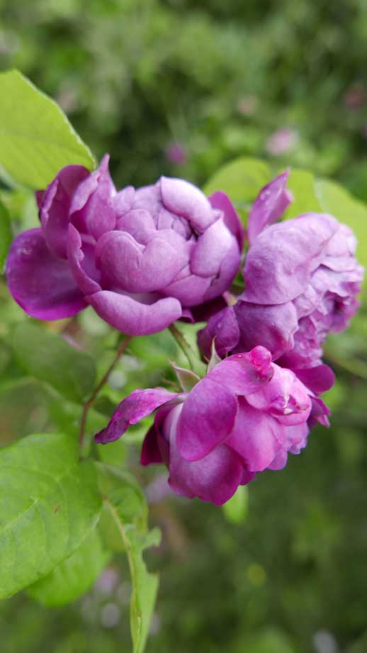 durch Rosen nach dem Regen und zwischen tief hängenden Zweige noch und wieder