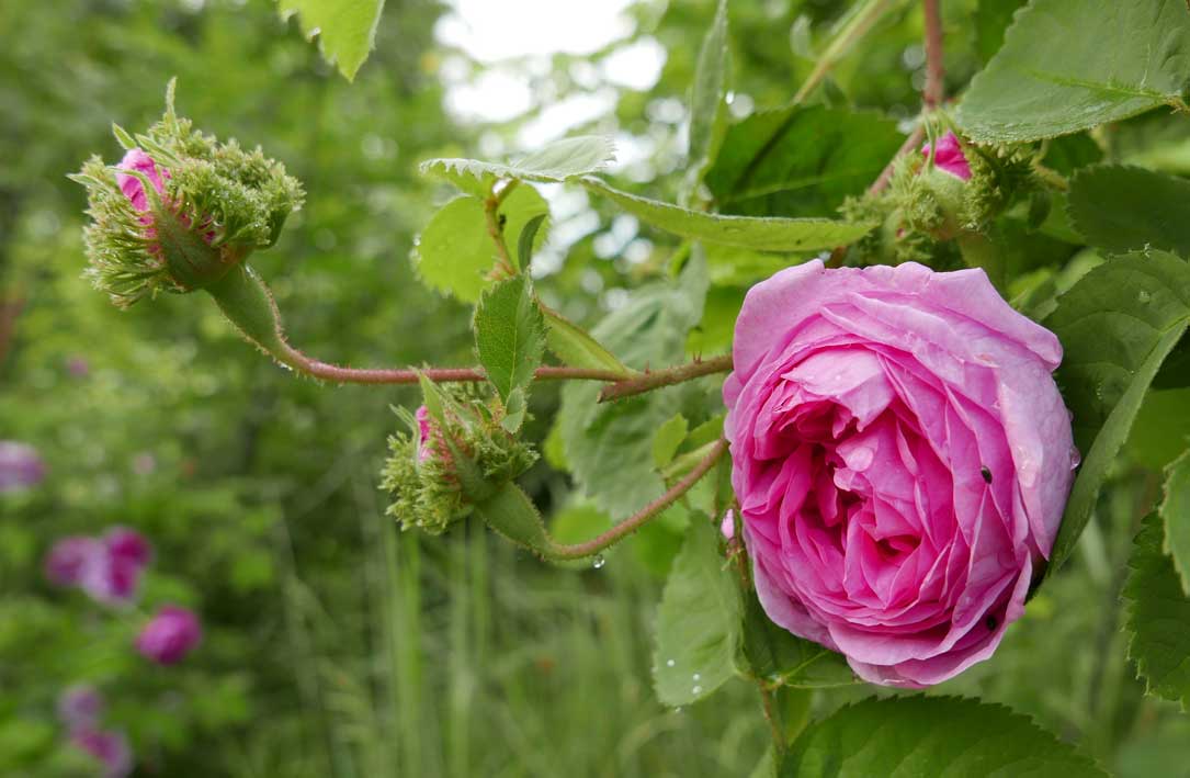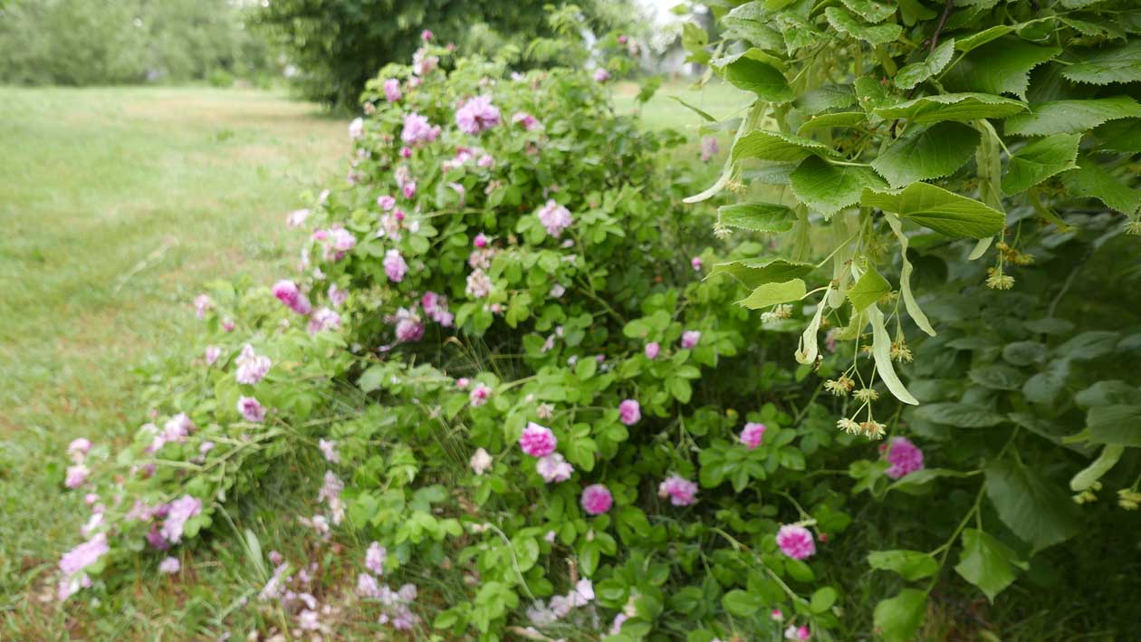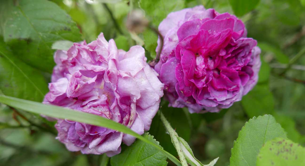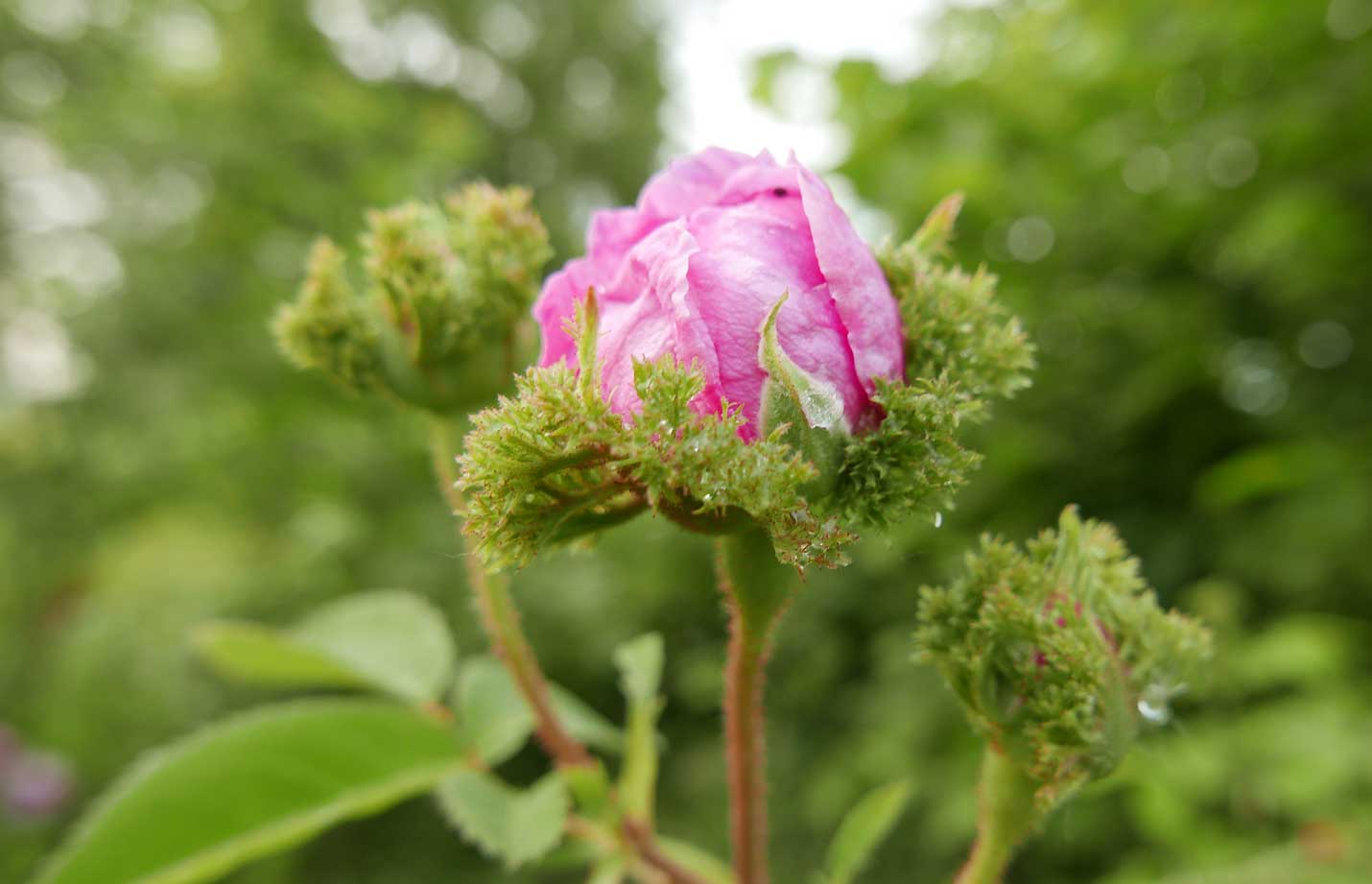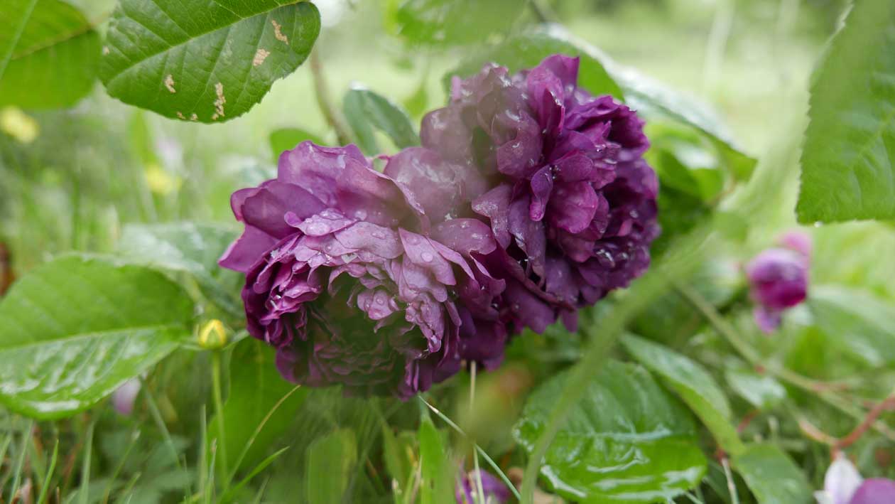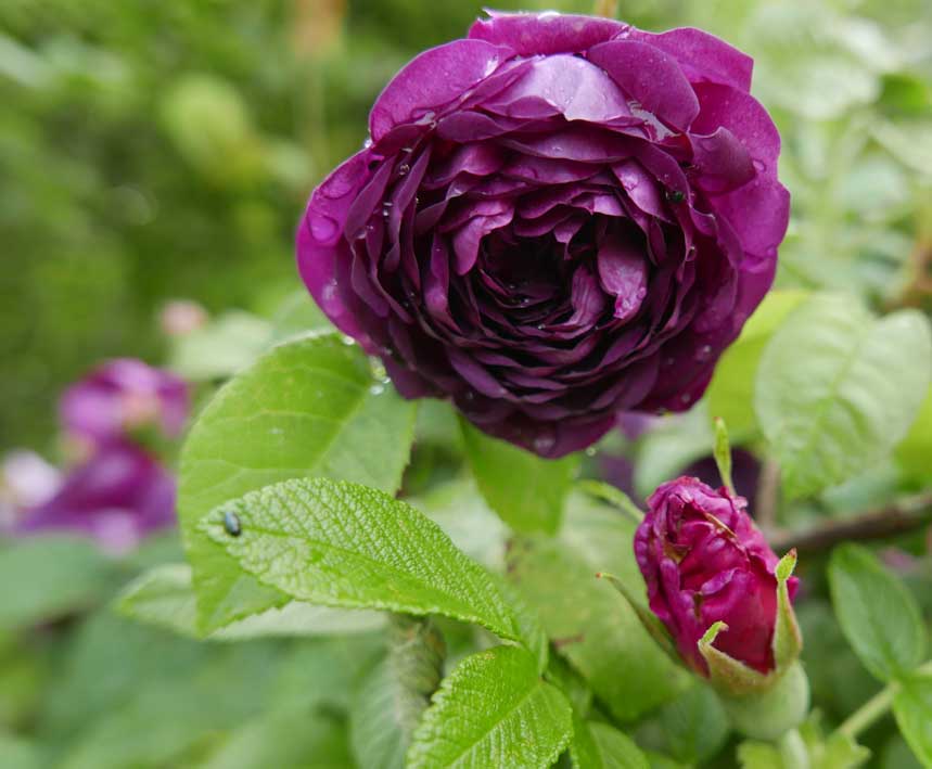 durch Rosen nach dem Regen und zwischen tief hängenden Zweige noch und wieder