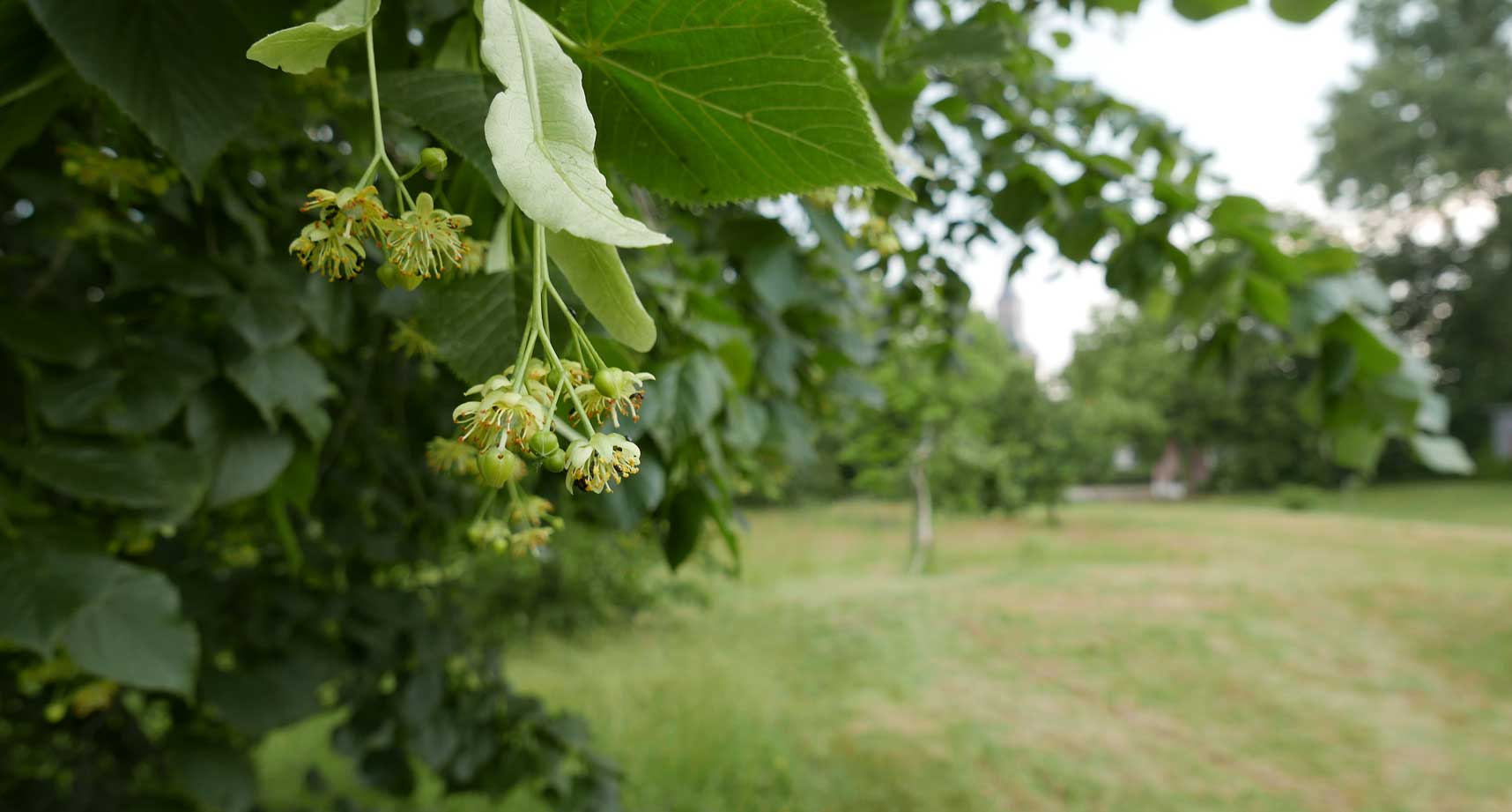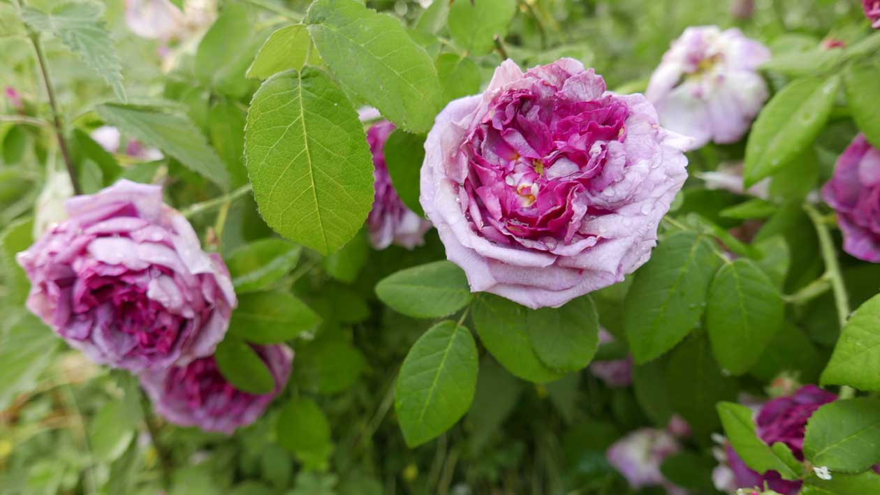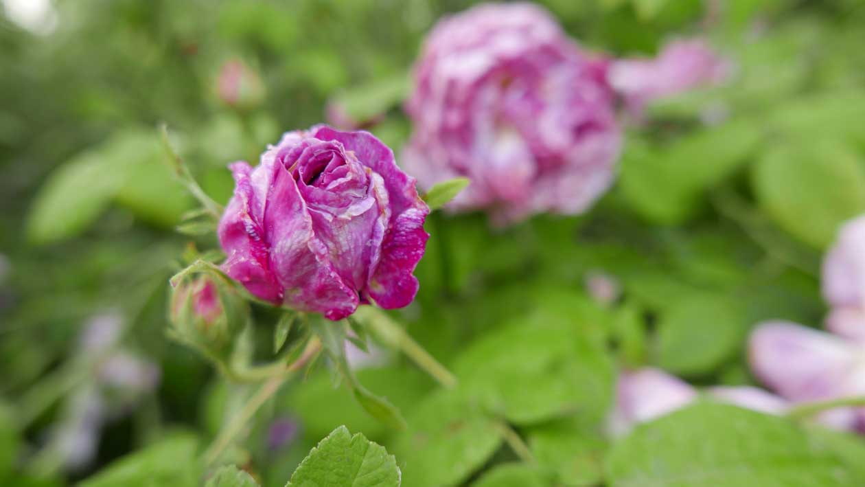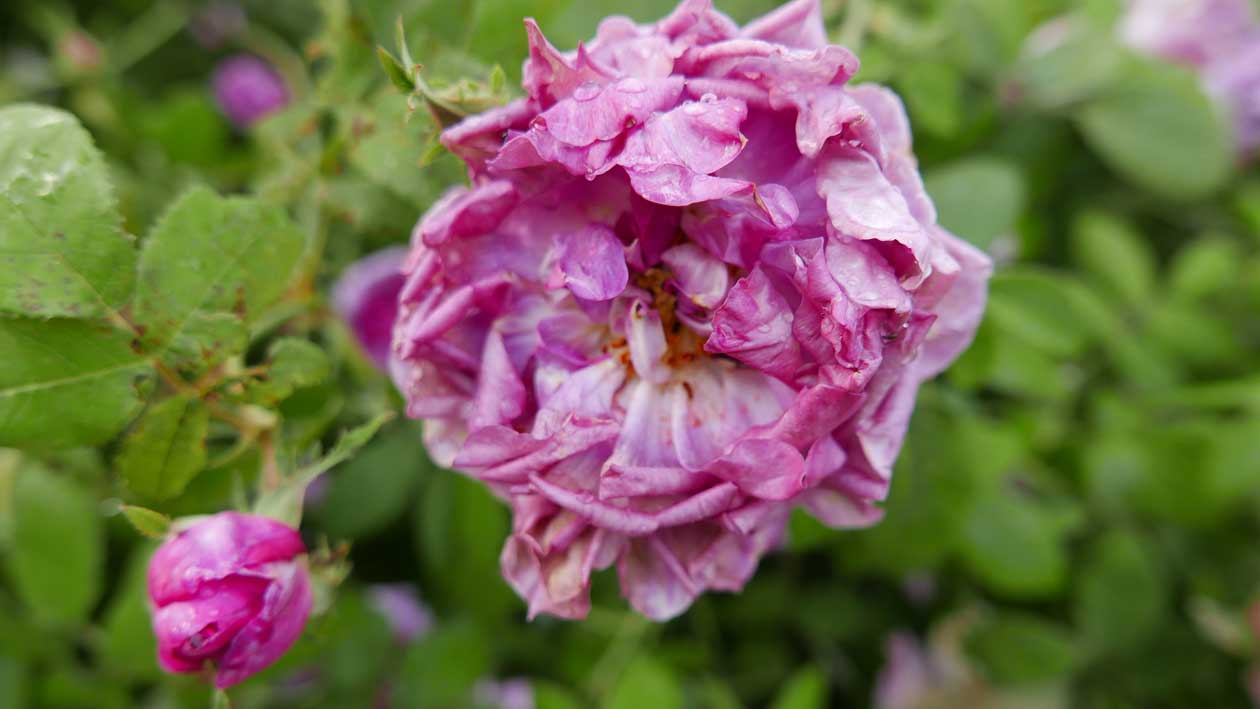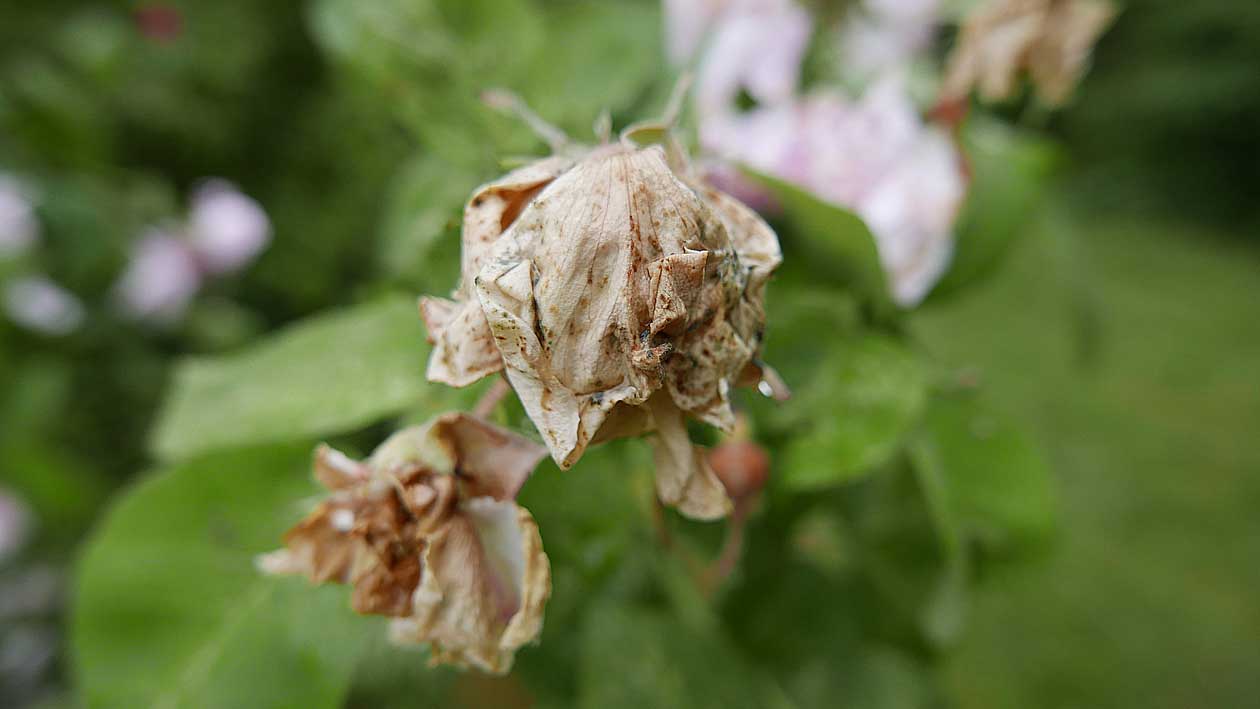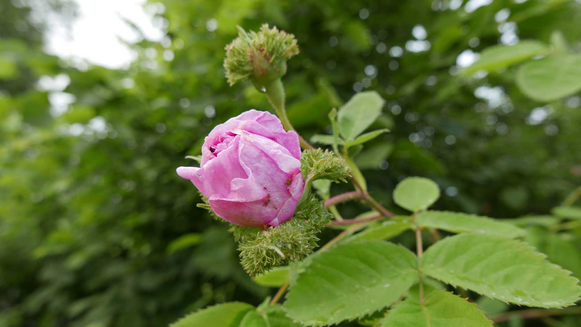 durch Rosen nach dem Regen und zwischen tief hängenden Zweige noch und wieder