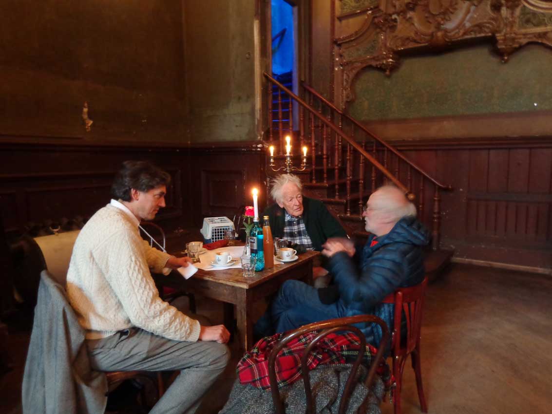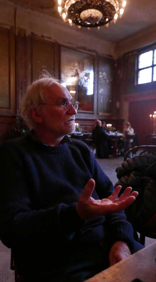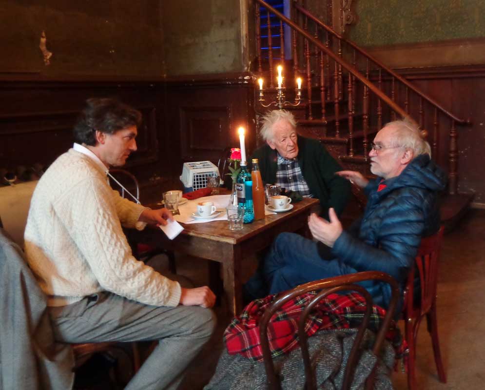 Blume erzählt von der Recknitz, seiner Trebel-Erfahrung bei Ribnitz-Damgarten, wo sie auch nach NVA-Strategie Fluss und Landschaft vollmachen mit Stahlspundplatten und Schotter. Er in der DDR aufgewachsen, kennt wie das geht, das Design: das rote Stahlgewitter nach der neuen Art. Nun in der Schlacht gegen die Natur.