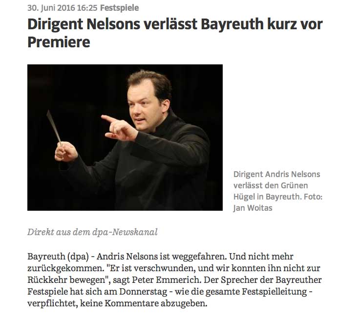 ...mehrere Insider berichten aber übereinstimmend, dass Nelsons Abreise mit Christian Thielemann zu tun habe.
