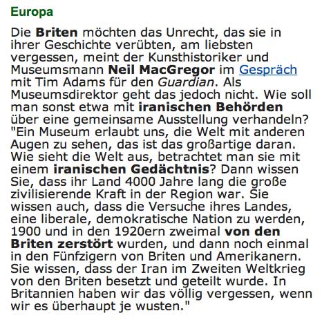 sollte die Britische Geschichte in Berlin ausgetragen werden, (Mac Gregor als Intendant des Schlosses demnächst.)wird es interessant.