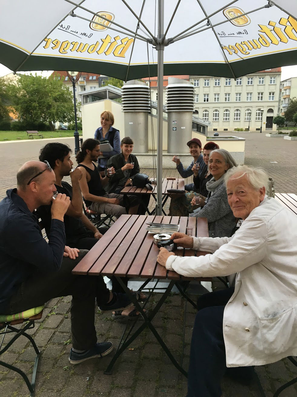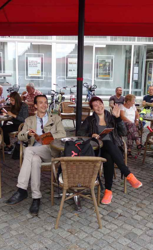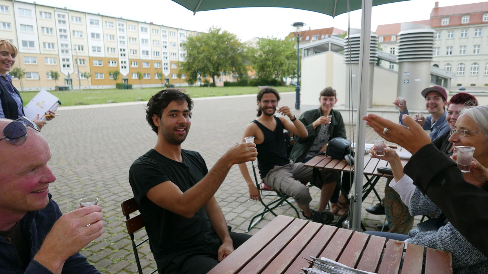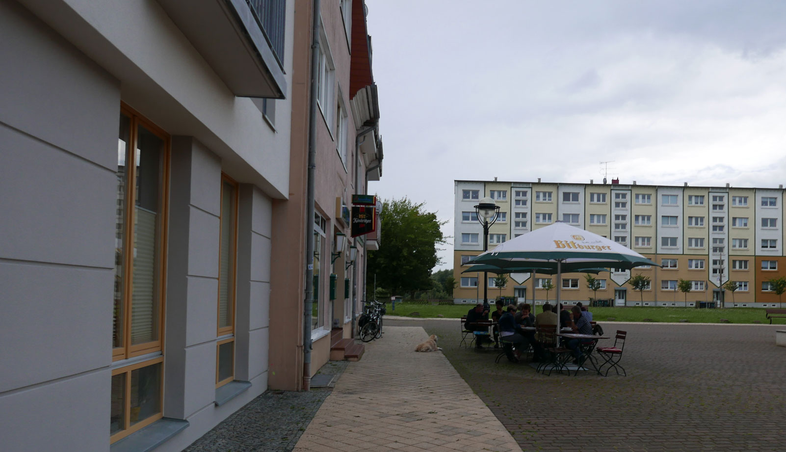 hat jetzt wieder einen Tisch und Stühle mit Schirmen