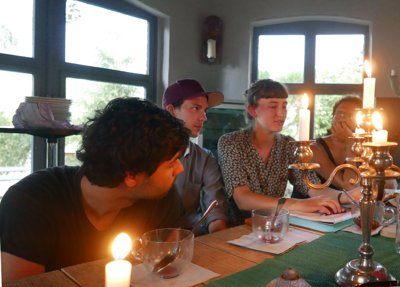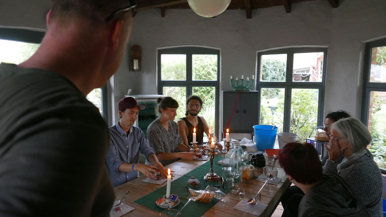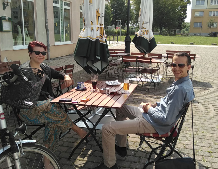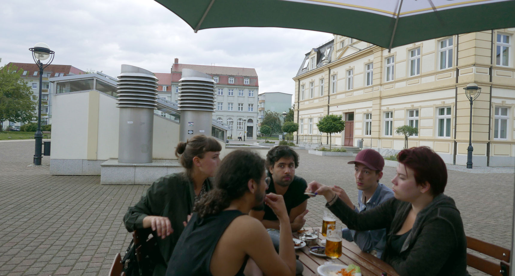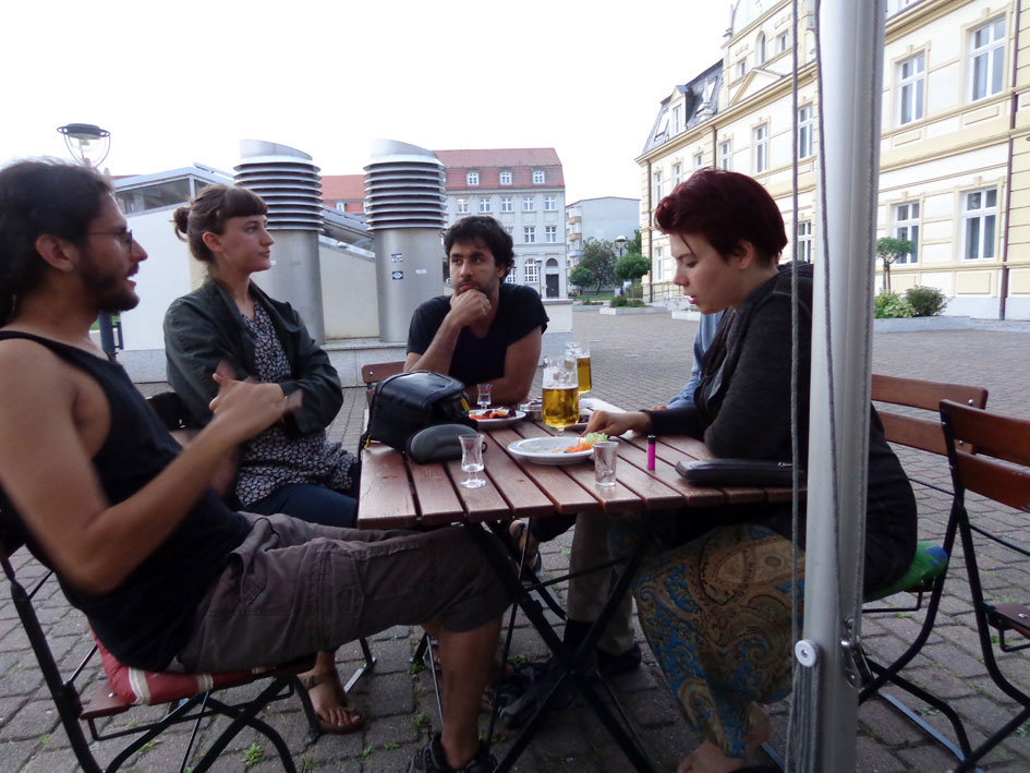 hat jetzt wieder einen Tisch und Stühle mit Schirmen