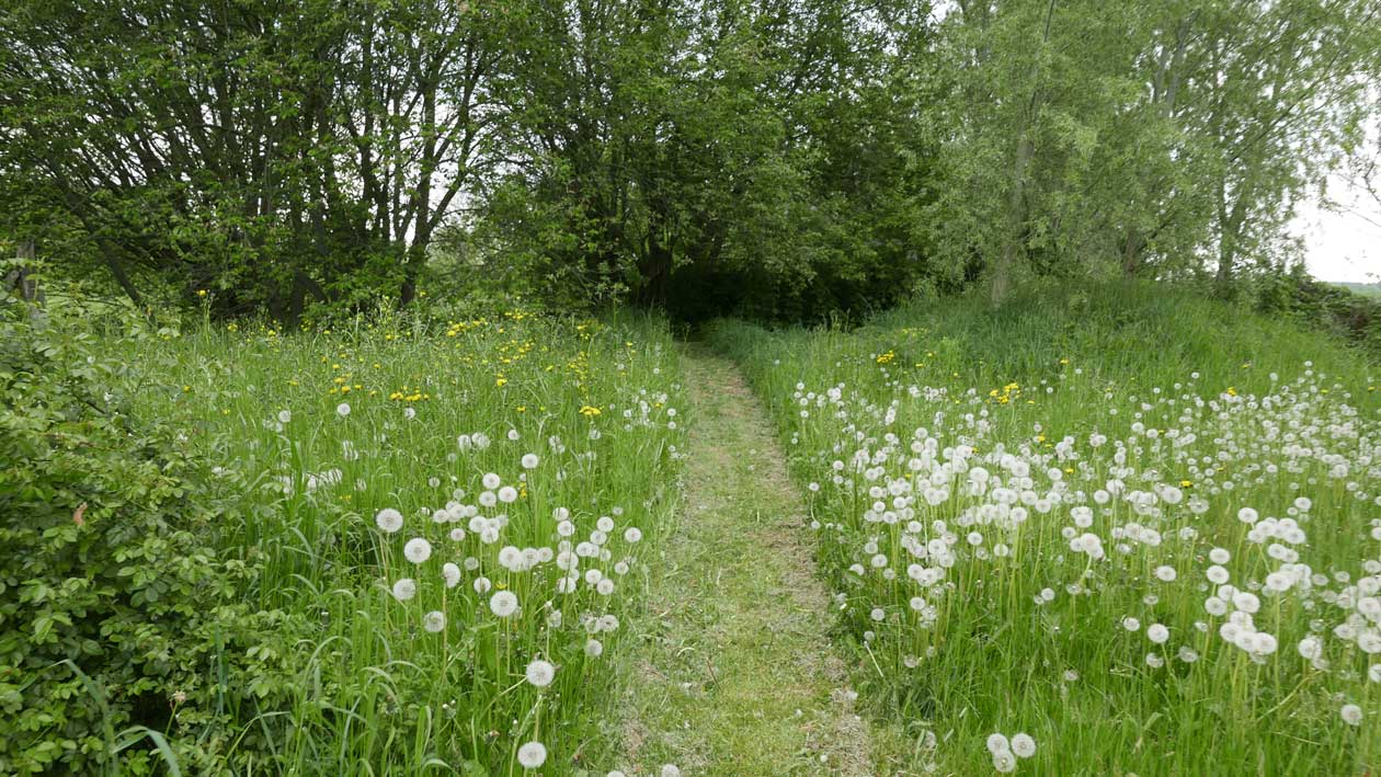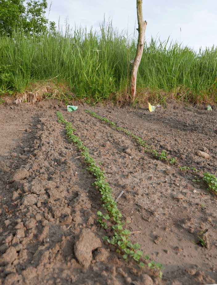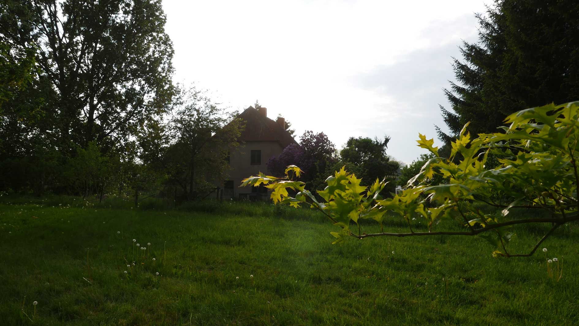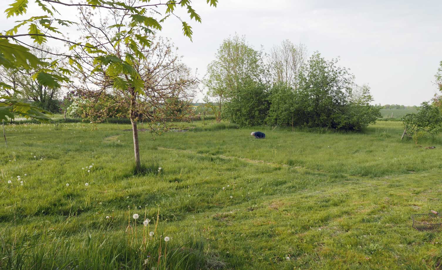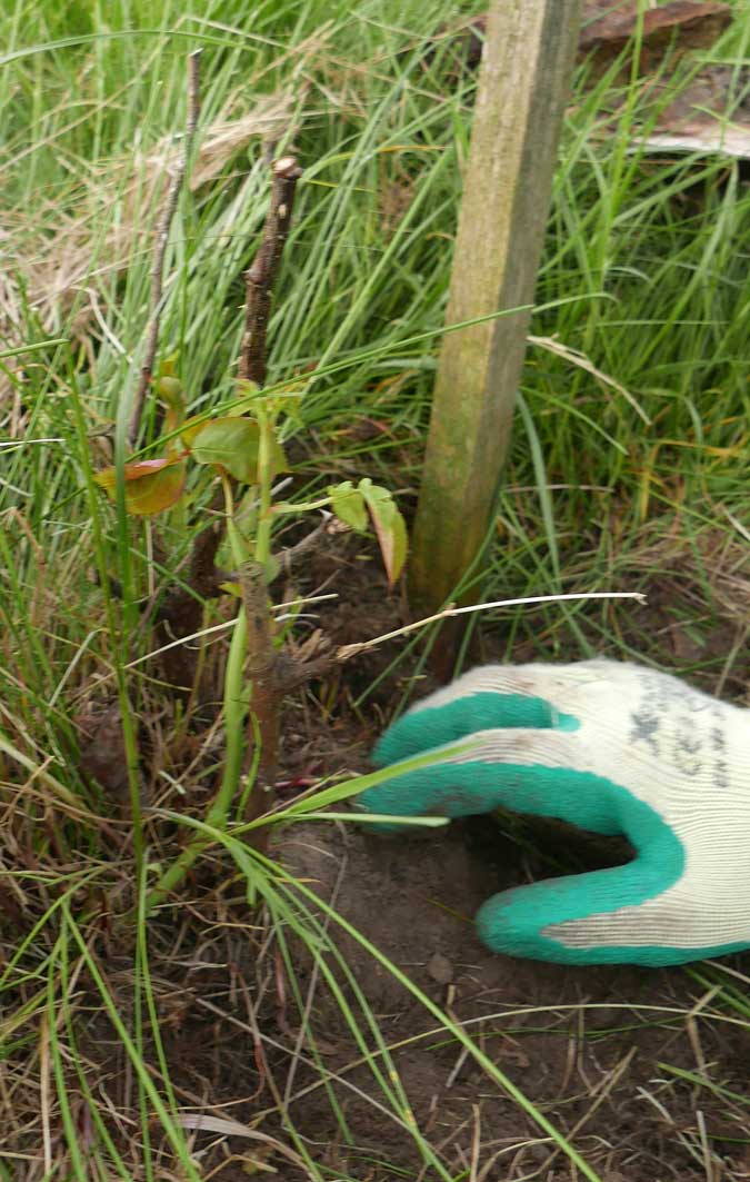 zwischen wildwucherndem Gras nach dem Winter befreit und von der Wühlmaus von unten angefallen