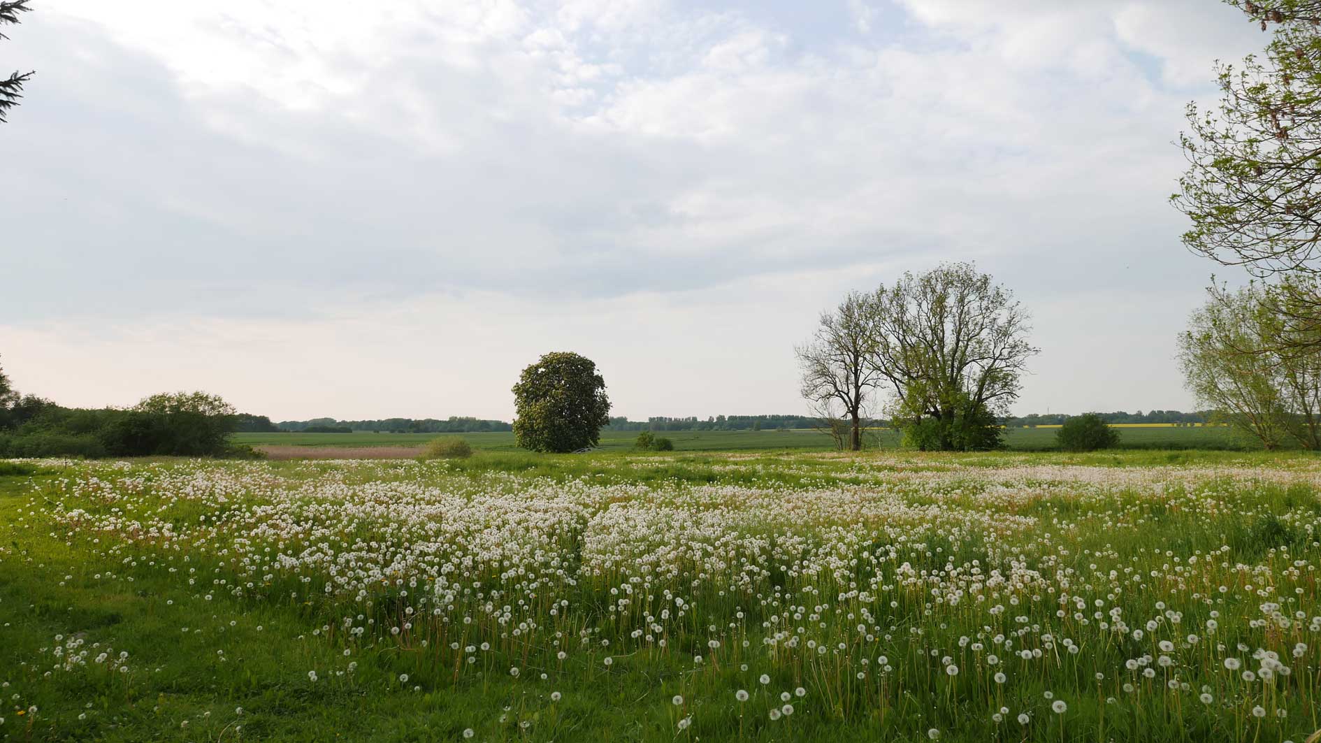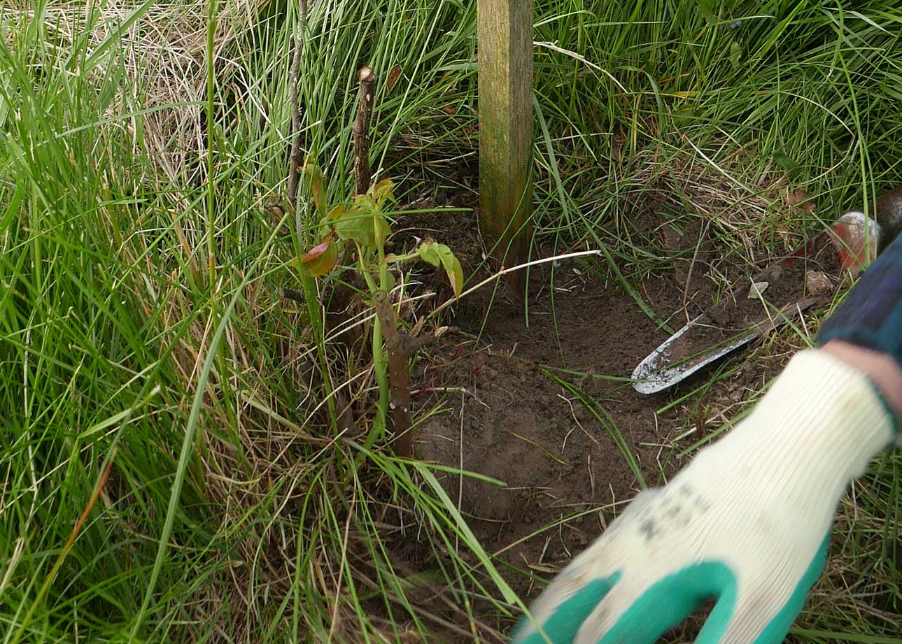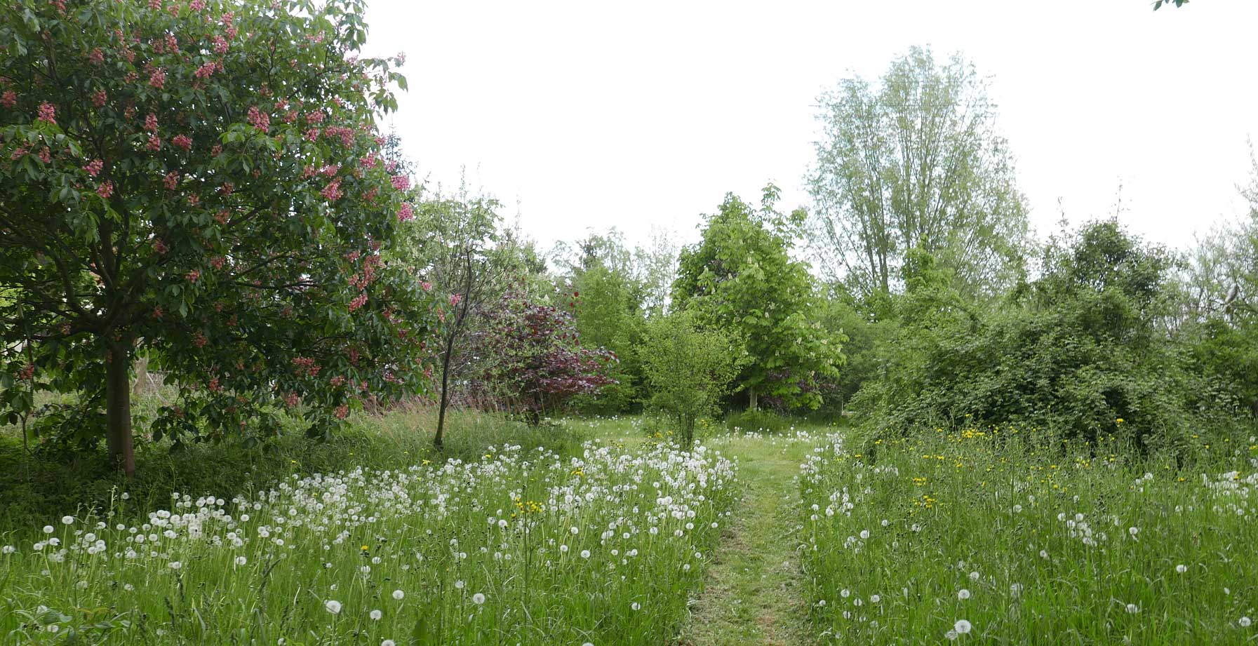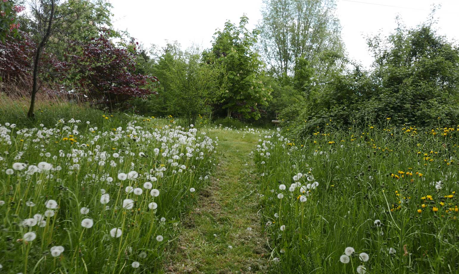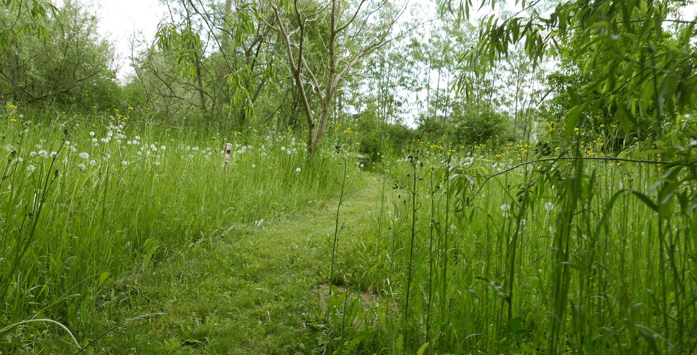 zwischen wildwucherndem Gras nach dem Winter befreit und von der Wühlmaus von unten angefallen