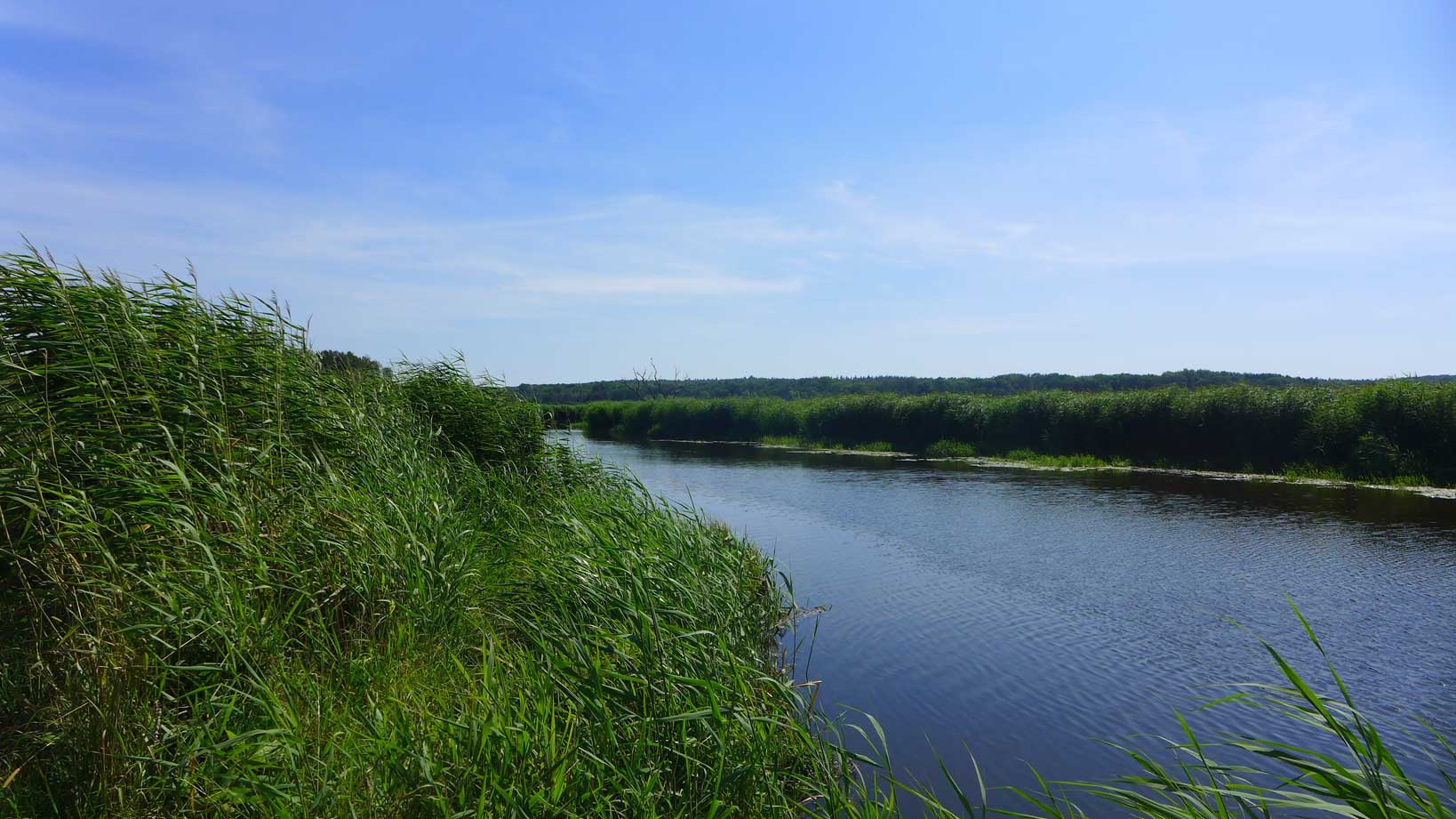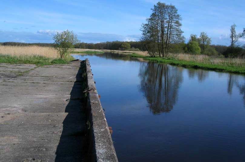Diese Ufer werden zu 4o Meter Eisen-Häfen und Schotterbeton die kostbaren Moorwiesen davor.