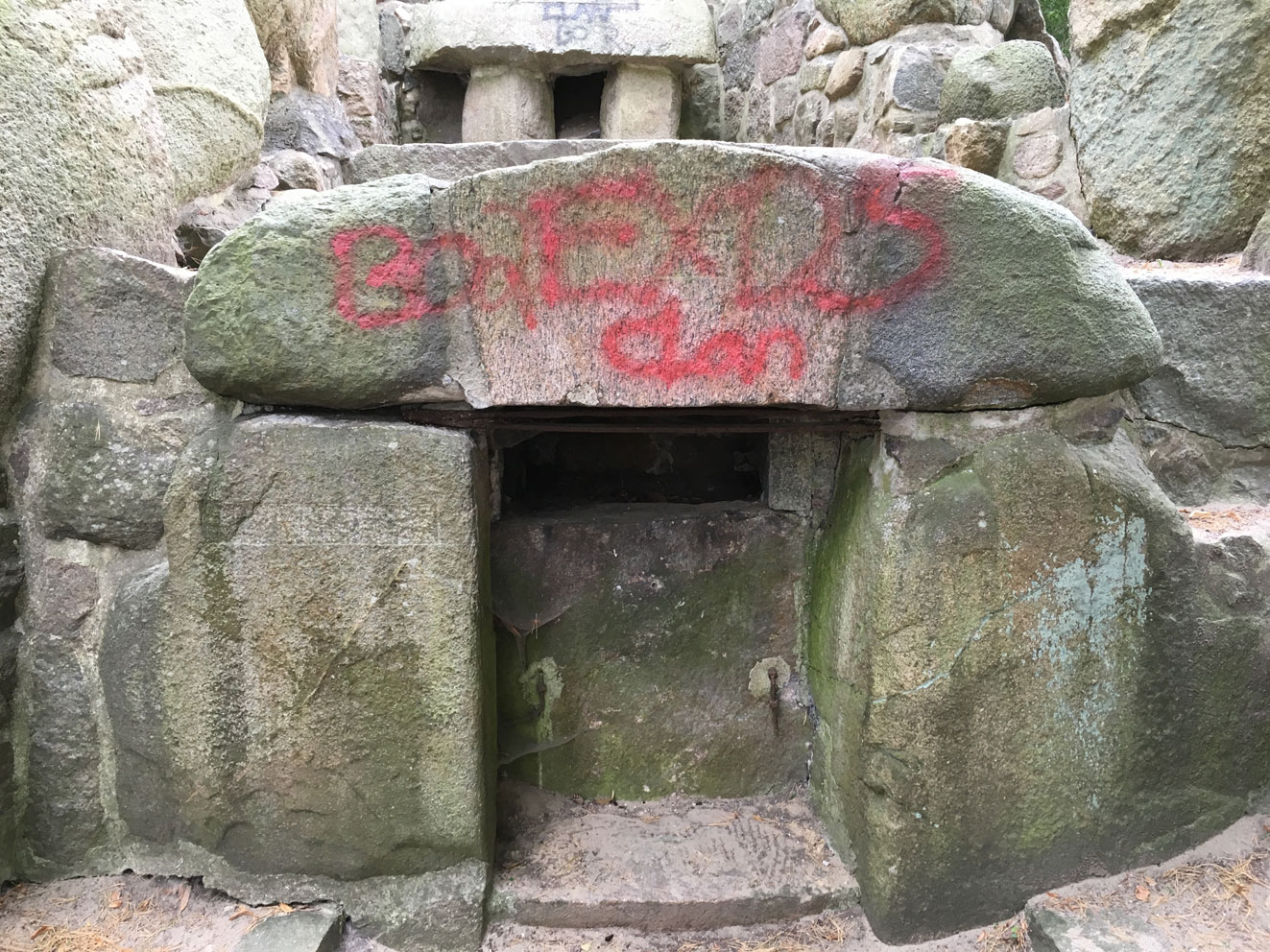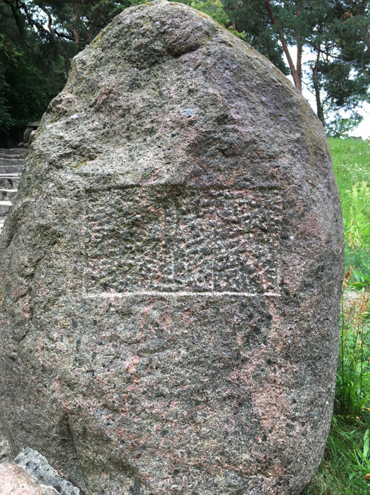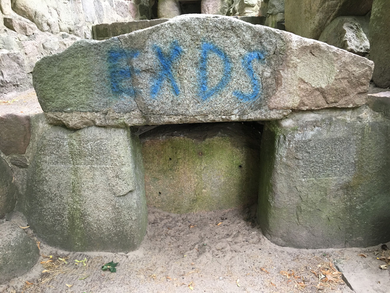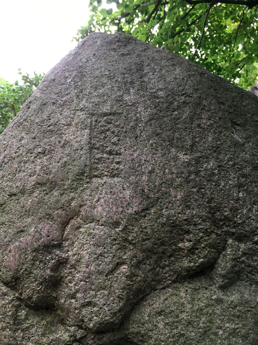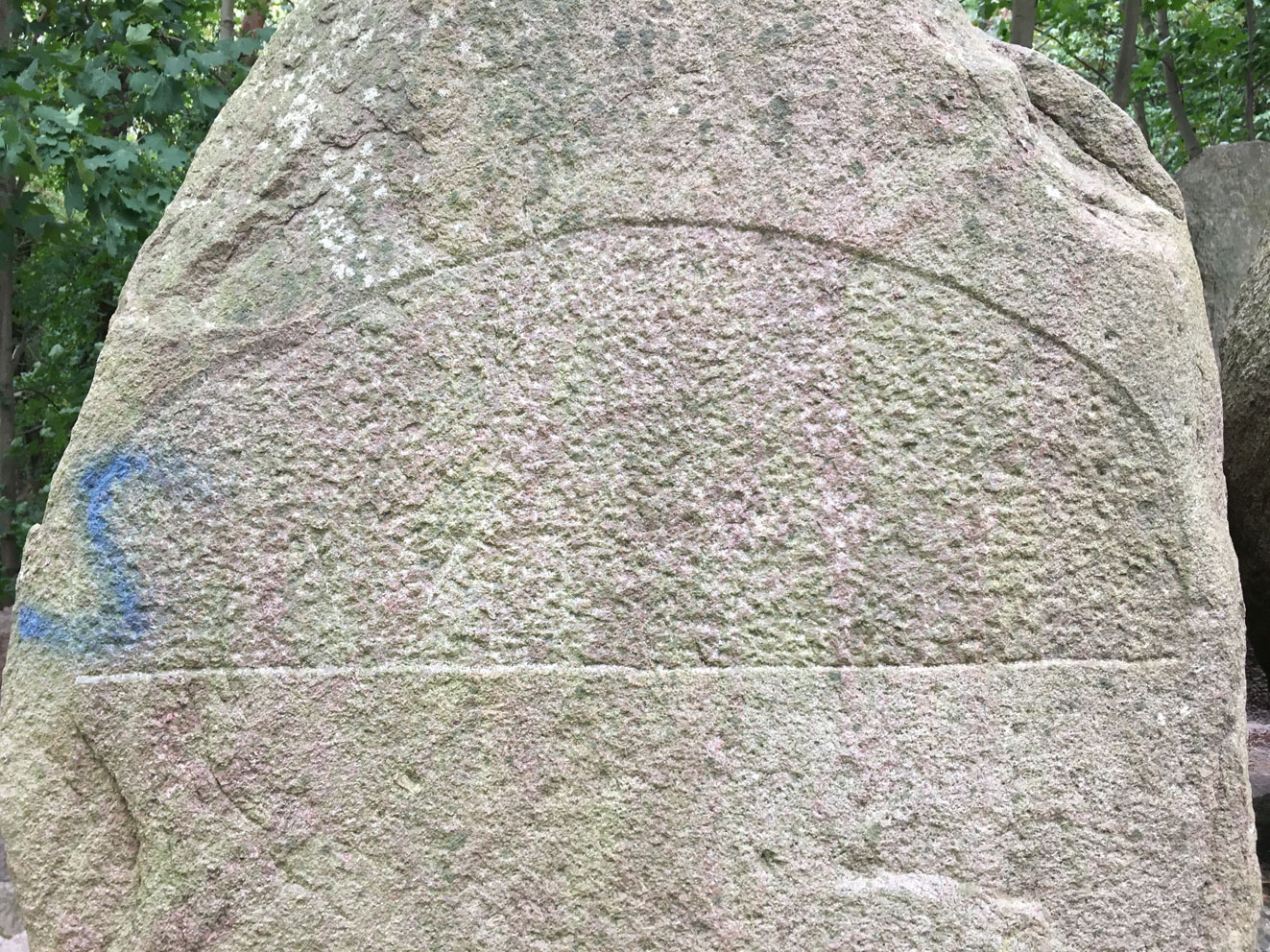 Diese Aufnahmen (MMS) in den Details jener markierten Stellen in den Findlungen aus den Hühnengräbern der Region, die die Treppe am Hang umsäumen markieren eine Vielfältigkeit der Formen des Details in einer auf Gesamtkonzeption bestimmten Wirkung.