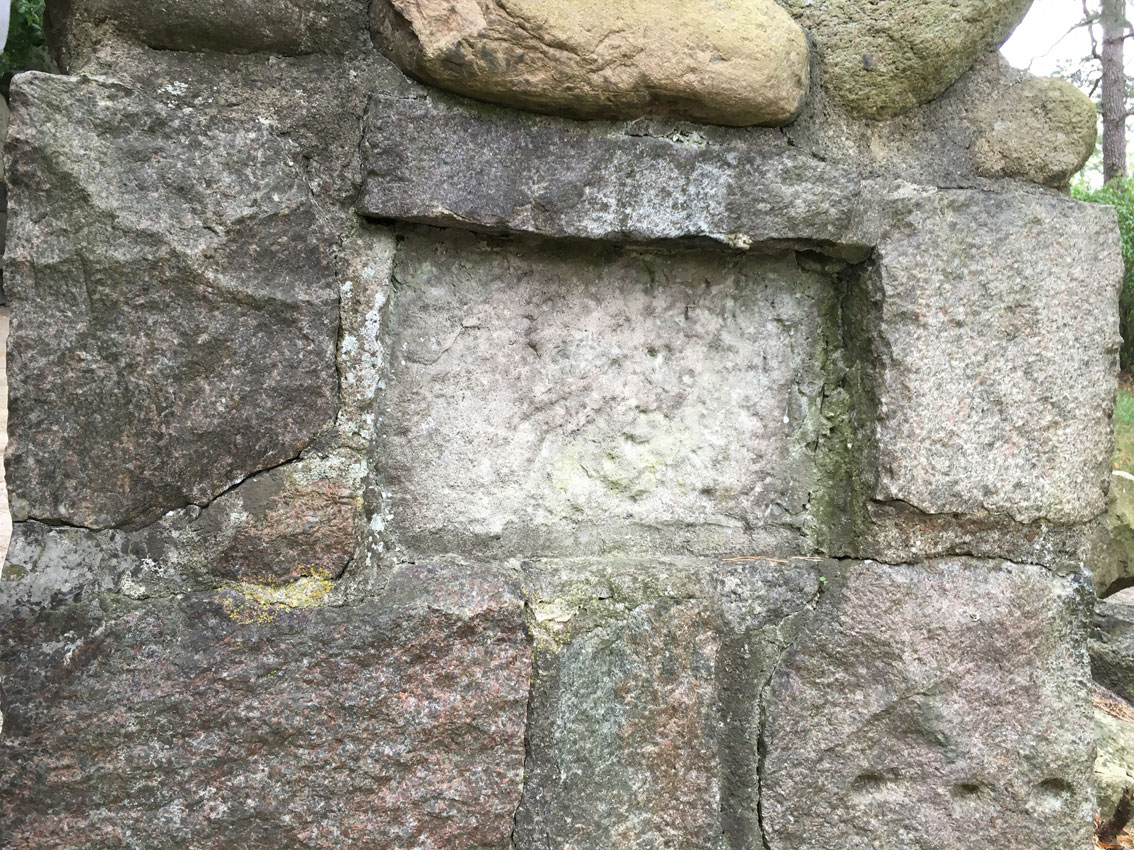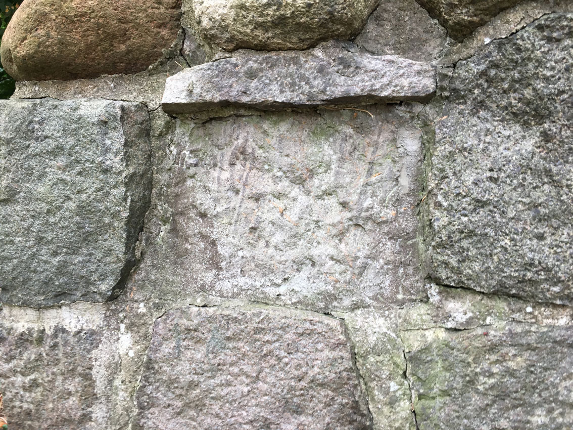 Es sind Markierungen in den Steinen und Nischen entstanden, deren Füllungen entfernt wurden.