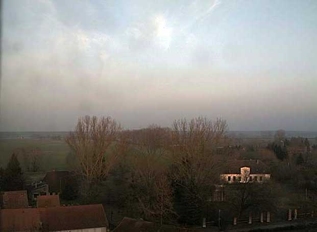 so nach 3 Uhr geht die Sonne unter über den Hof weit links neben der Kirche und dem Weg zuz ihr