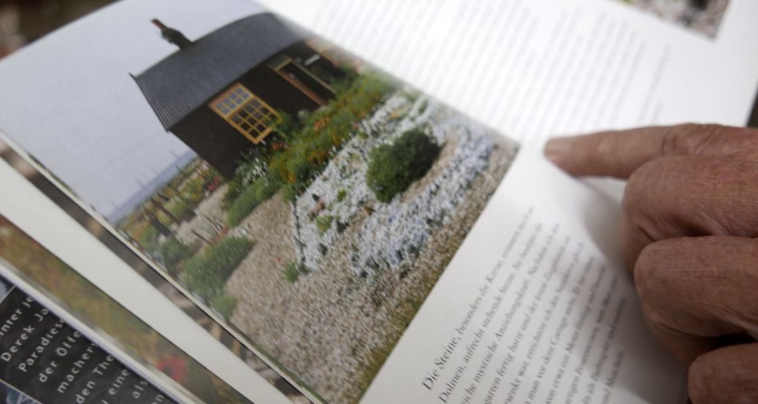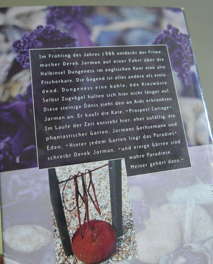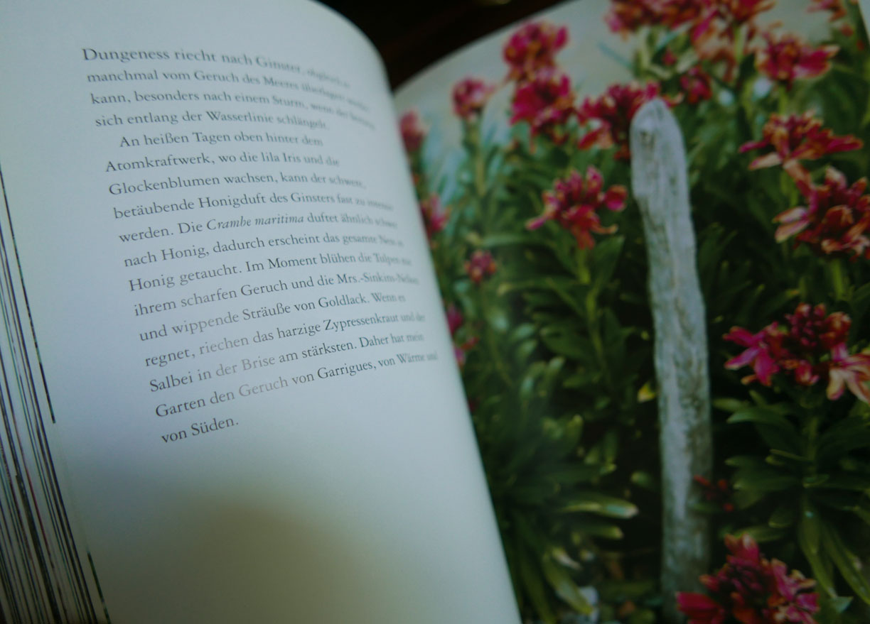 Derek Jarman, ein Buch über seine Existenz am Meer. Nachdem er Filme gemacht, über Caravaggio, immerhin. Ein Stück Geröll, eine Hütte und los. Ein Paar Jahre hatte er noch. Pflanzen die der dort fand. Das Atomkraftwerk immer im Blick dahinter.