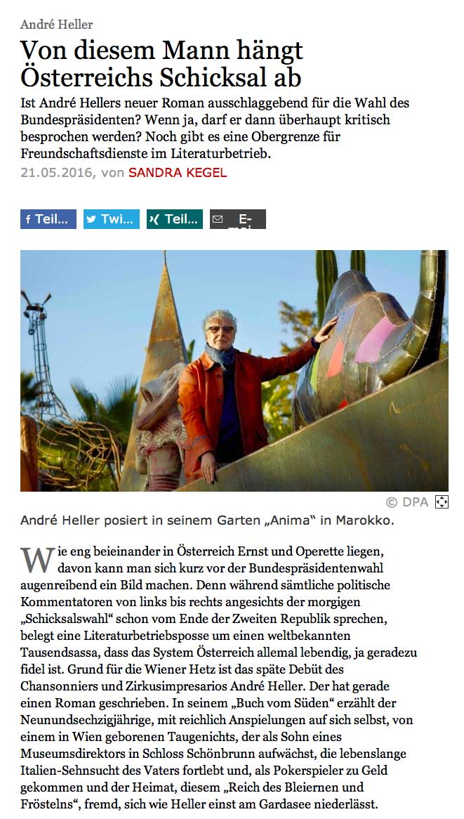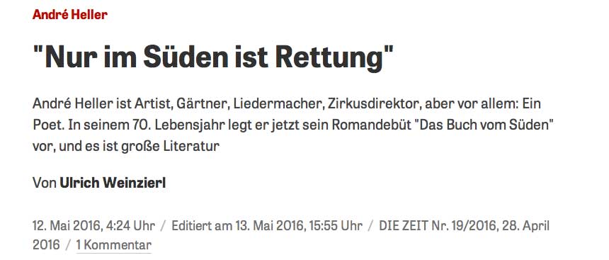 In der ZEIT..."Für mich jedoch war André Heller anno dazumal ein überbegabter Blender mit dem Zeug zum verschmockten Scharlatan. Meine Kritik zielte ins Grundsätzliche: "Ist er, was er kann? Verbirgt sich hinter den zahllosen Masken ein Gesicht?"