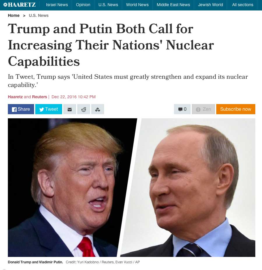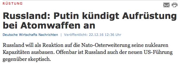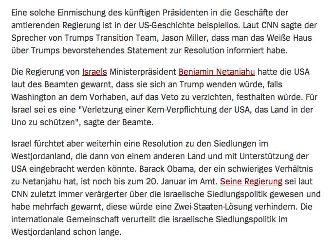 ein Statistik der Kriege im letzten Jahr erweist den nahen Ost als den wunden Punkt der jüngsten Geschichte. Wer da nicht heilt, ist mit dem Ende der Welt belastet. Wer anders als ein scheidender Präsident der USA könnte das tun. Das ist die Angst der Kriegstreiber, die auf Weltende aus sind, als Ziel ihres apokalypischen Weltbildes. Ihrer egomanen Erlösung. Sie werden alle anstiften in ihrem, diesem Sinne zu handeln.Ohne dass diese es merken. Und sei es zur eigenen Vernichtung.