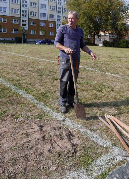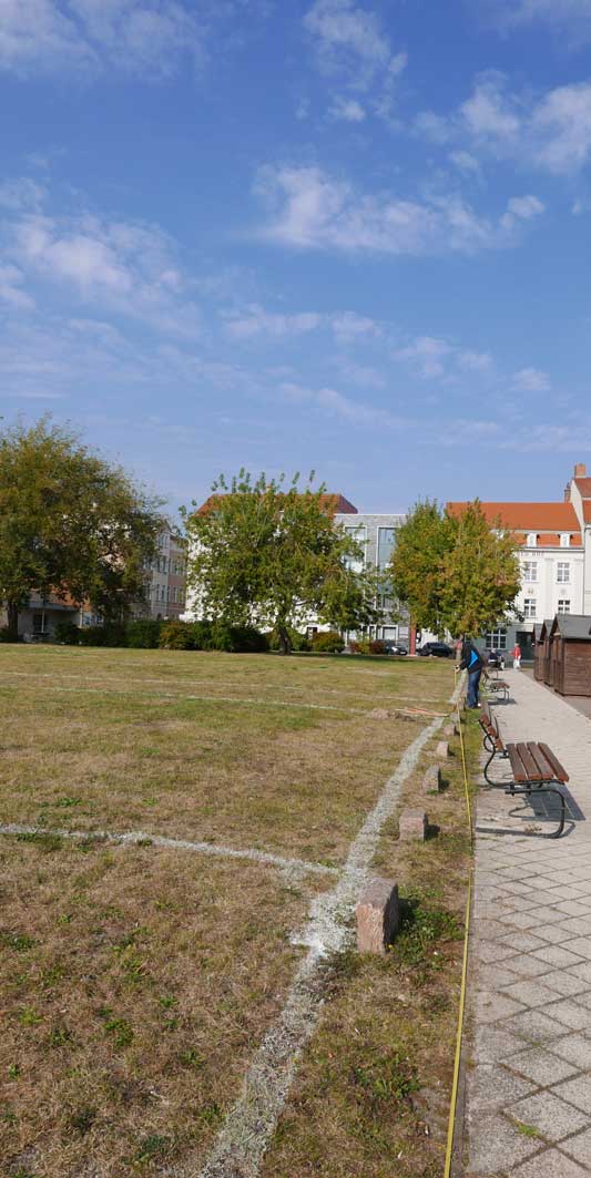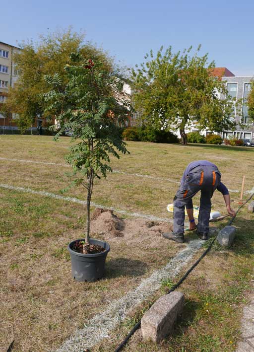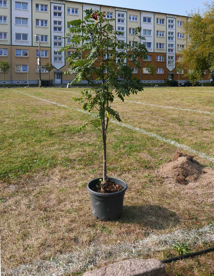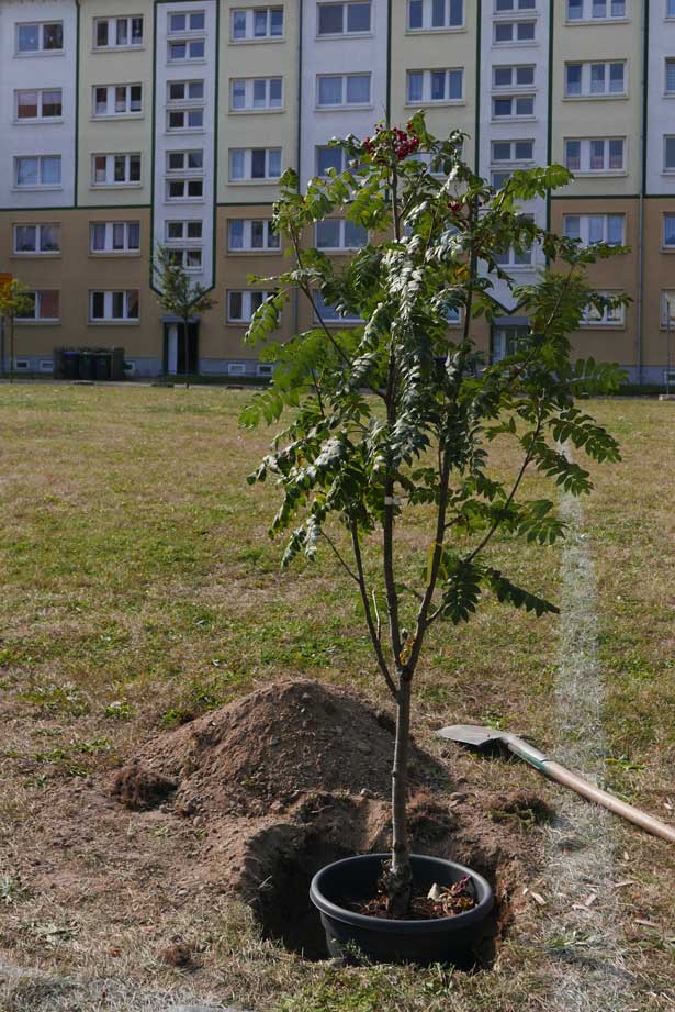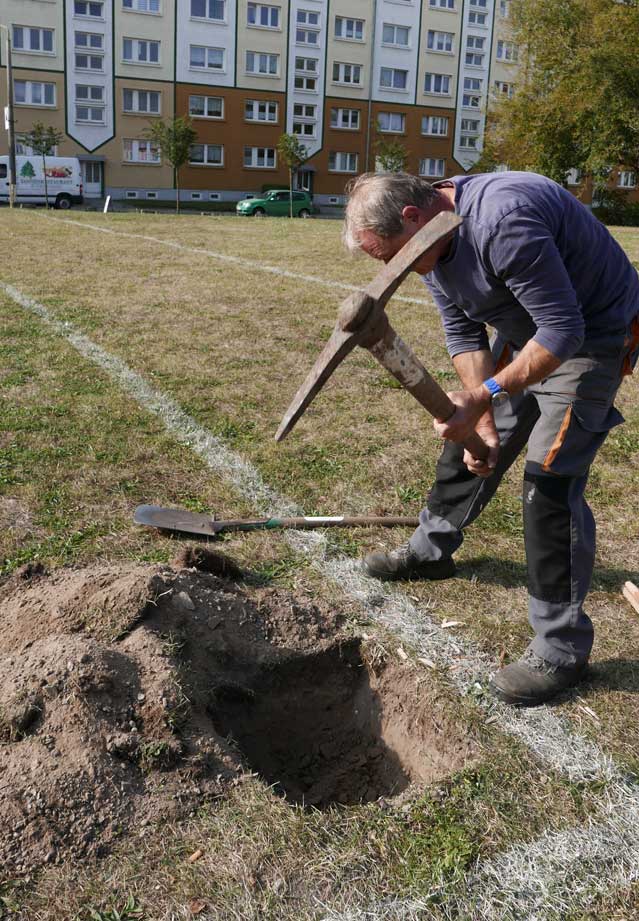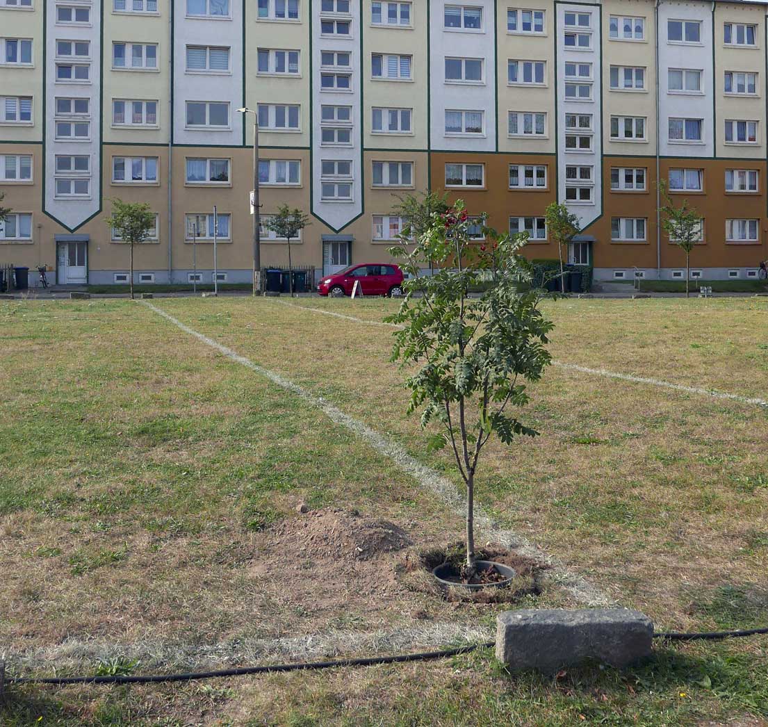 Proben, was wird da drunter sein. Und gerade das Drunter ist das was uns blieb. Darüber nun die jungen Bäume. Die Stundent aus Norwegen habens installiert, was blieb von 2 Wochen Demmin, und selbst aus verschiedenen Ländern. Der Welt. Nu in Demmin heute. Messer wirs ab,