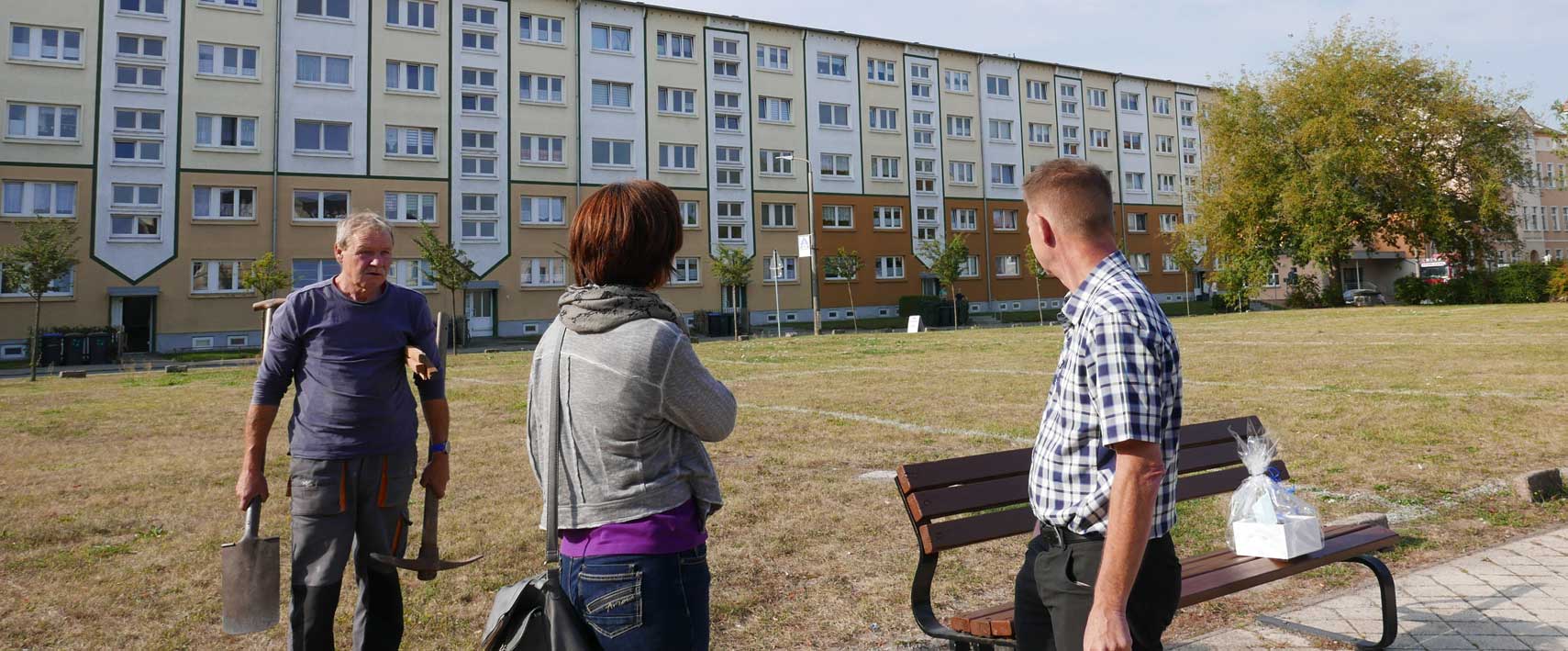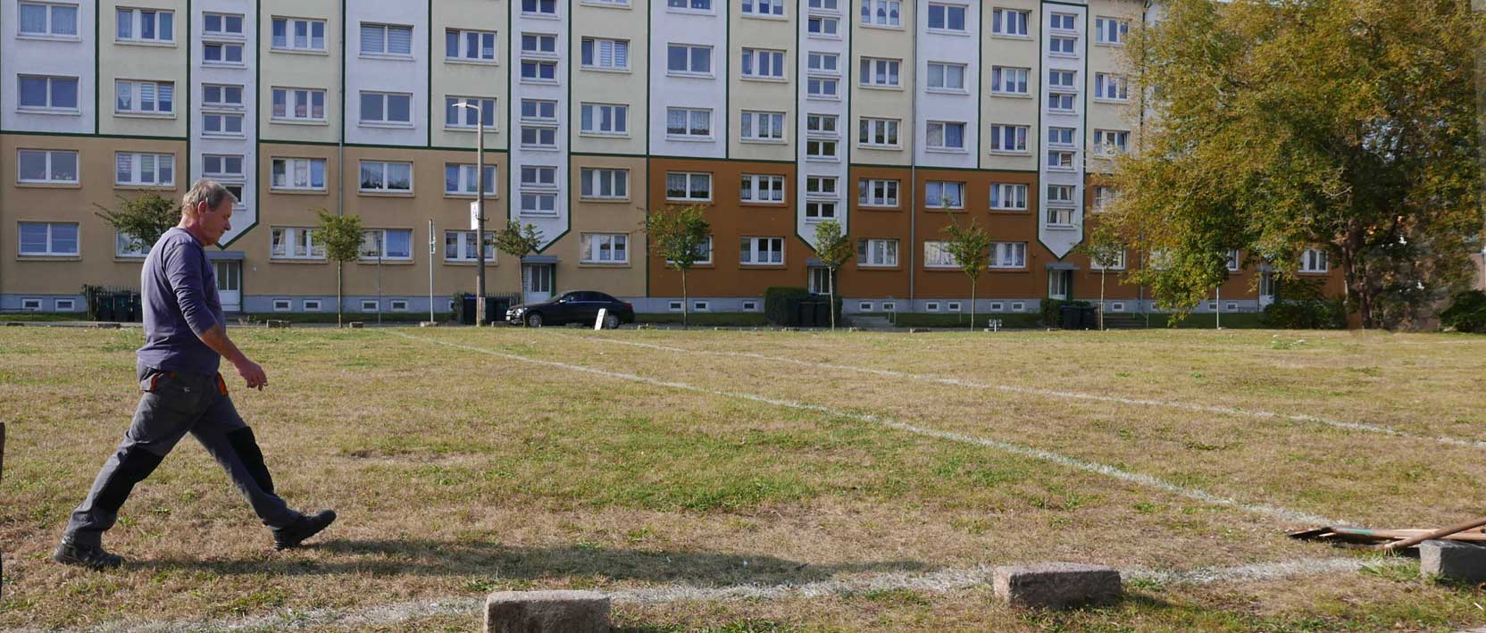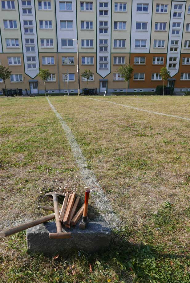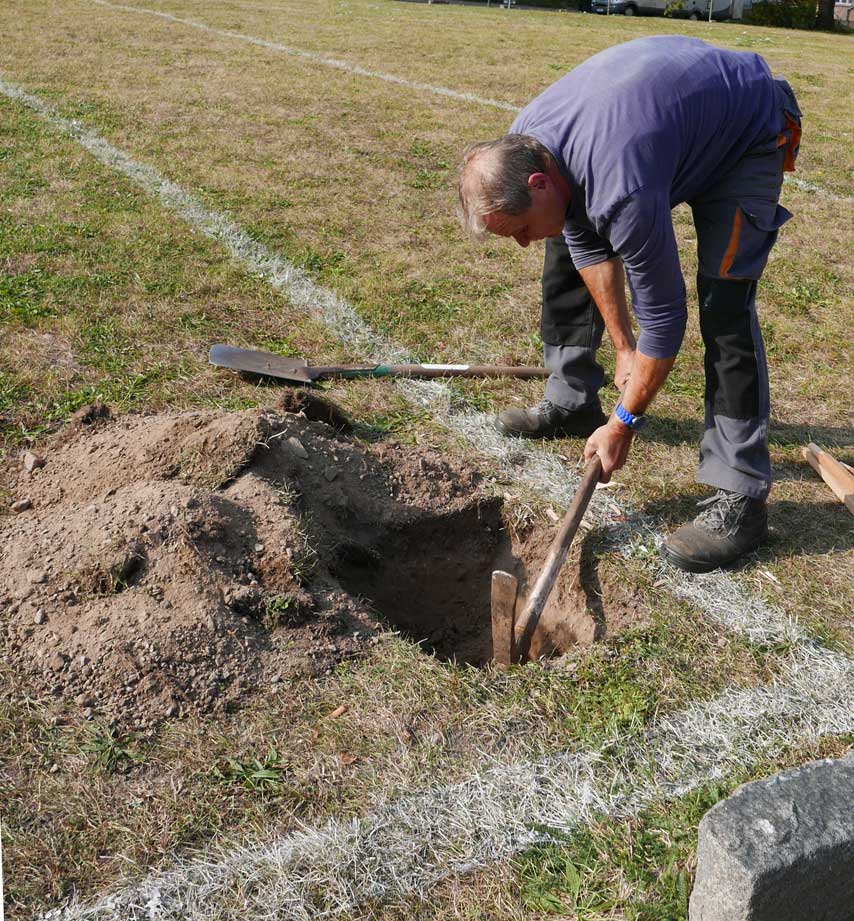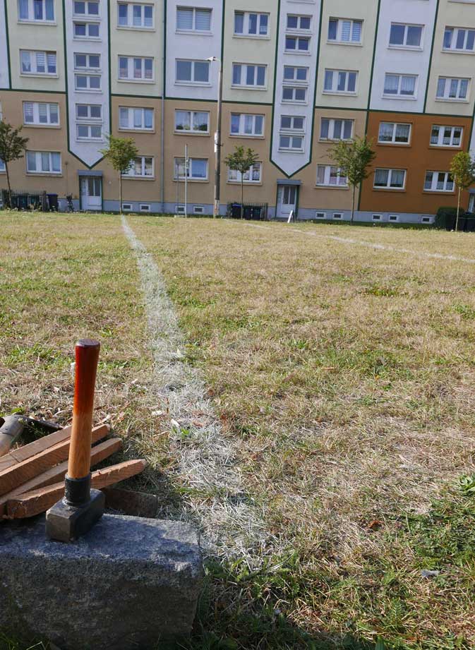 Proben, was wird da drunter sein. Und gerade das Drunter ist das was uns blieb. Darüber nun die jungen Bäume. Die Stundent aus Norwegen habens installiert, was blieb von 2 Wochen Demmin, und selbst aus verschiedenen Ländern. Der Welt. Nu in Demmin heute. Messer wirs ab,