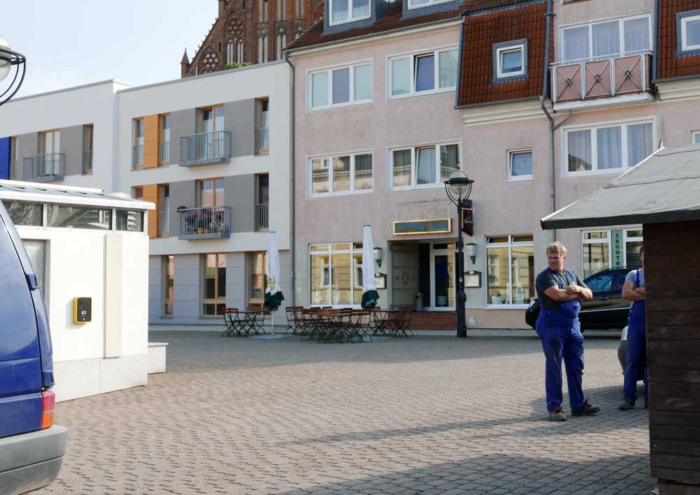 und der GRiech hinten mit Tischen und Schirmen nun auch dabei