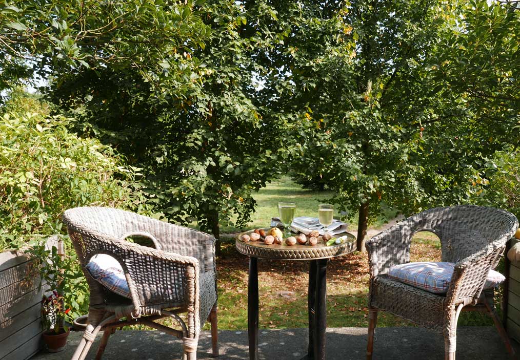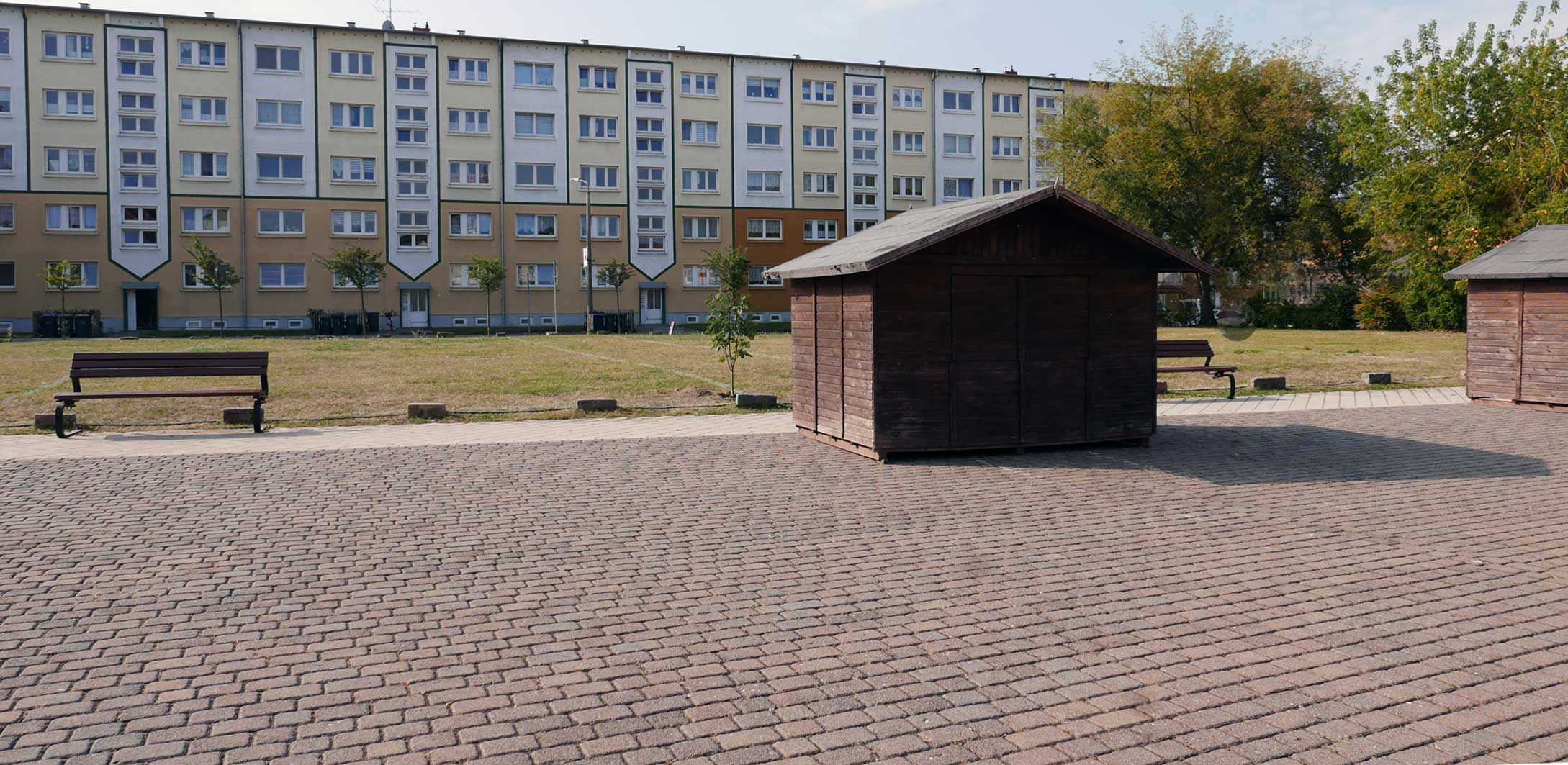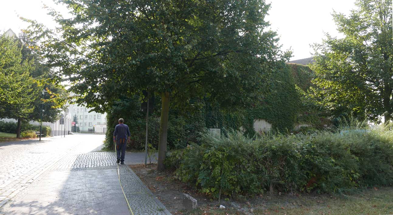 Die Markierung des früheren Kellergangs zwischen den Häuser bis 1945. ZUZ Bäumen werdend. Aber