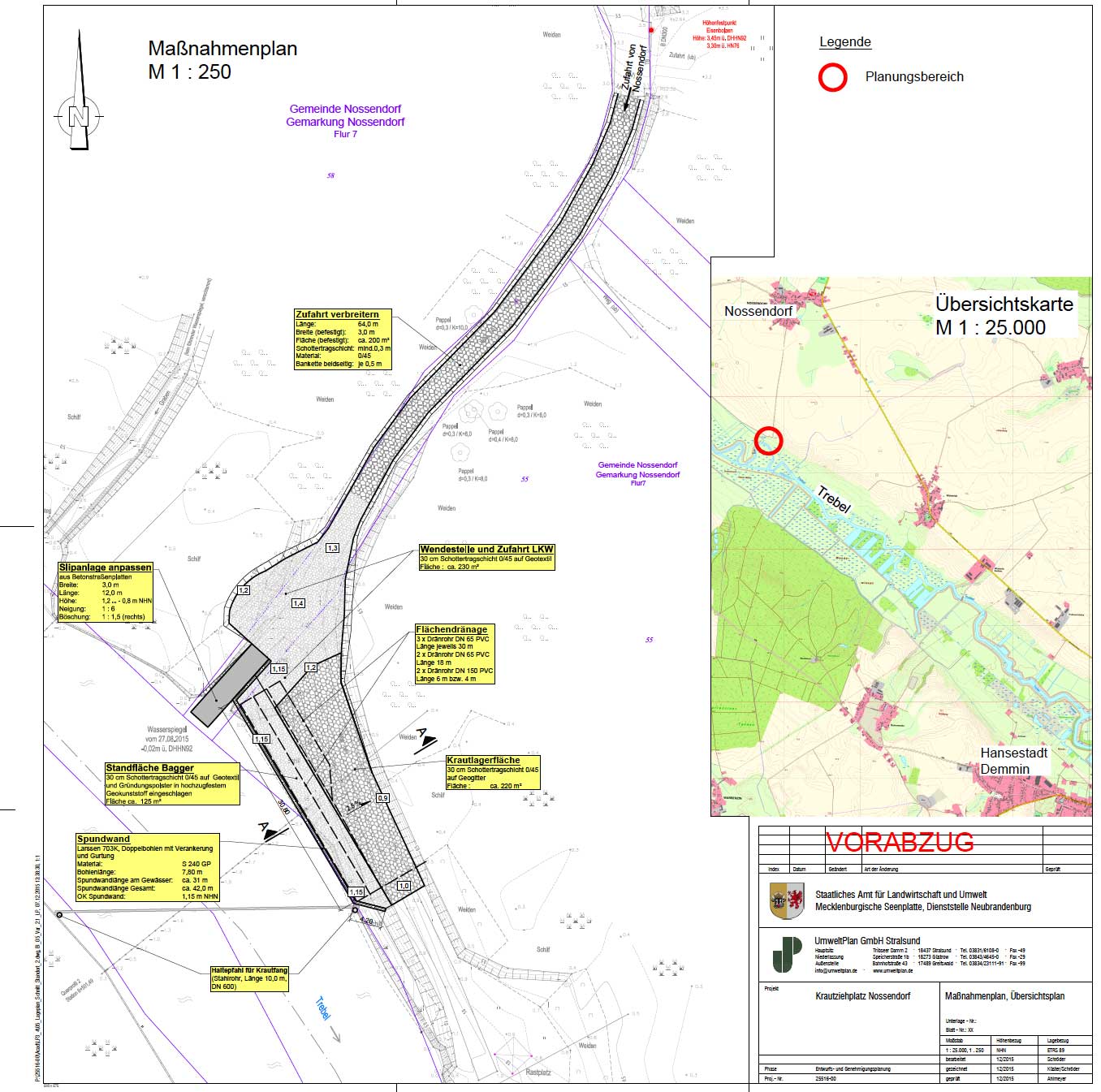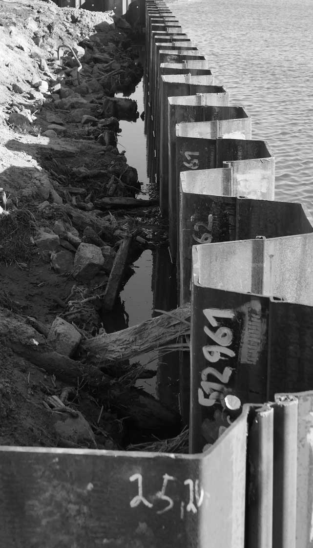 Dagegen eine Stahlwand von 8 Meter Tiefe und in Nossendorf 41 Meter Länge und Wendeschleifen mit Schotter aufschüttung im Moor. wie für einen Hafen zum Anlegen einer Ausfahrt in die Weltmeere.