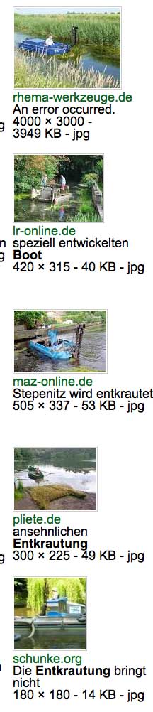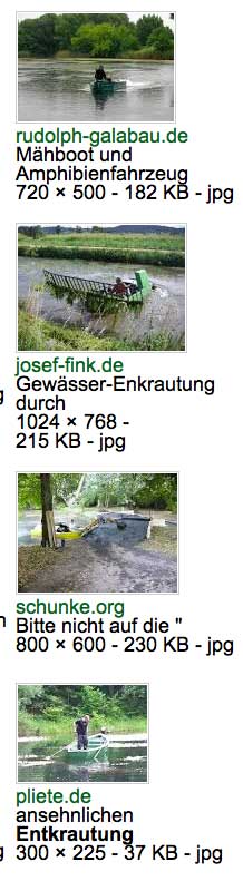 Wenn wir ind das Internet gehen und die professionellen Anbieter für Entkrautung-Boote suchen, dann sehen wir sie alle als Ein-oder 2 - Mann Boote. Es müsste denn ein Witz sein dort mit solchen Angriffen armierter Anlagen zu antworten, wenn es um Sicherheit geht und Dauer. Wie sie sagen. Es sei denn da wolle jemand sich Beschäftigung schaffen und Material verschwenden. Auch zu zeigen, was wir alles können an digitalen Tischen mit Vollbeschäftigung. Massiv und auf Kosten der Umwelt und Steuerzahler.