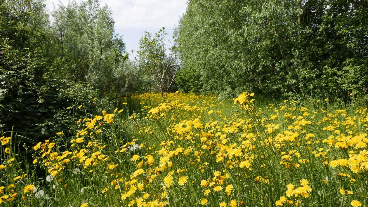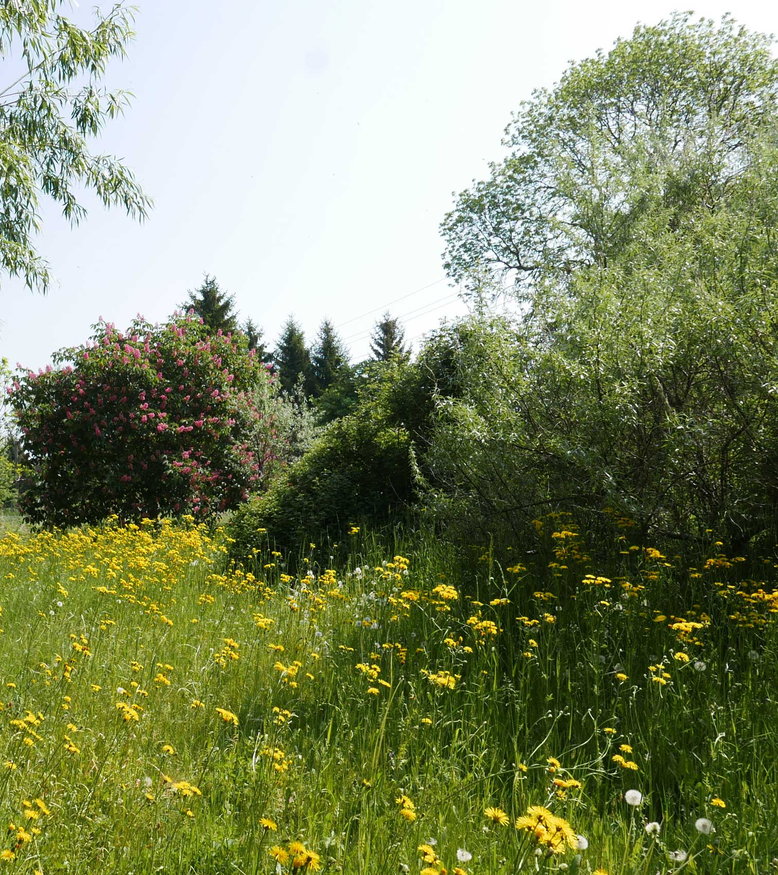 Das Habichtskraut also blüht nach dem Löwenzahn, Stein/Kathäuser-nNelken werden folgen.Zeit der Kastanienblüte, der Tromptenbaum noch ohne Blätter und was da vor uns steht, sollte noch vor einiger Zeit alles wieder weg, mit amtlicher Begehung und Beschlüssen der Gemeinde auf Papier, wegen Gefährdung der Wurzeln in den Rohren. Schwerin, das Ministerium und die richtig gefundenen Gesetze halfen.