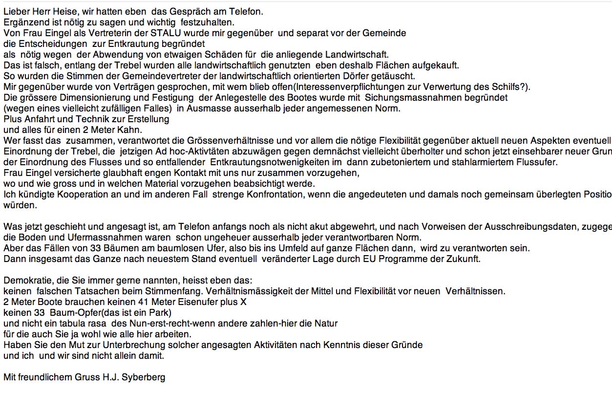 es musste gestern ein sehr unangenehmes Telefongespräch mit dem stellvertretenden Leiter des Staatlichen Amtes für Landwirtschaft und Umwelt in Neubrandenburg geführt werden, da der eigentlich leitende Mann nicht da war.
