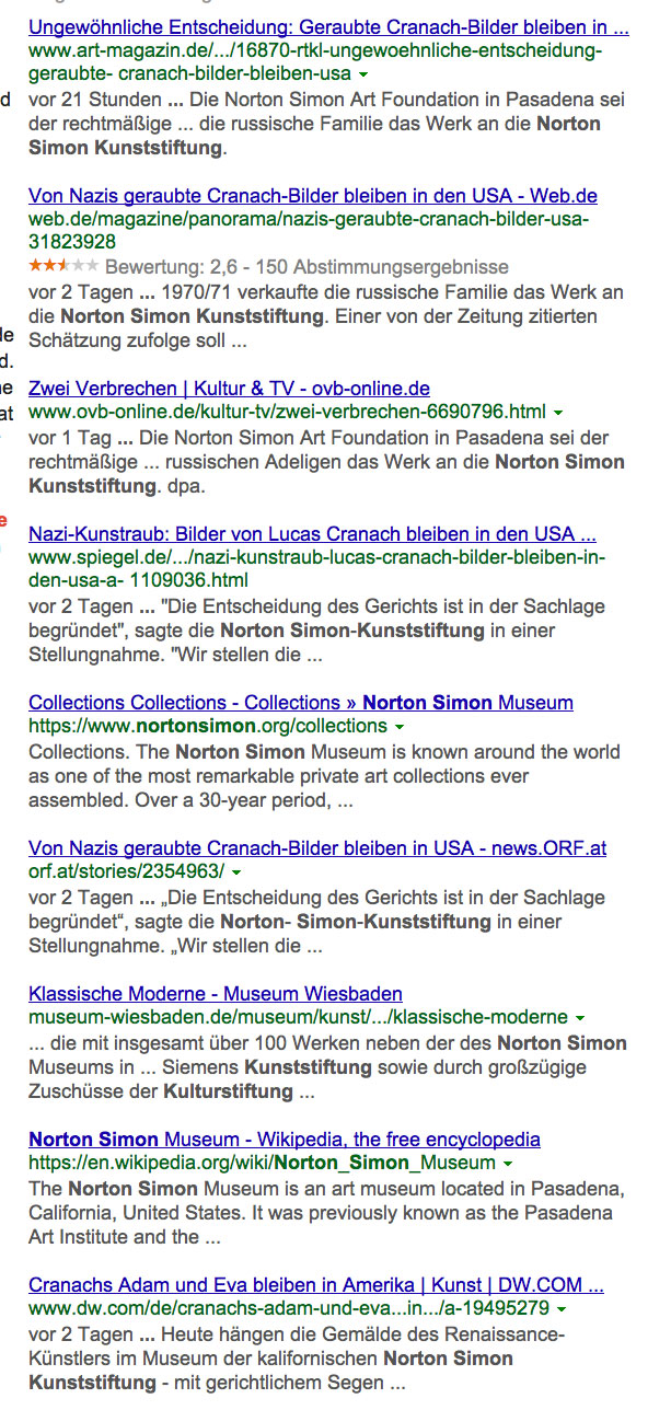 auf eine Frage, ob auch diese Bilder von den Juden strittig gemacht werden, kann ich sagen, nein. In der USA sind sie noch frei. In Deutschland wird nun alles durchforscht, jedes Bild und jede Skulptur und jedes Buch ist verdächtig, wird von jüdischen Kunstkommissionen durchleuchtet, jedes Bild im Handel und in Zukunft, das ist die Absicht, auch zuhause, muss sich ausweisen. Auch ohne begründete Klage. Millionen werden aufgewendet für die die daran arbeiten und sie nennen es Privenienzforschung allein nach jüdischen Elementen des Besitzes in den Geschichten der Handelswege von Artefakte.)