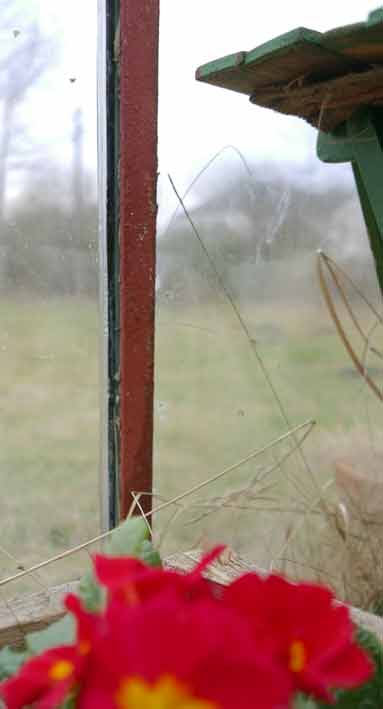 Die Schwalbe über dem Bett in ihrem Nest. Das Bett im Haus, aus dem er kam, am Platz der Geburt.