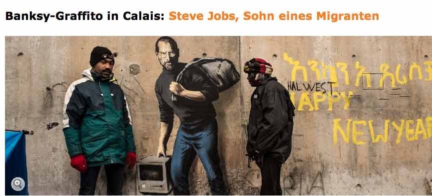 Steve Jobs auf der Flucht aus IRAN an der Wand in London