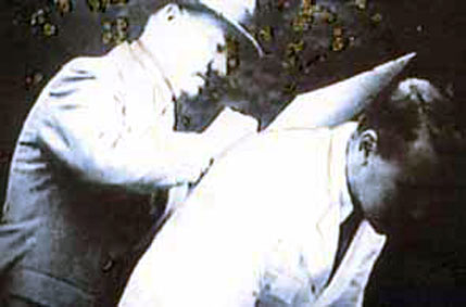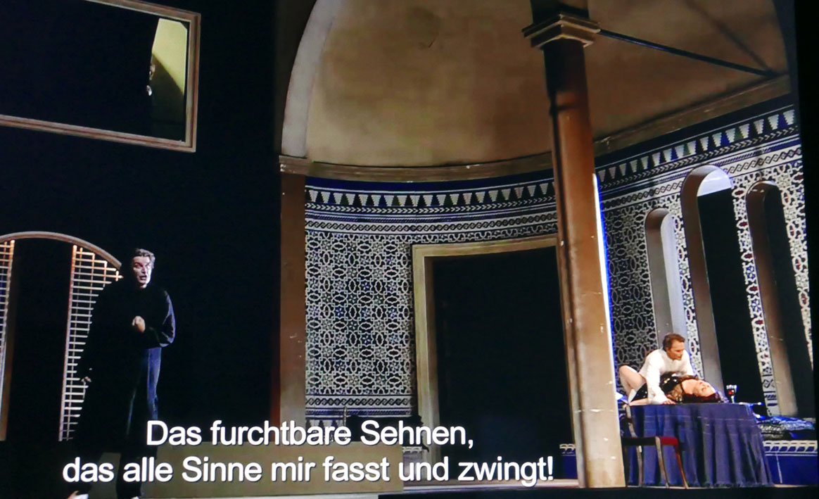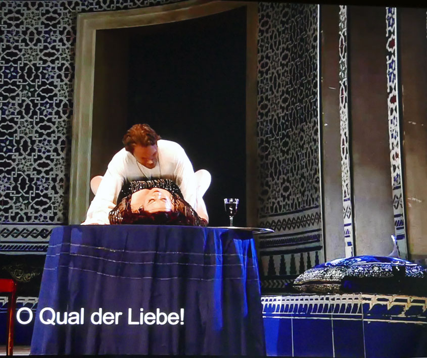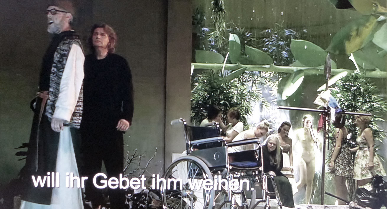 Dies ist im 2. Akt. Eine Vergewaltigung der hier Hure Kundry, durch Amfortas mit der Dornenkrone dieser Regie, dem vei RW Verwundeten falscher Süchte, selbst und der böse Zuhälter Klingsor schaut zu, als Sammler der geschändeten Kreuze, während der Mann des Kreuzes...