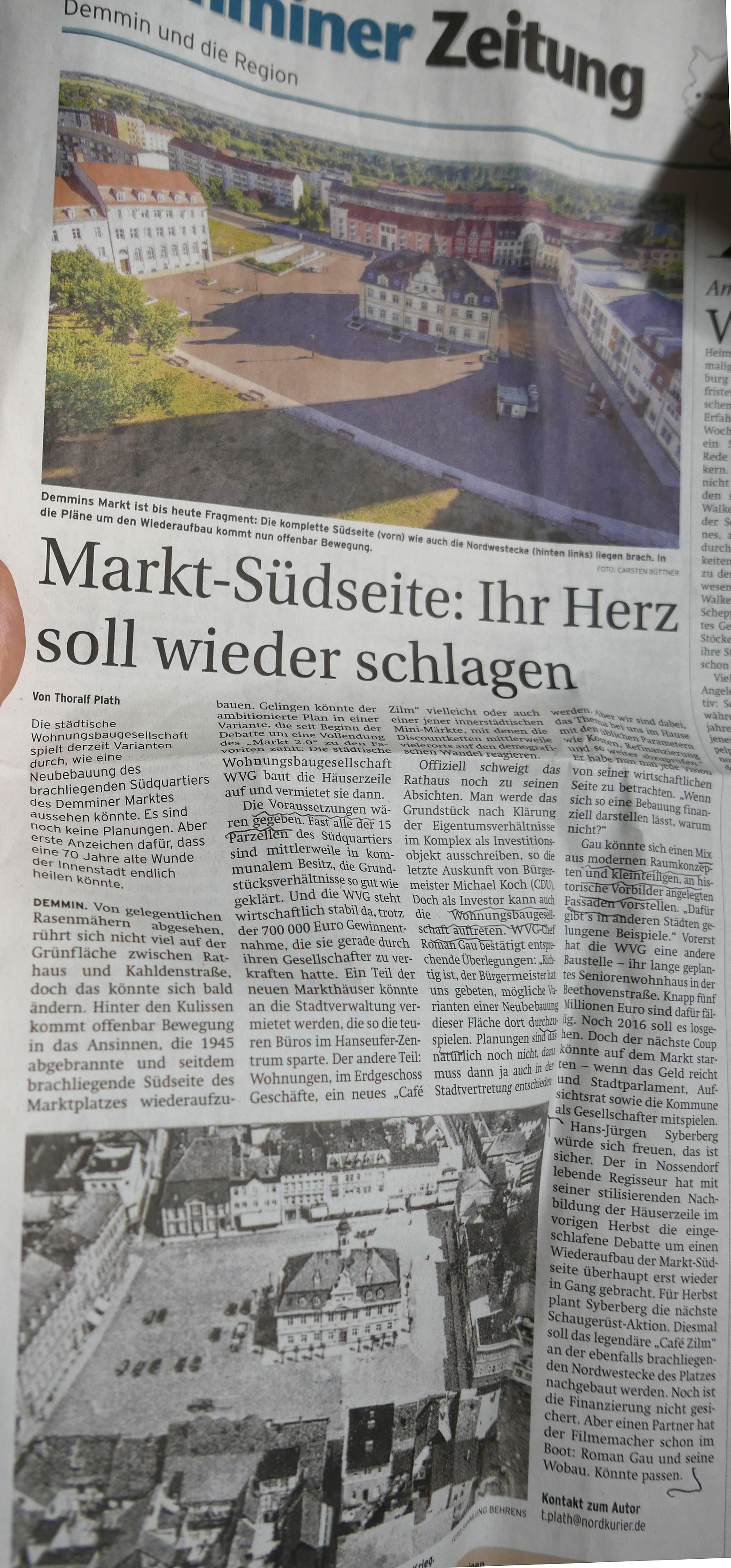In Demmin aber hier ganz nahe abseits der grossen Welten die Medung, dass sich was tut?