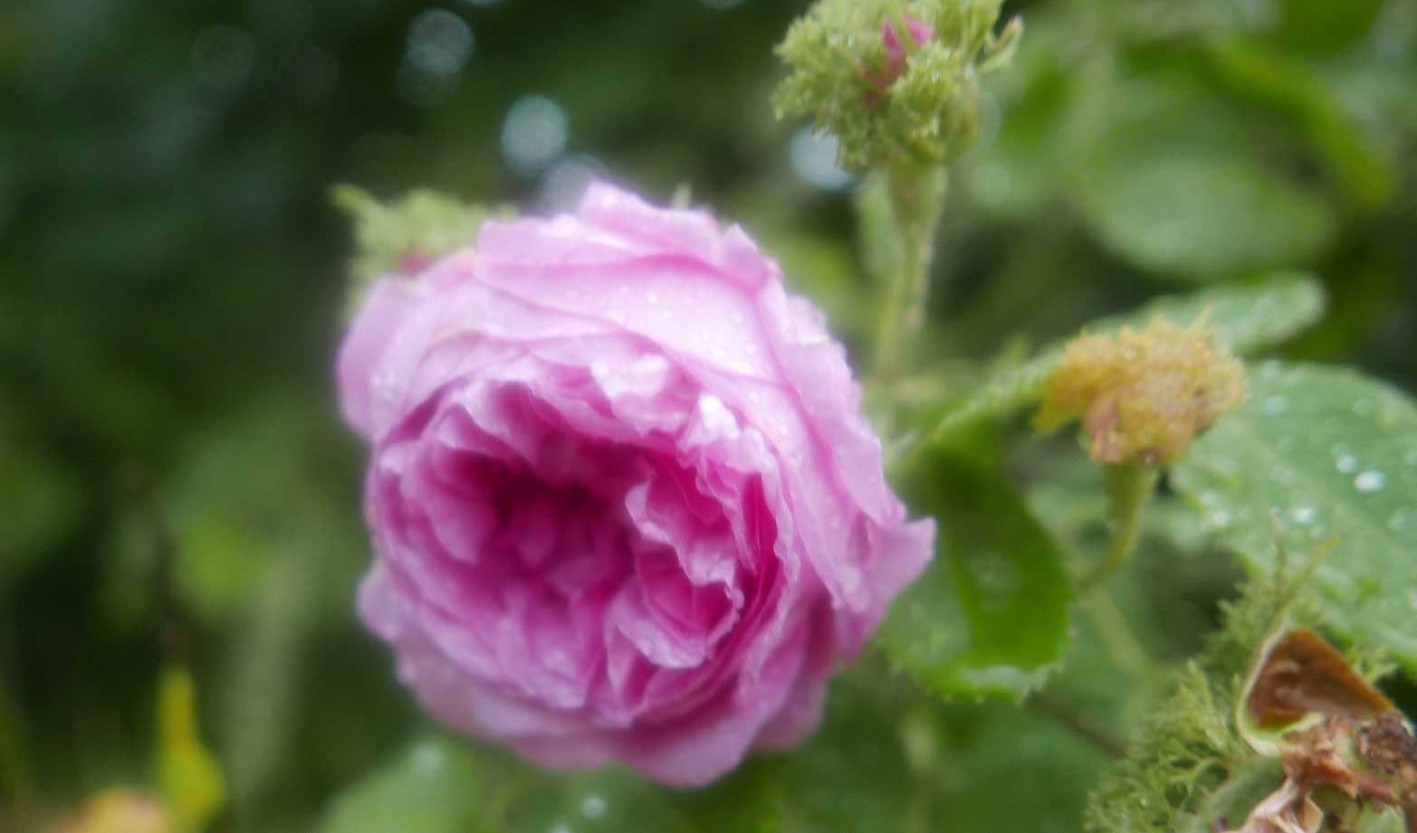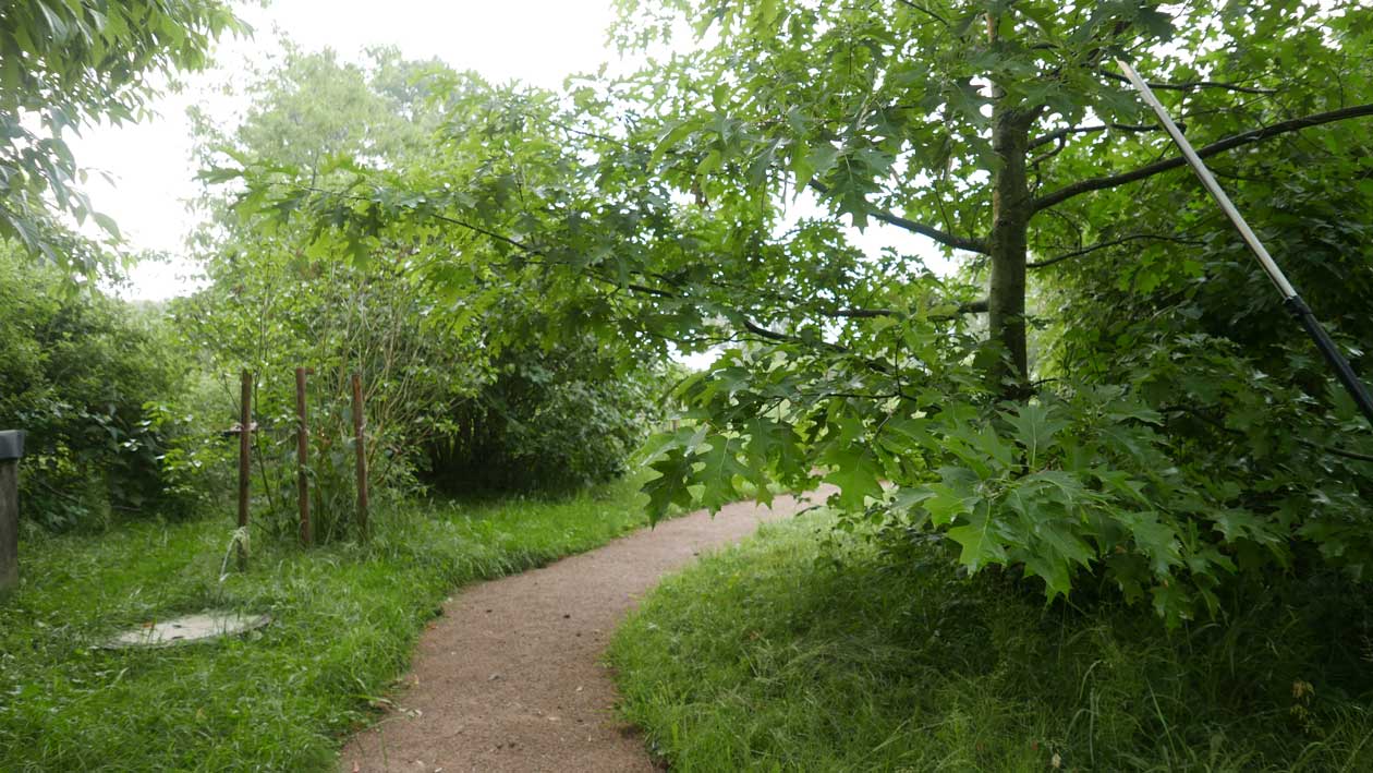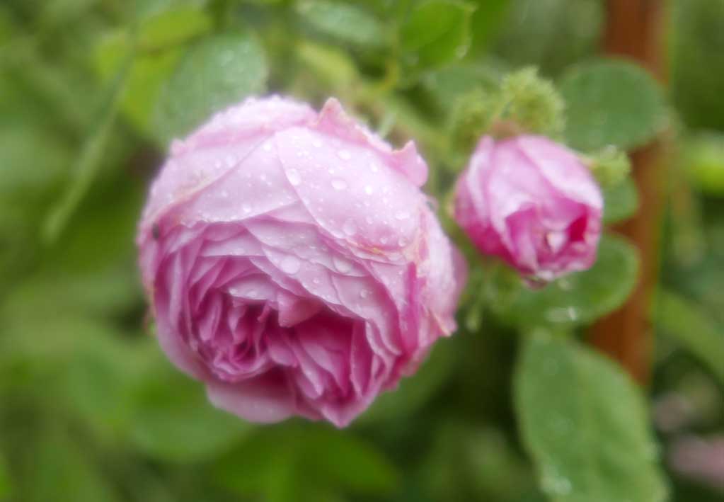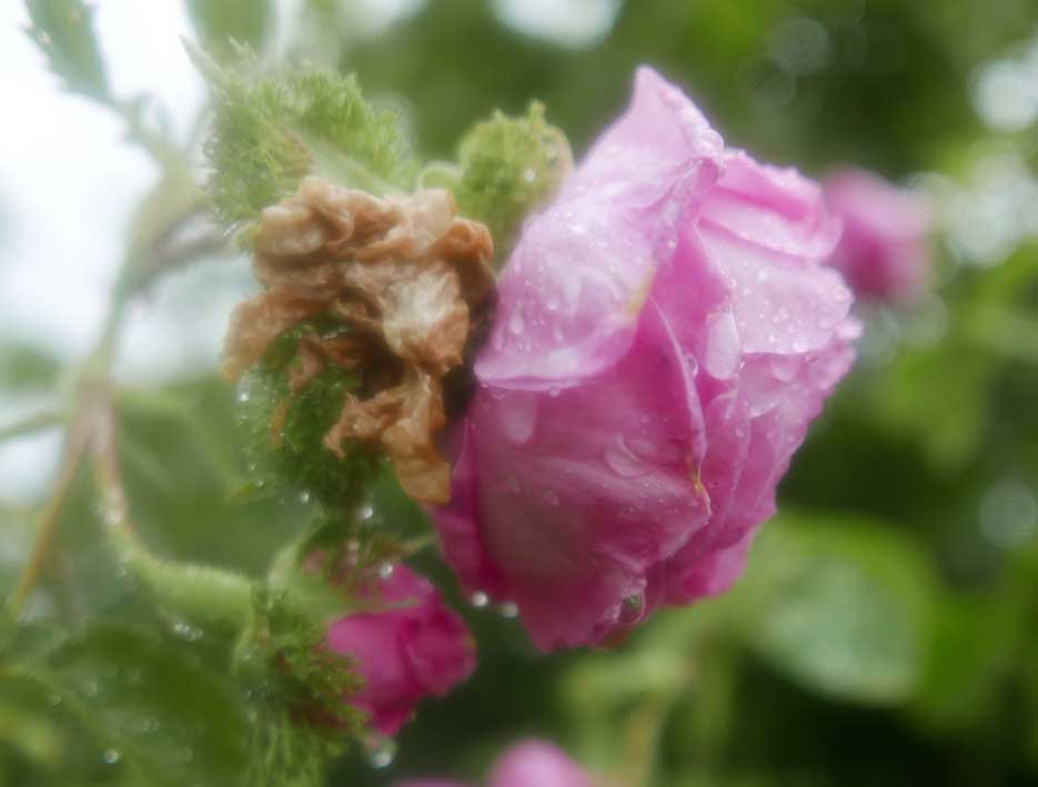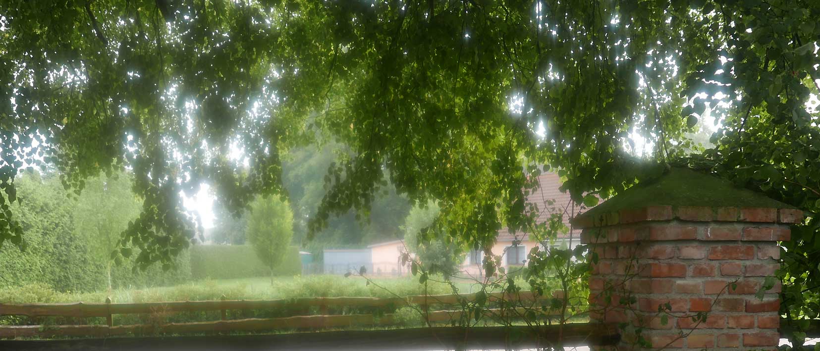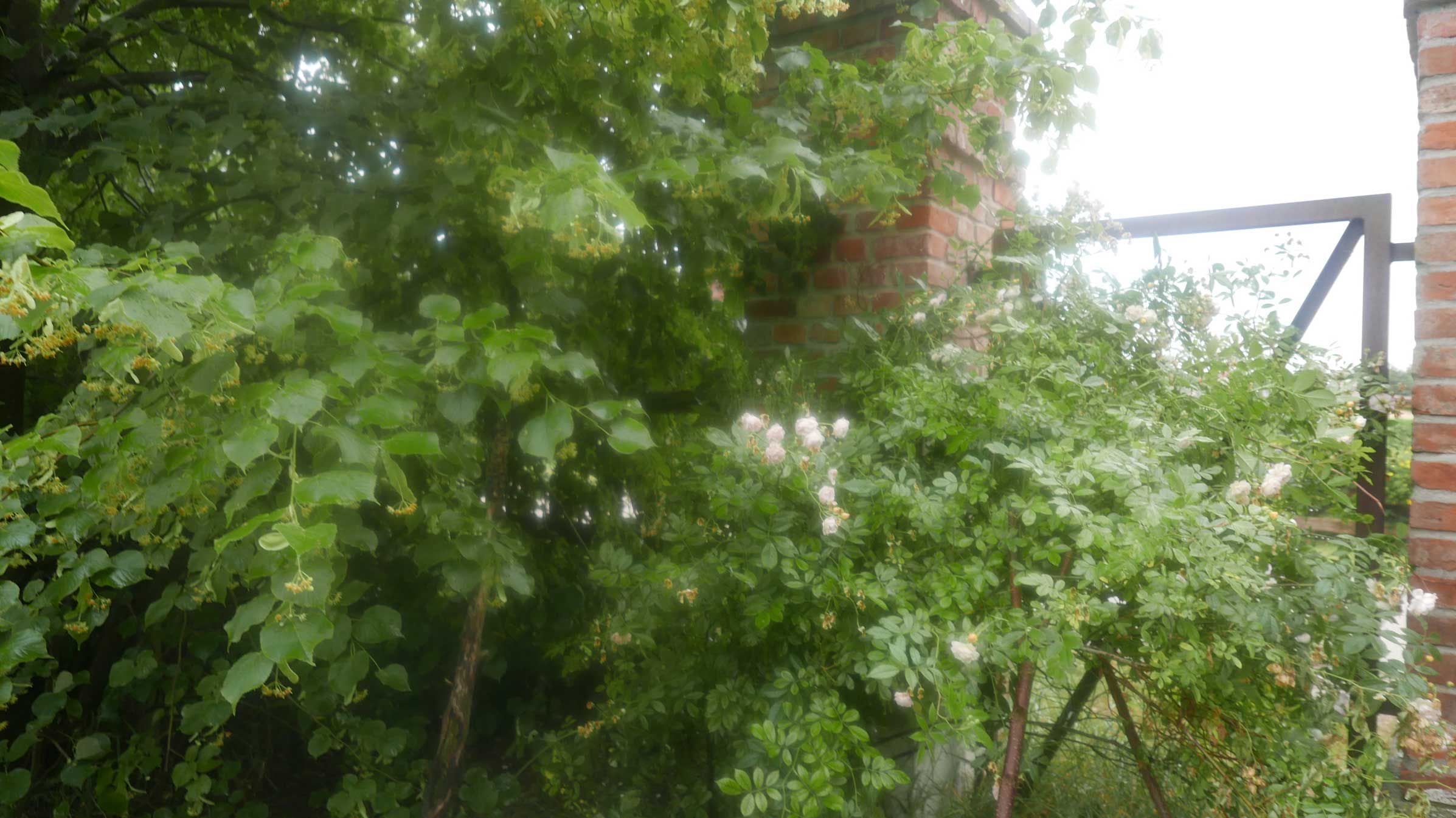 Die Linden an dem Zaun des Hofs früher entstanden wieder. Diesmal mit Rosen an den Pfeilern.