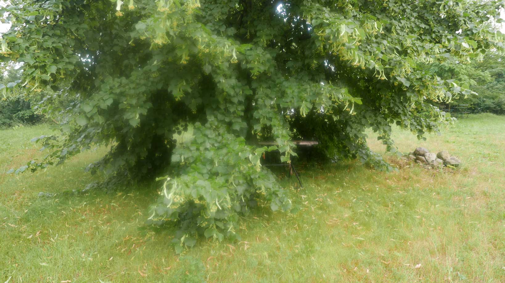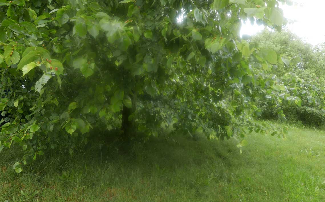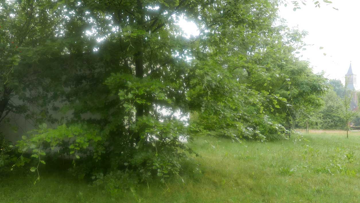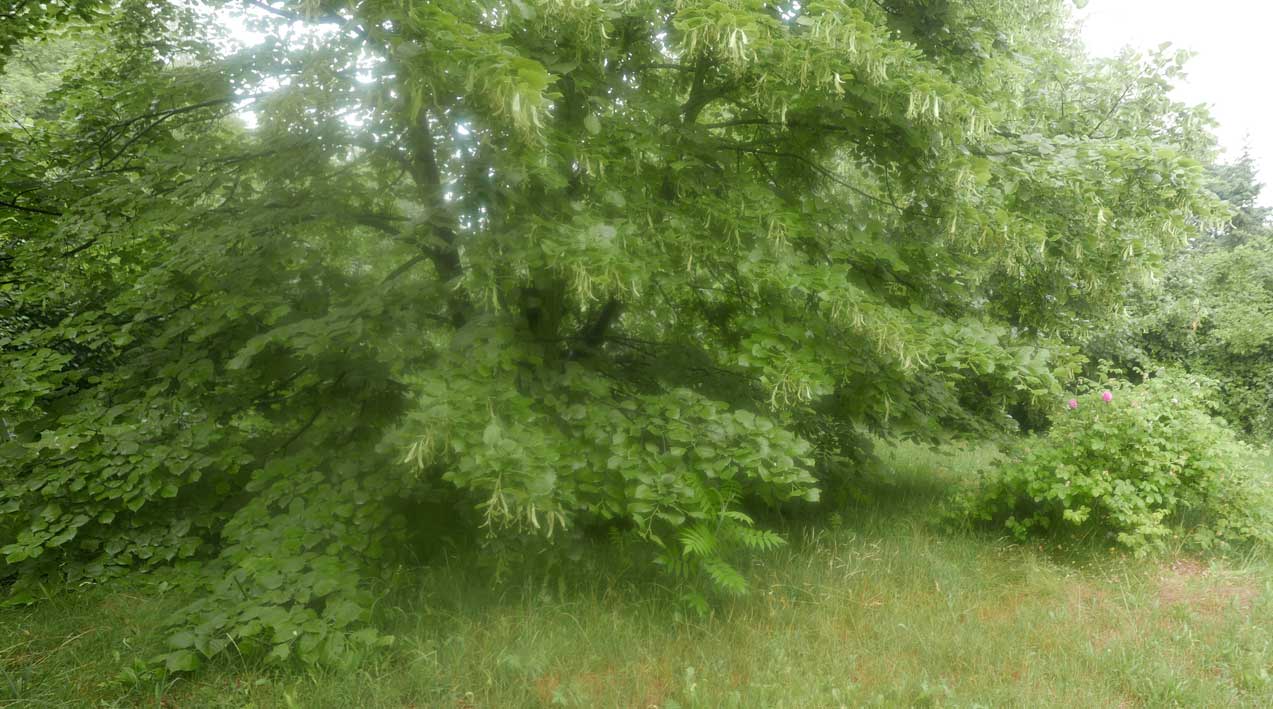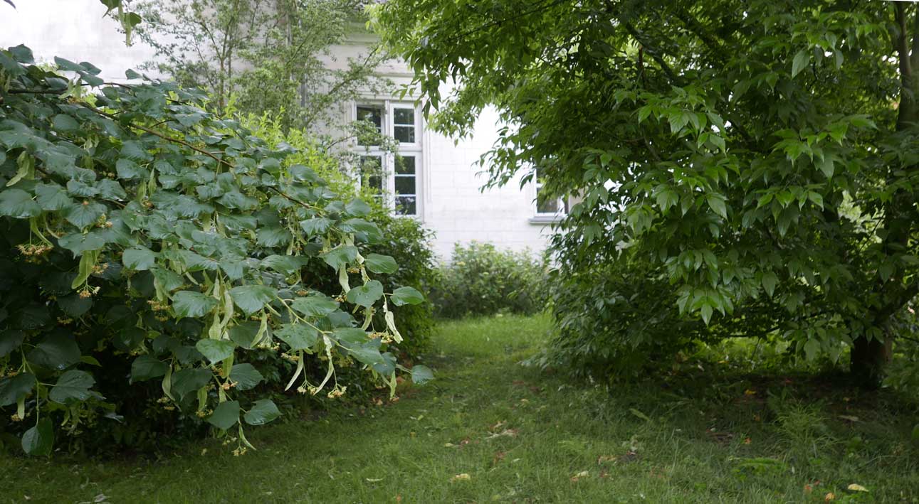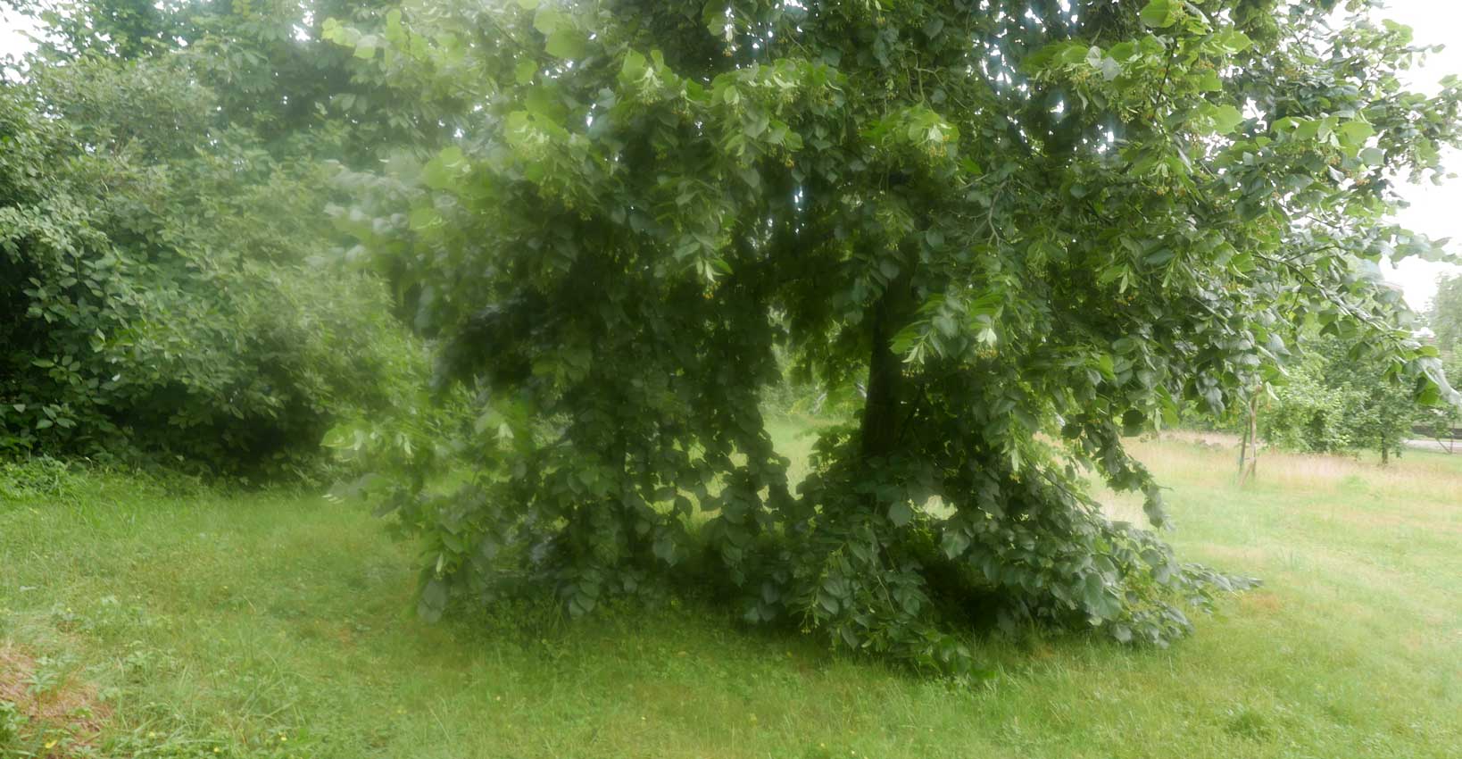 hier von diesen zwei ineinander gewachsenen Linden hinter dem Haus wie ein Gewölbe zum daruntersitzen von früher kommt es her, so zu entscheiden, in allem.