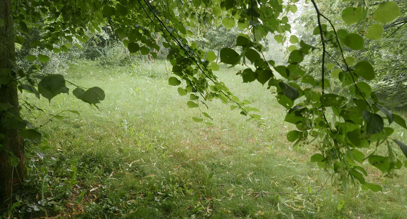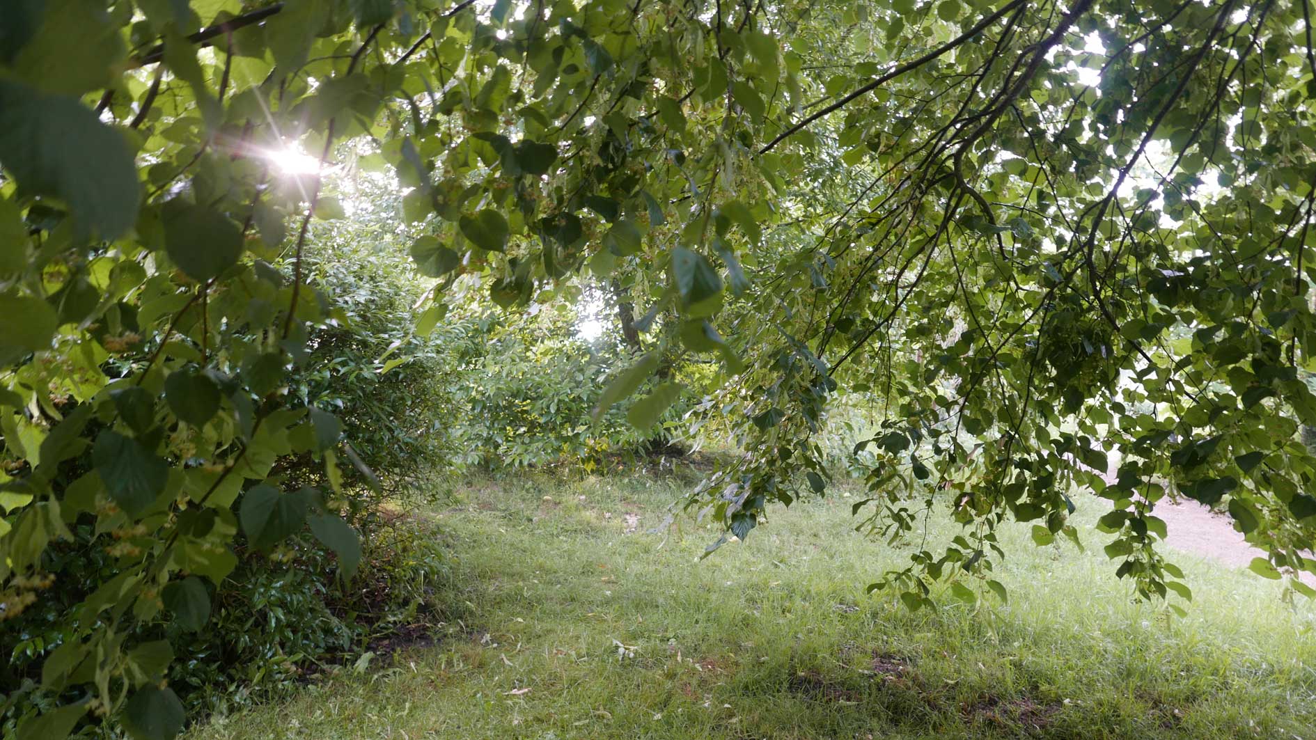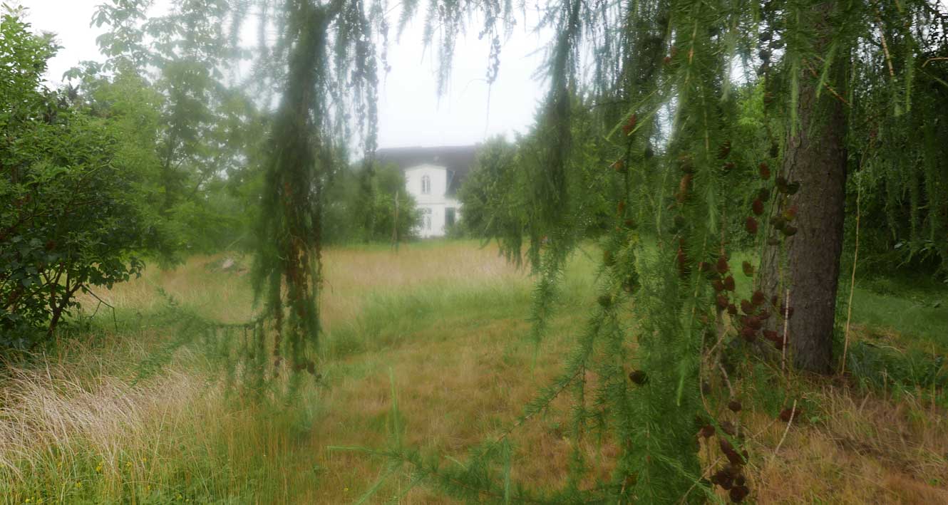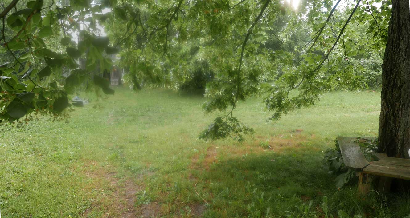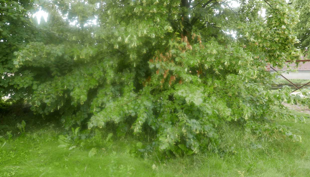hier von diesen zwei ineinander gewachsenen Linden hinter dem Haus wie ein Gewölbe zum daruntersitzen von früher kommt es her, so zu entscheiden, in allem.