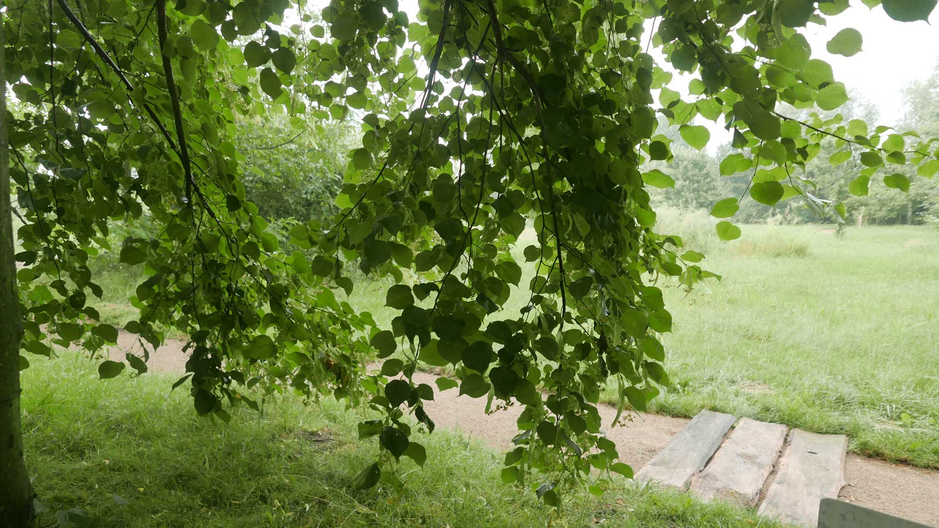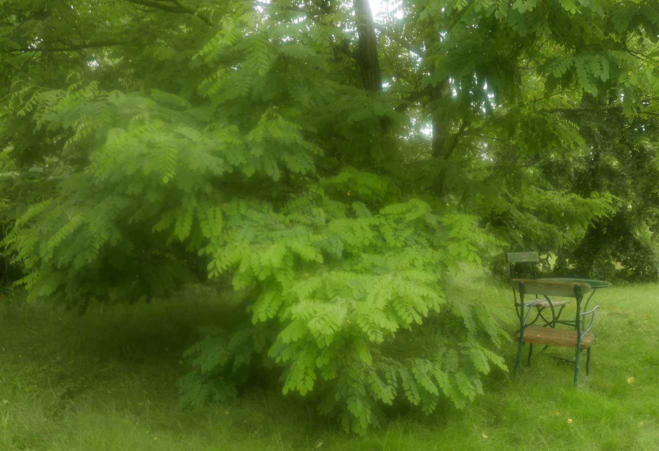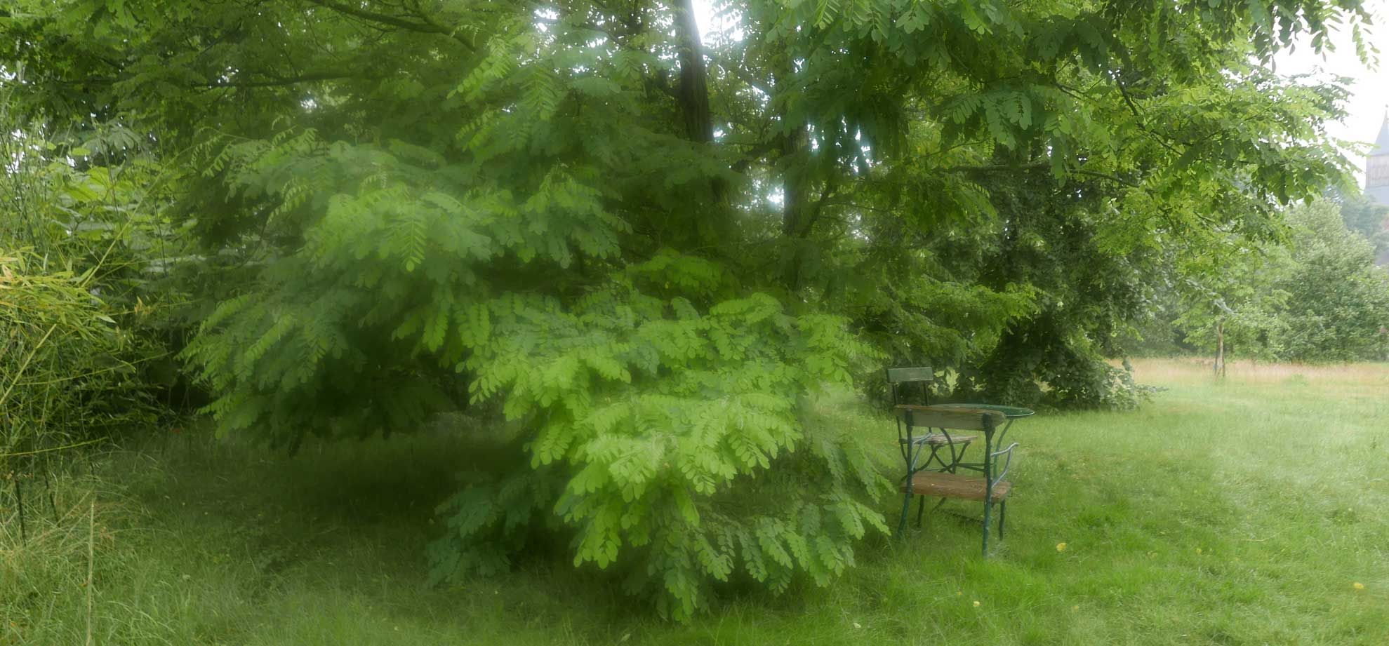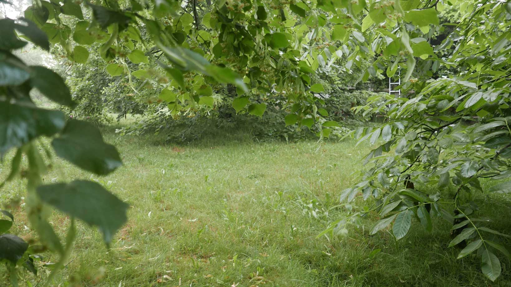 hier von diesen zwei ineinander gewachsenen Linden hinter dem Haus wie ein Gewölbe zum daruntersitzen von früher kommt es her, so zu entscheiden, in allem.