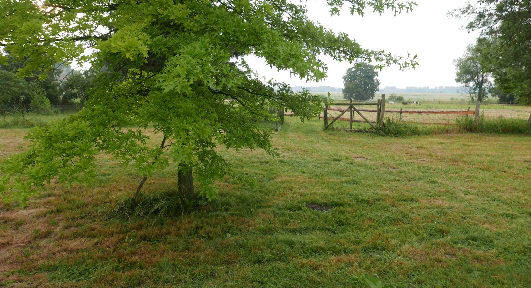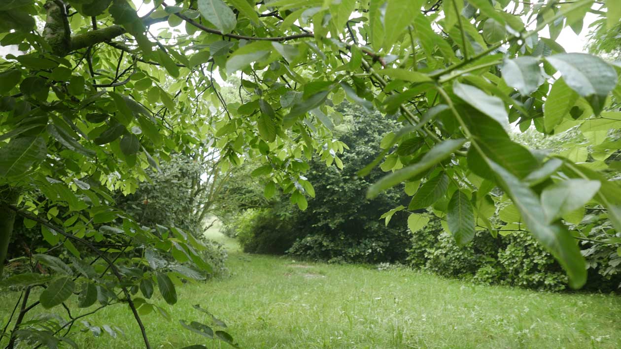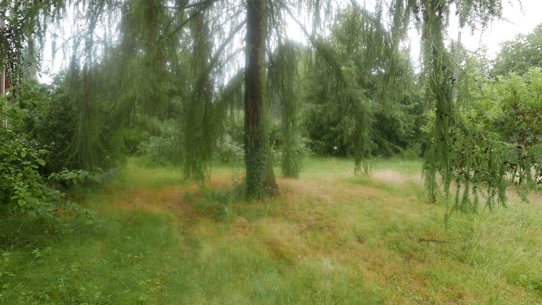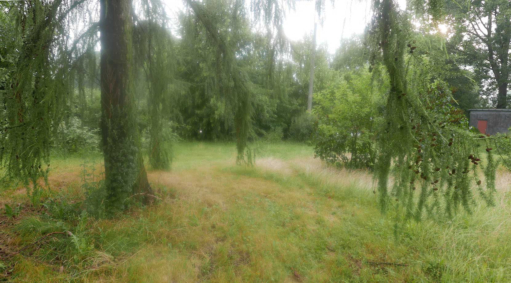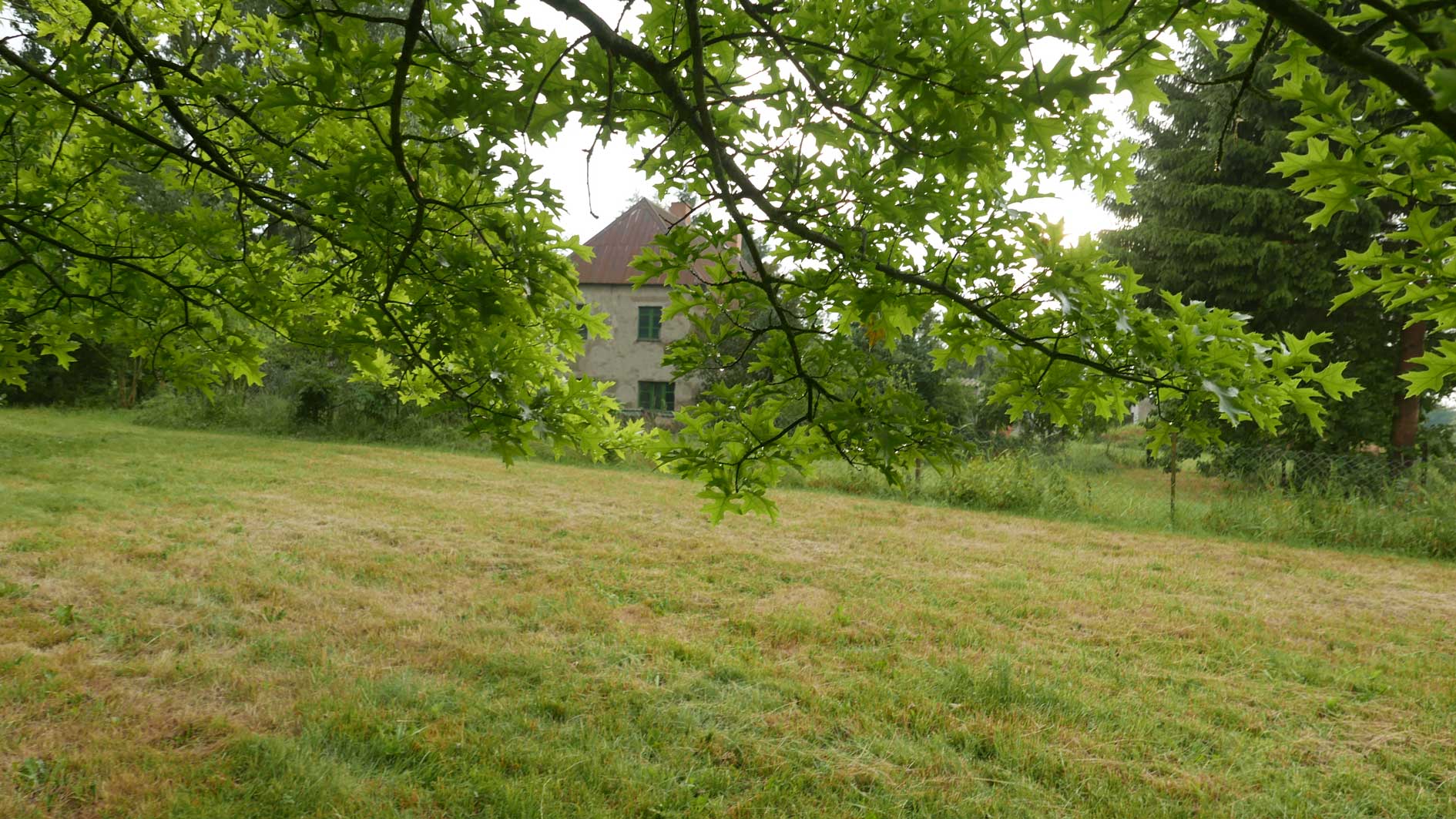 hier von diesen zwei ineinander gewachsenen Linden hinter dem Haus wie ein Gewölbe zum daruntersitzen von früher kommt es her, so zu entscheiden, in allem.
