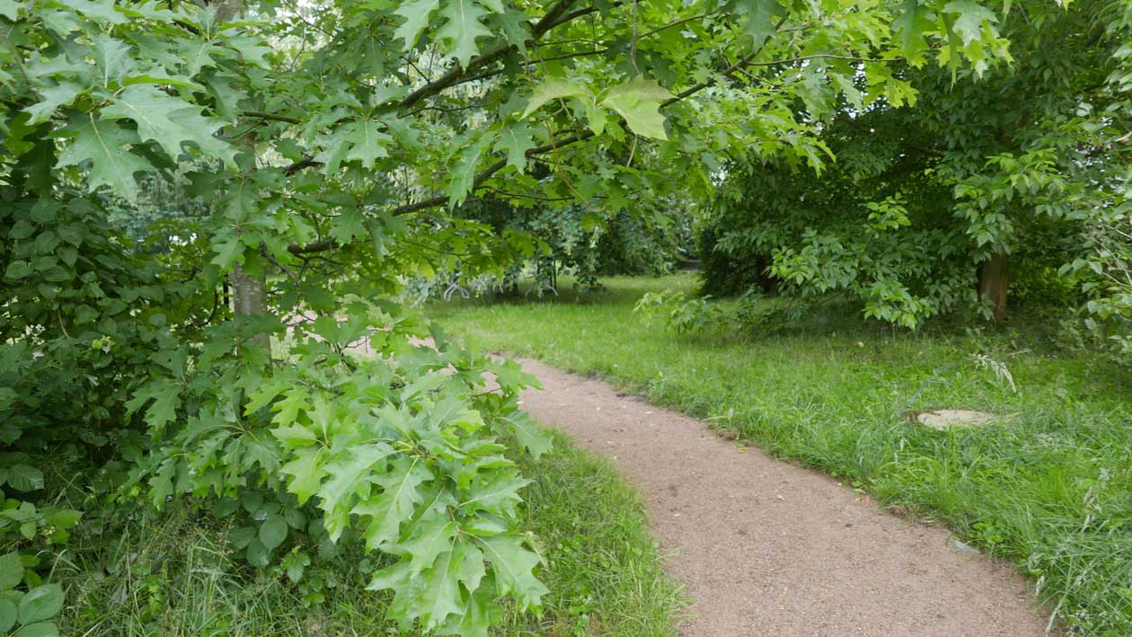der einzige Baum -die Lärche- nach Wiederherstellung des Hofs in seine neue Gestalt als Park übernommen