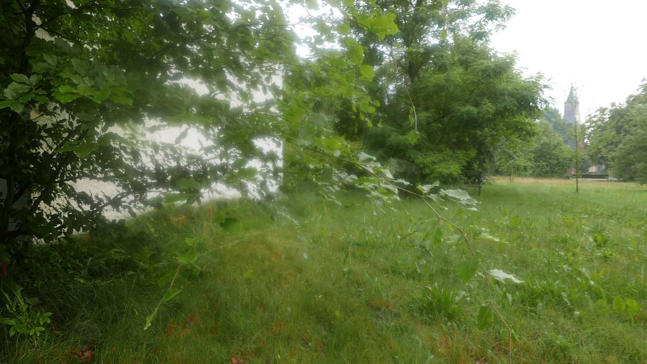 mit zunehmender Verschleierung des Objektivs durch die Feuchtigkeit nach dem Regen in der Luft